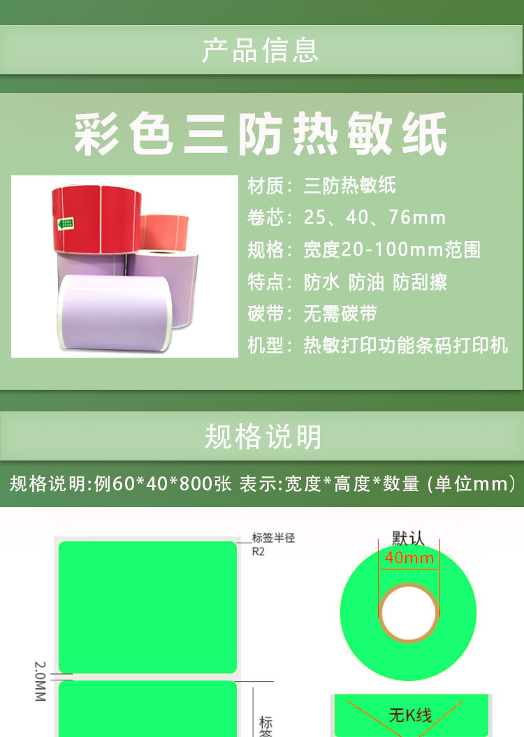 型号 彩色热敏纸