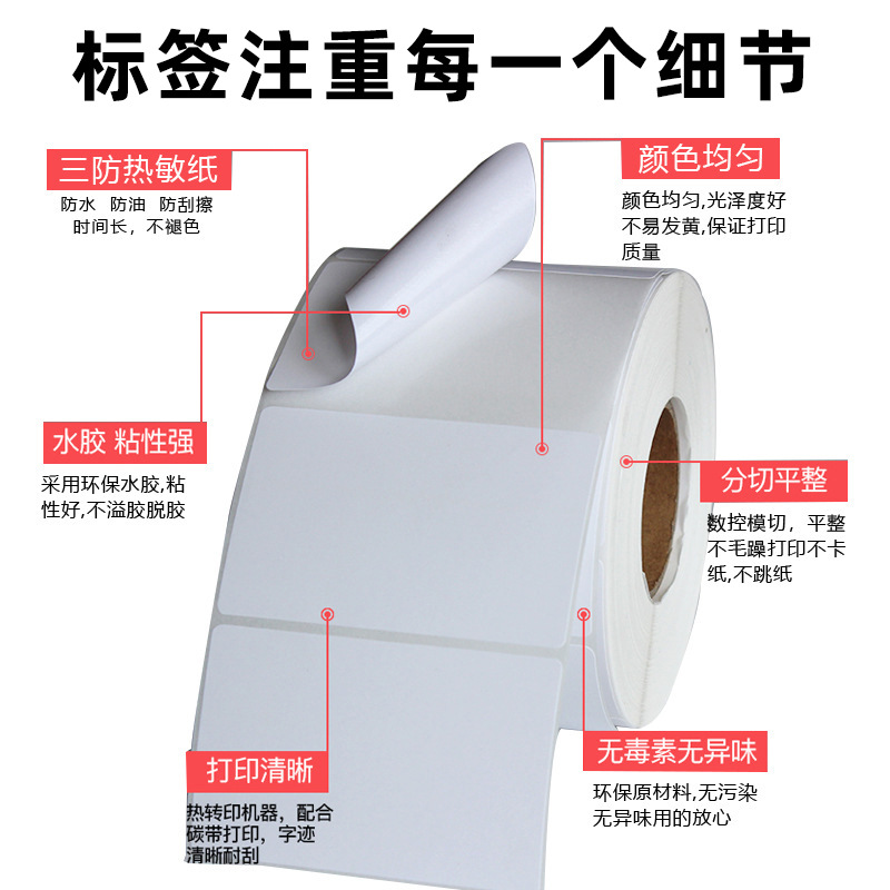 深圳厂家热敏标签纸 彩色空白不干胶贴纸100*50* 热敏标签纸打印