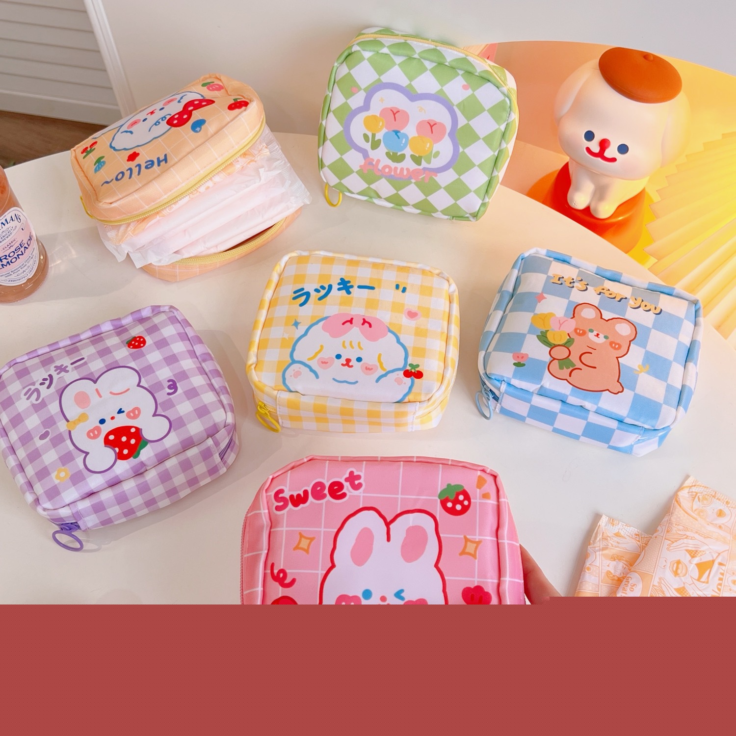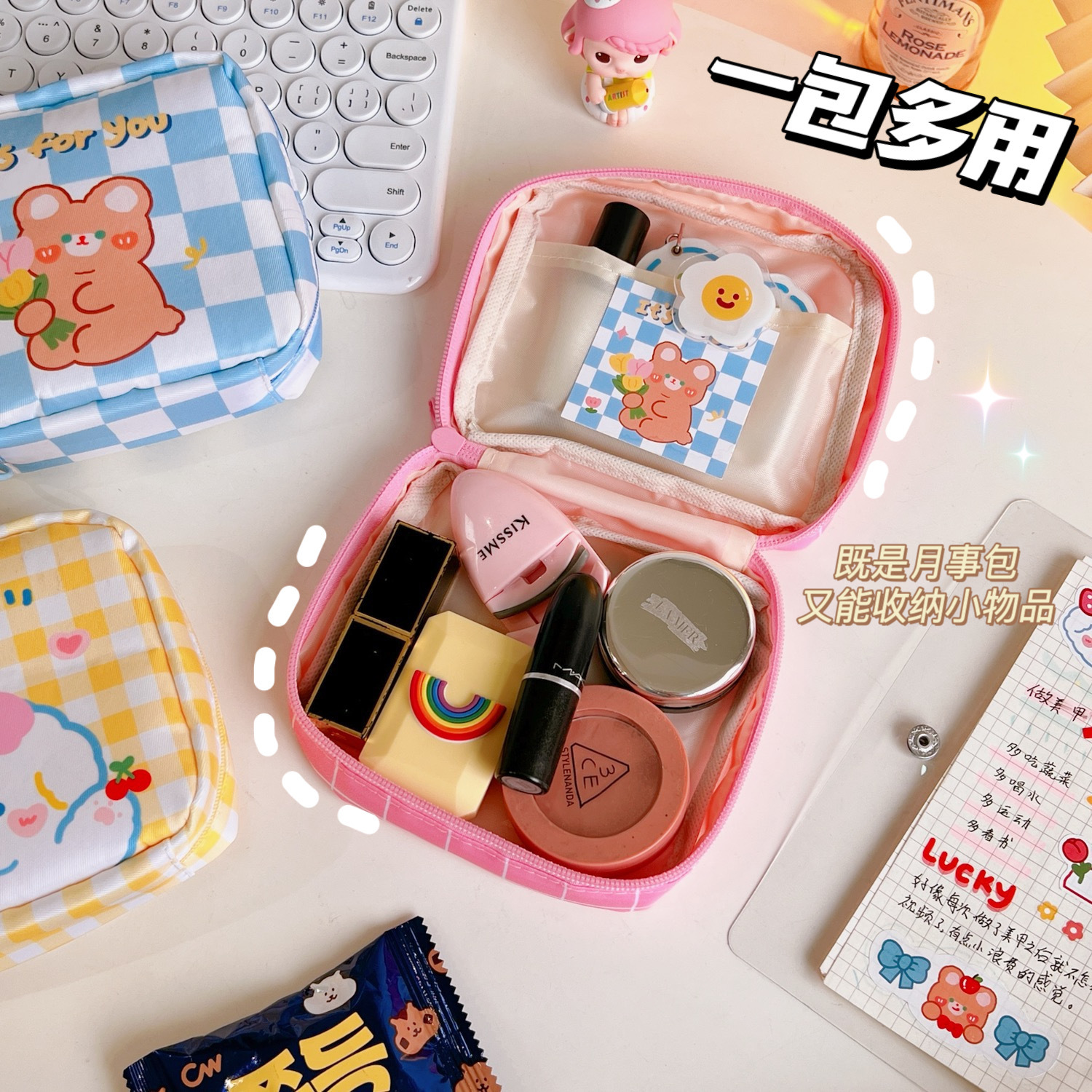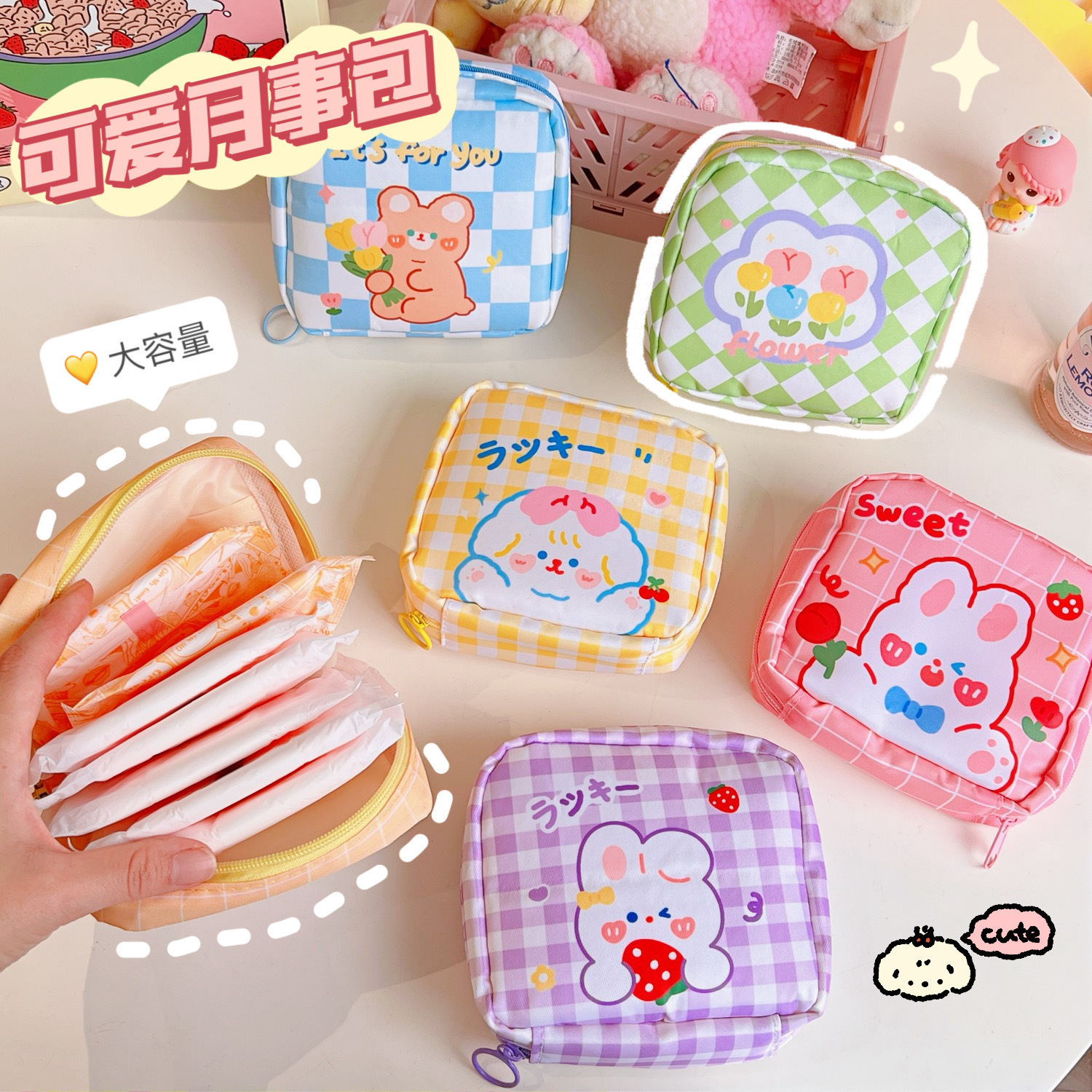 少女心大容量姨妈巾收纳包夏季郁金香棋盘格收纳袋月事包零钱包女
