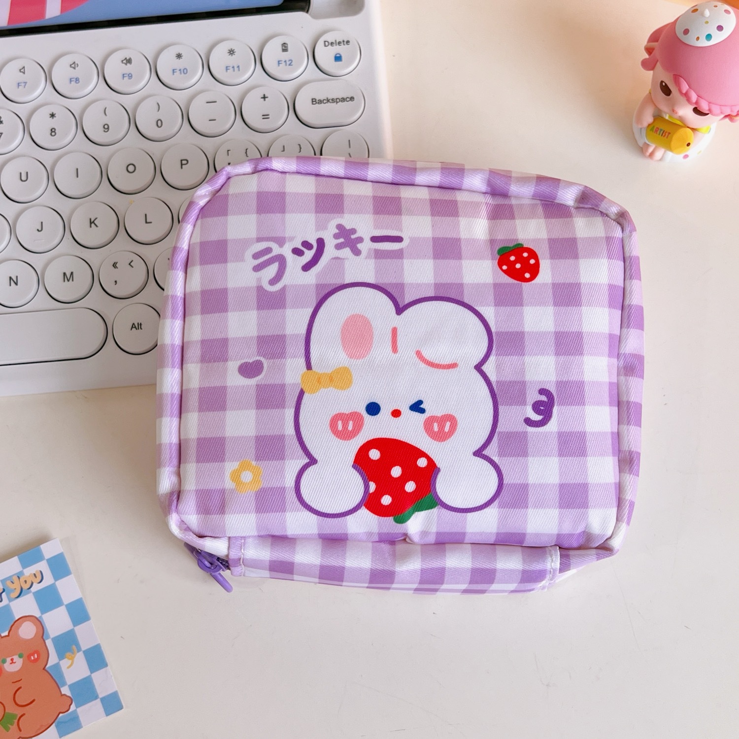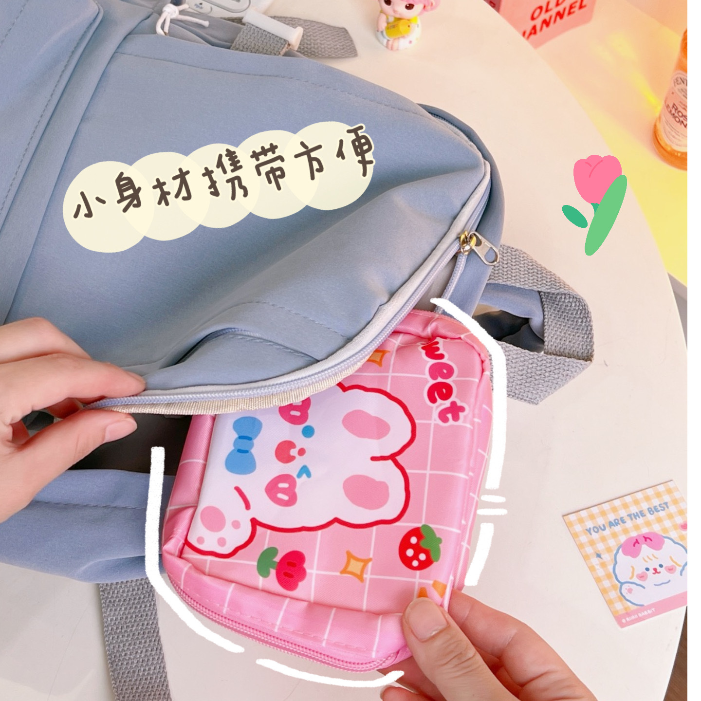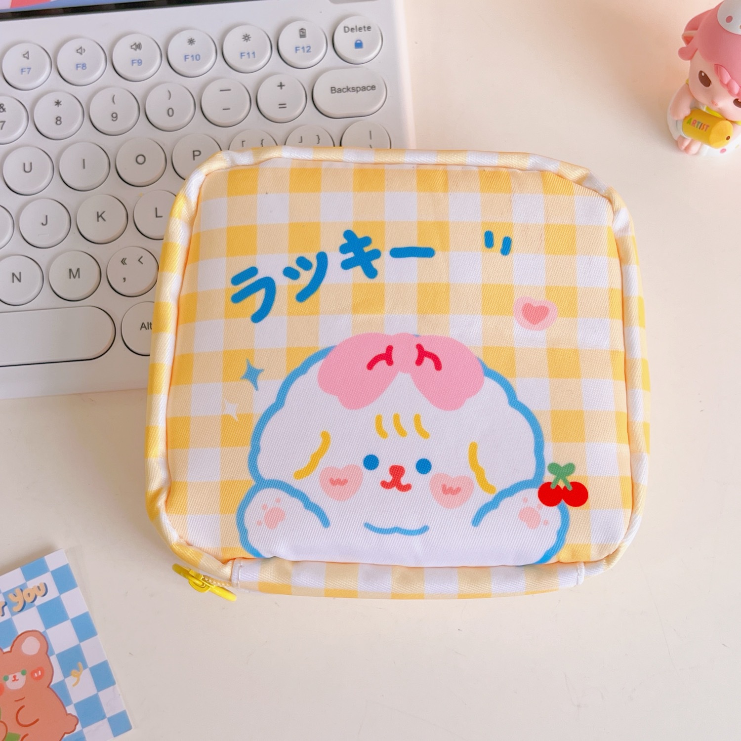 少女心大容量姨妈巾收纳包夏季郁金香棋盘格收纳袋月事包零钱包女