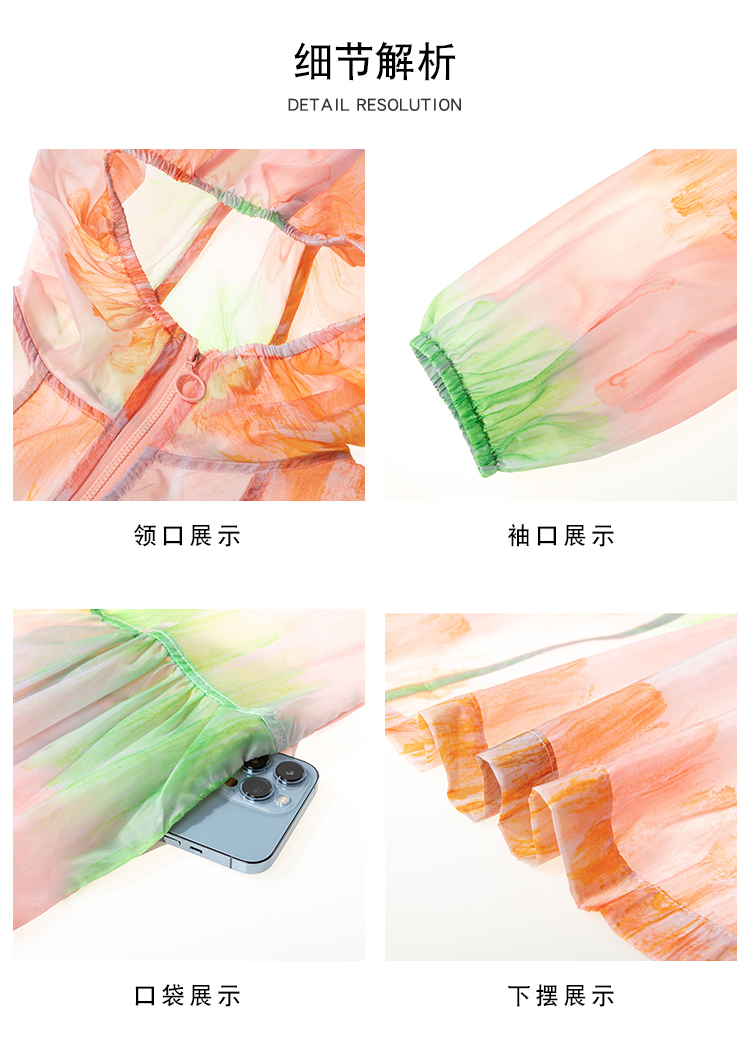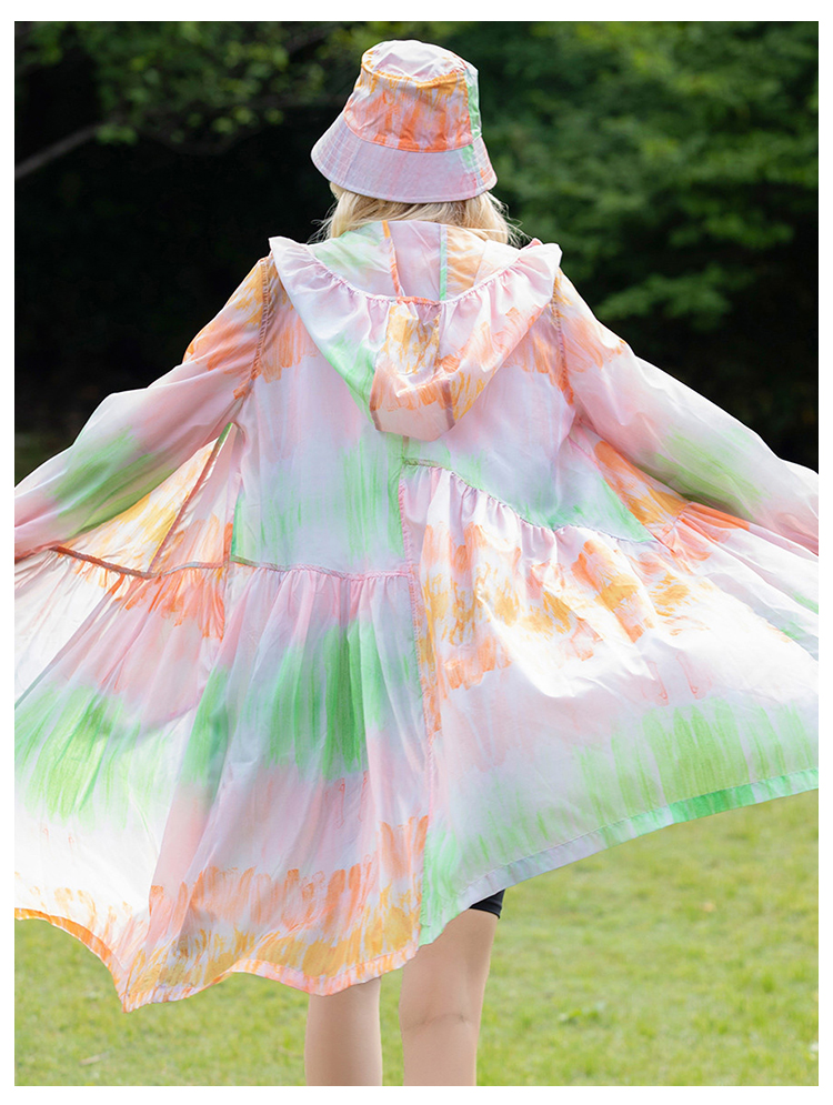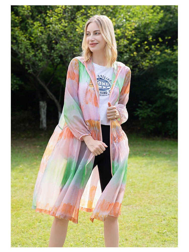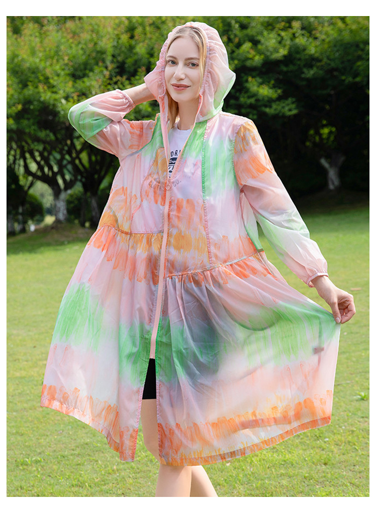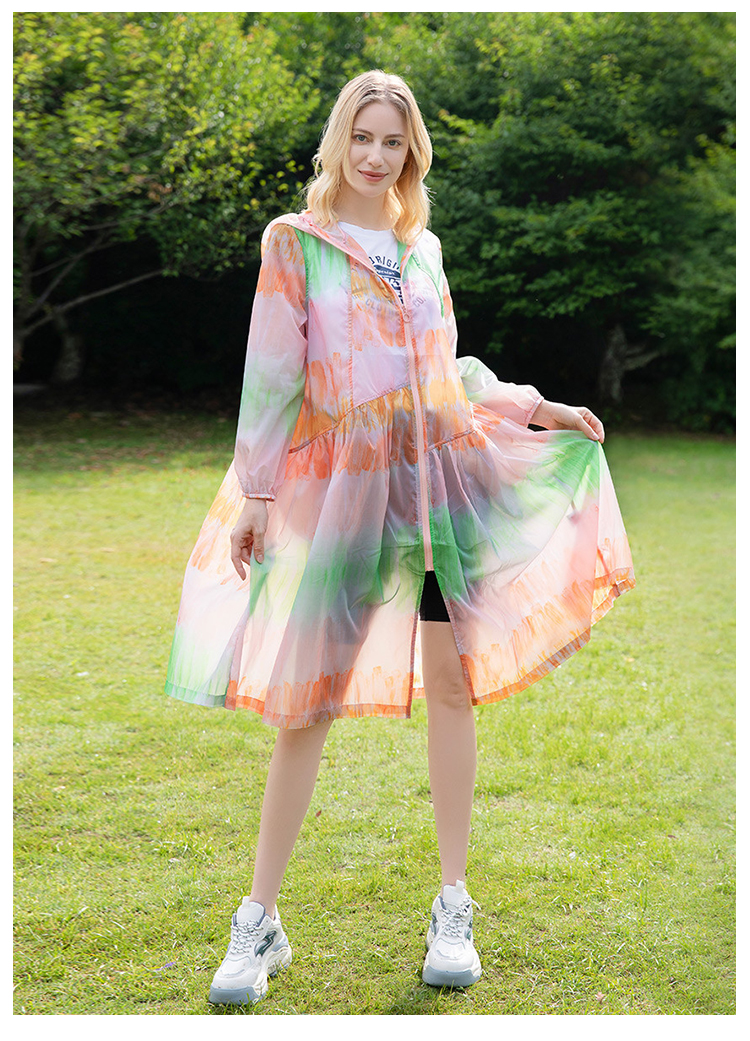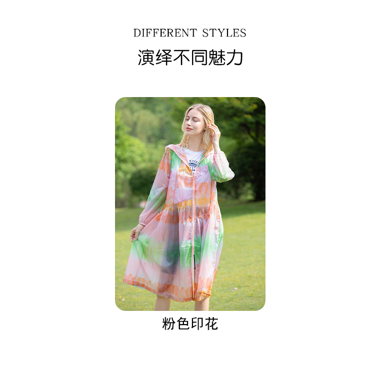 皮爾卡登活力印花防曬衣女中長版2023新款夏A型寬鬆連帽防曬外套