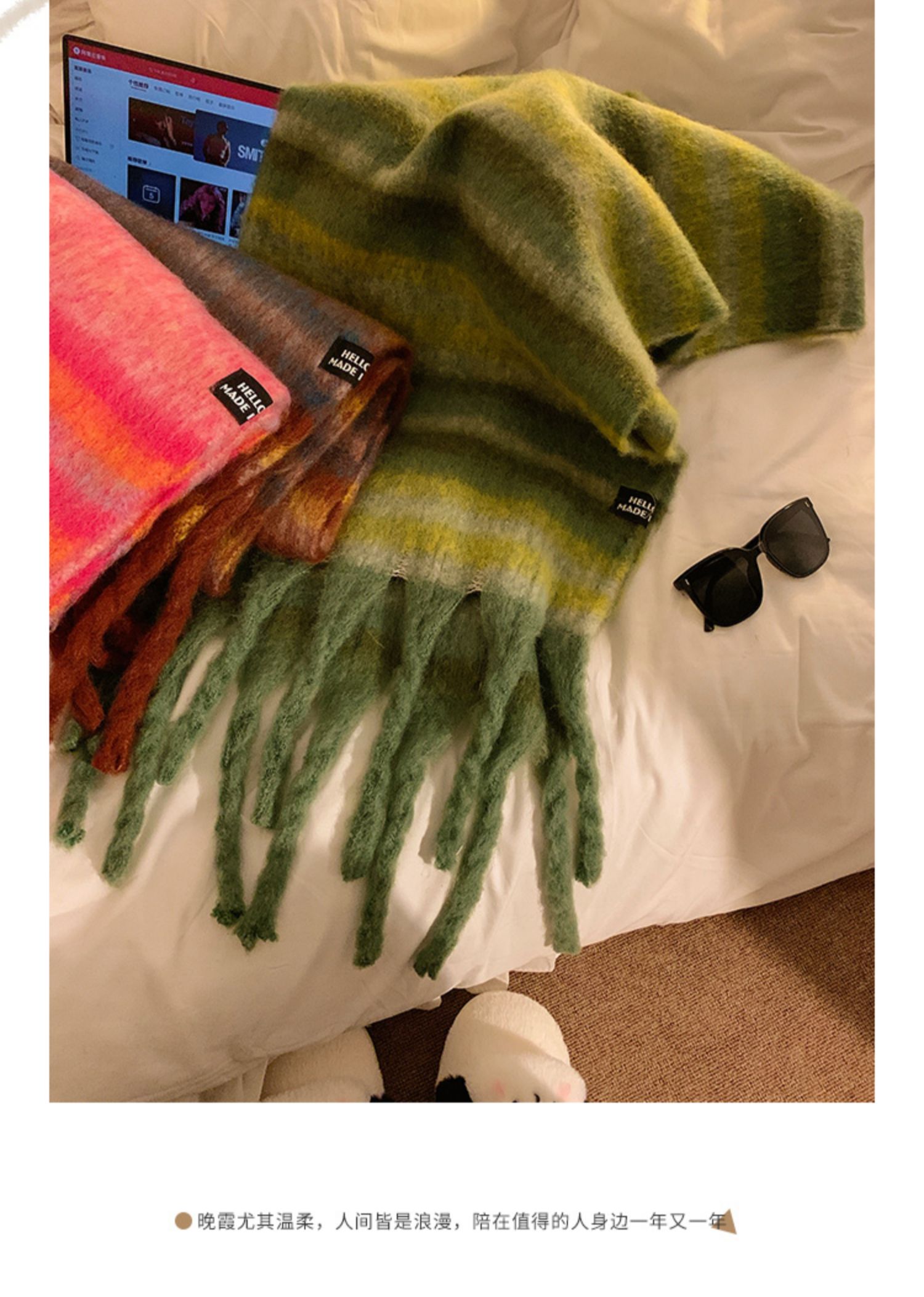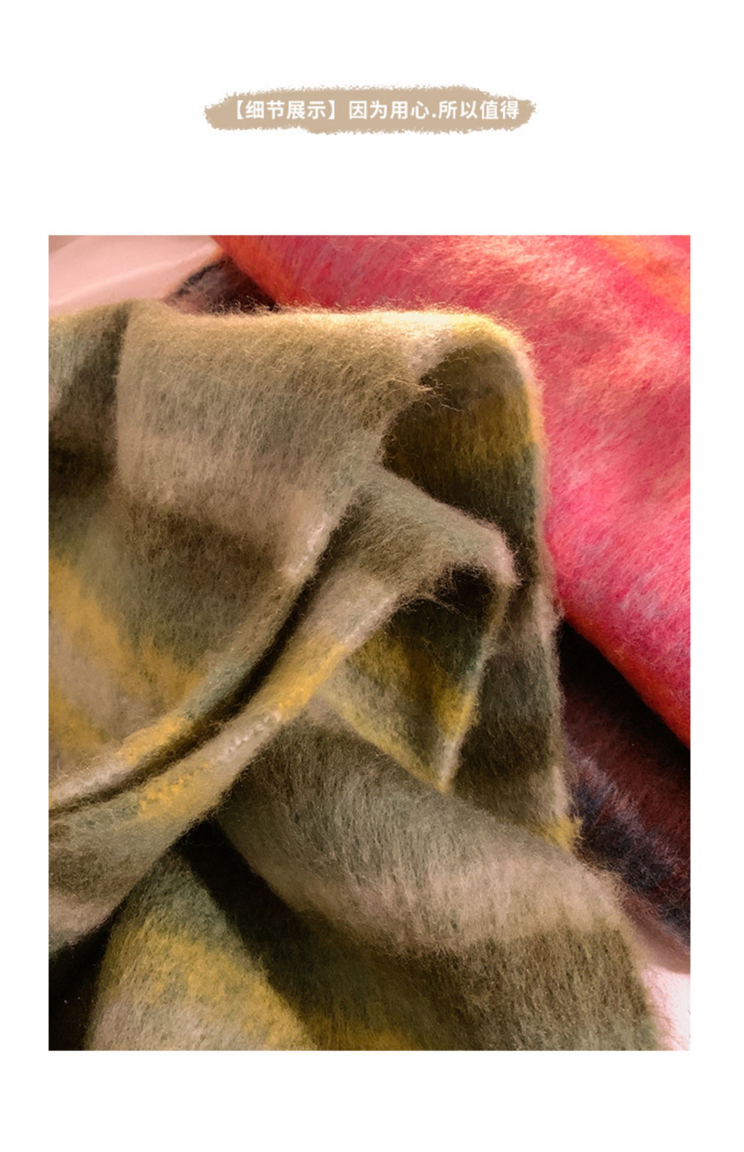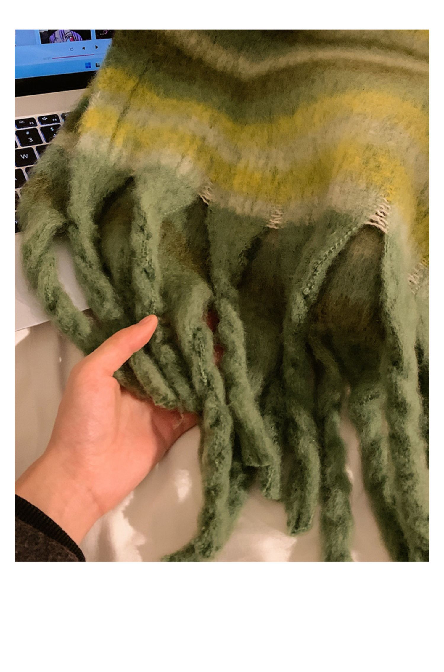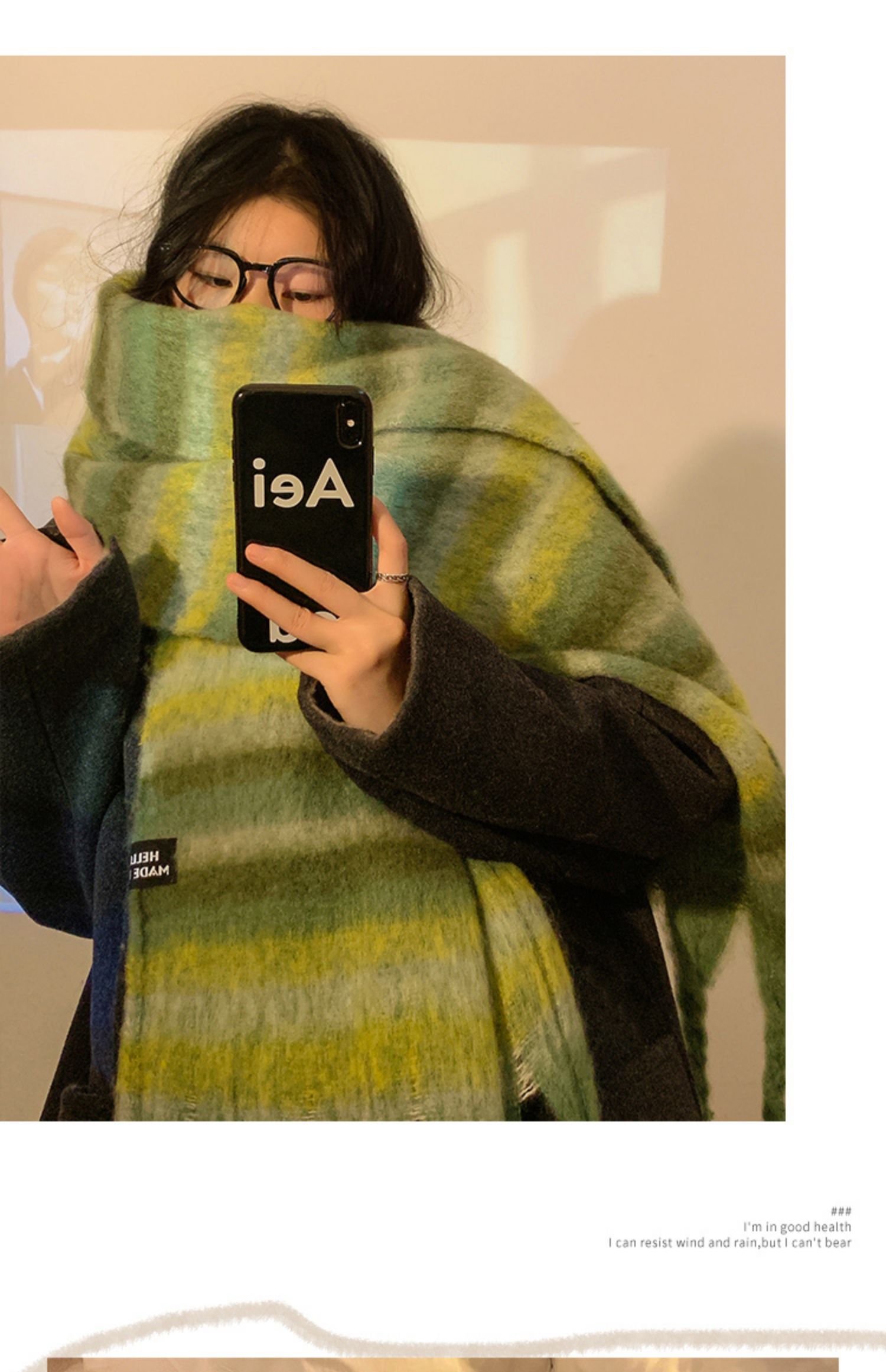 馬海毛綠色圍巾女冬季2023新款高級感韓版百搭毛茸茸加厚圍脖保暖