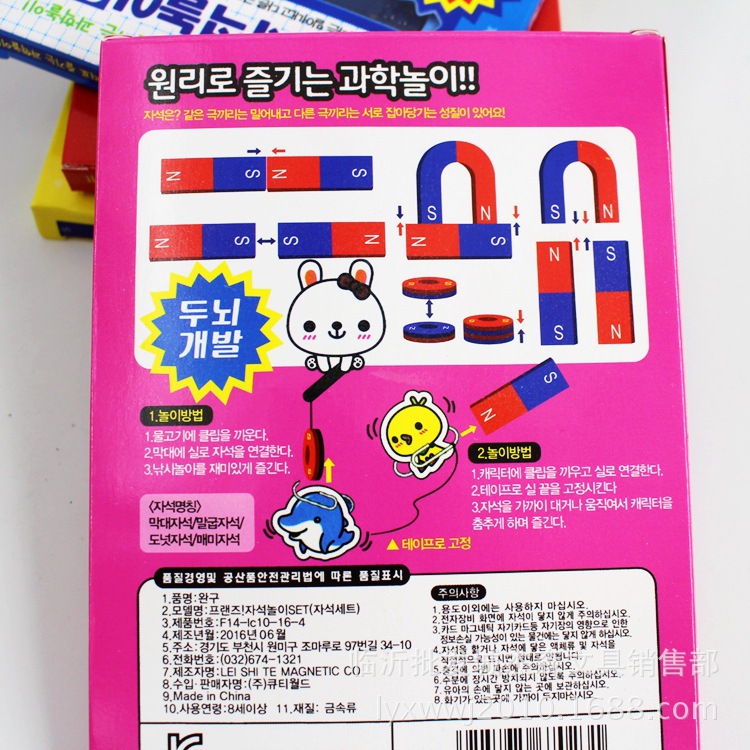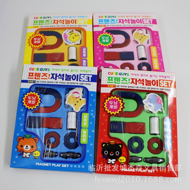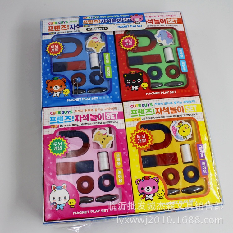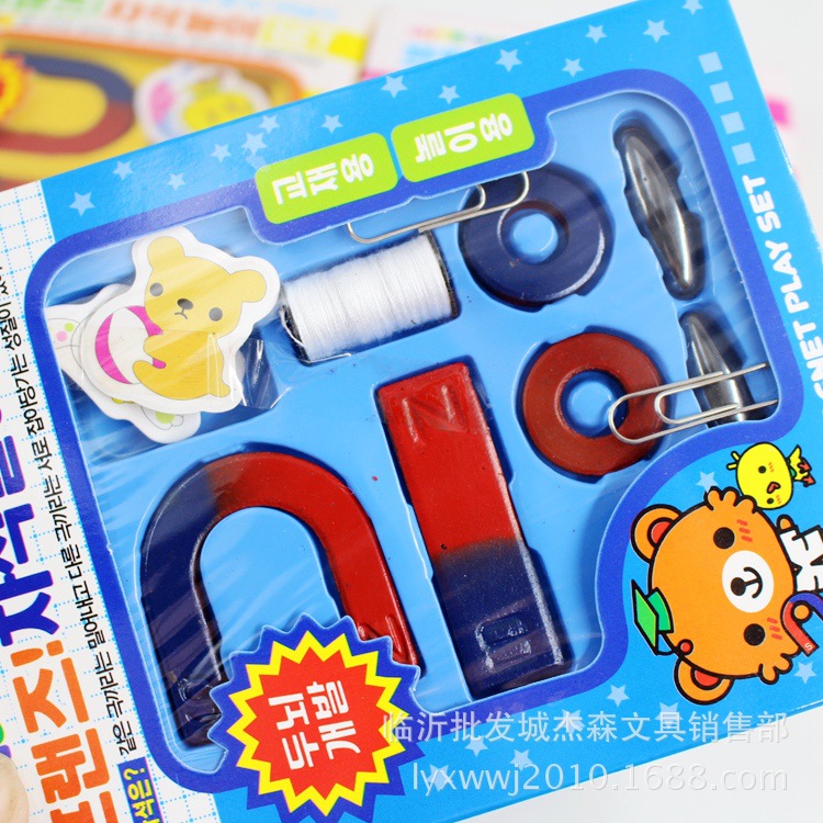 【包含】:U型磁铁一个 长条磁铁一个 圆形磁铁一对 线轴一个 卡片2张 玩具磁铁一对