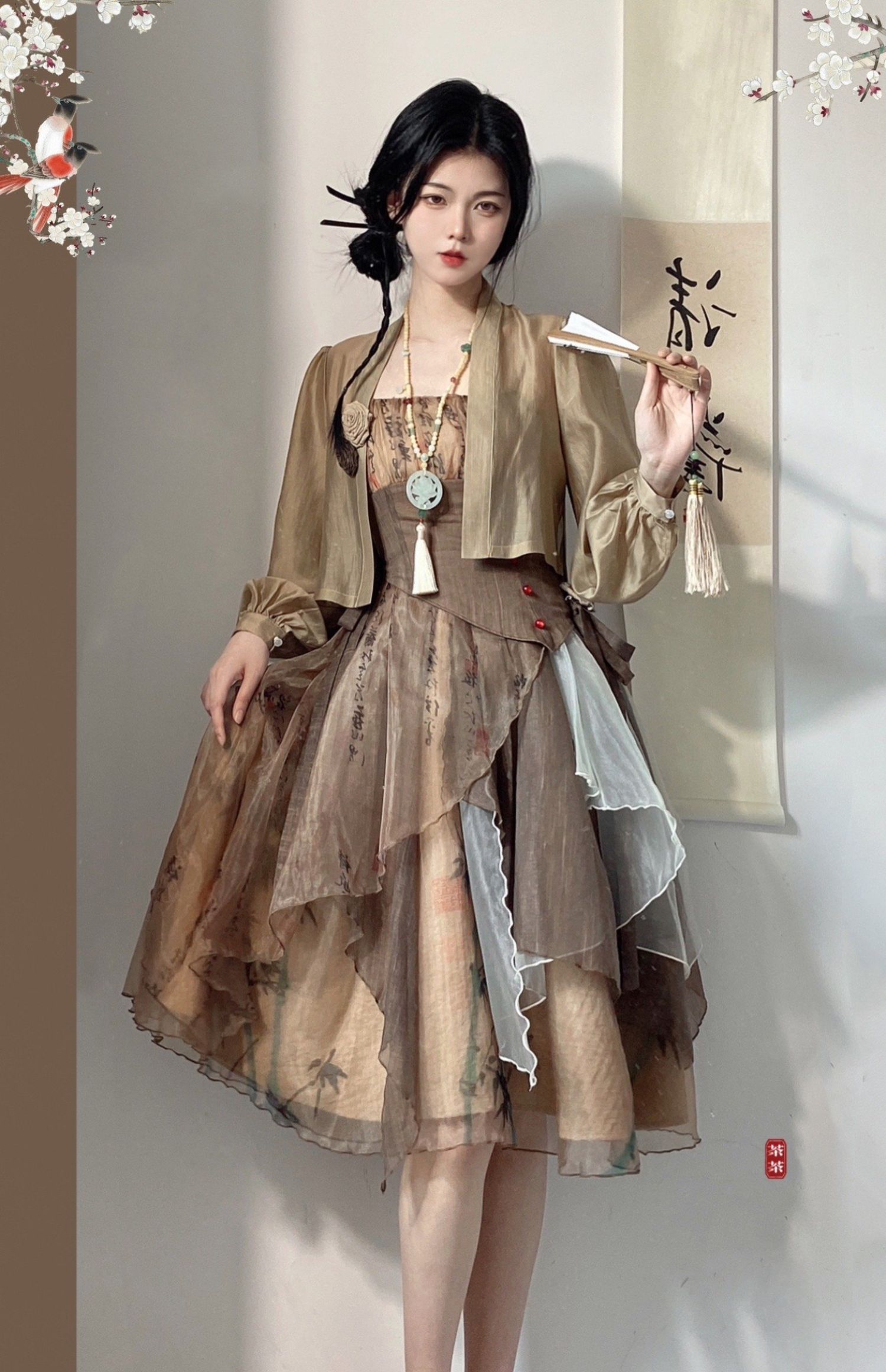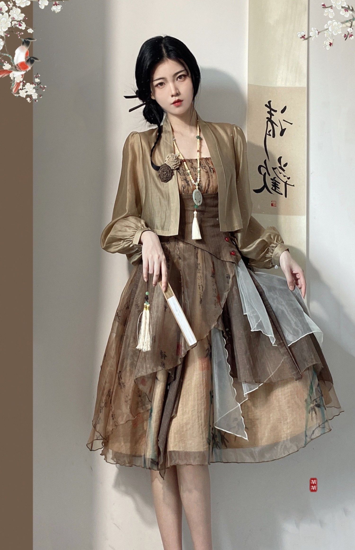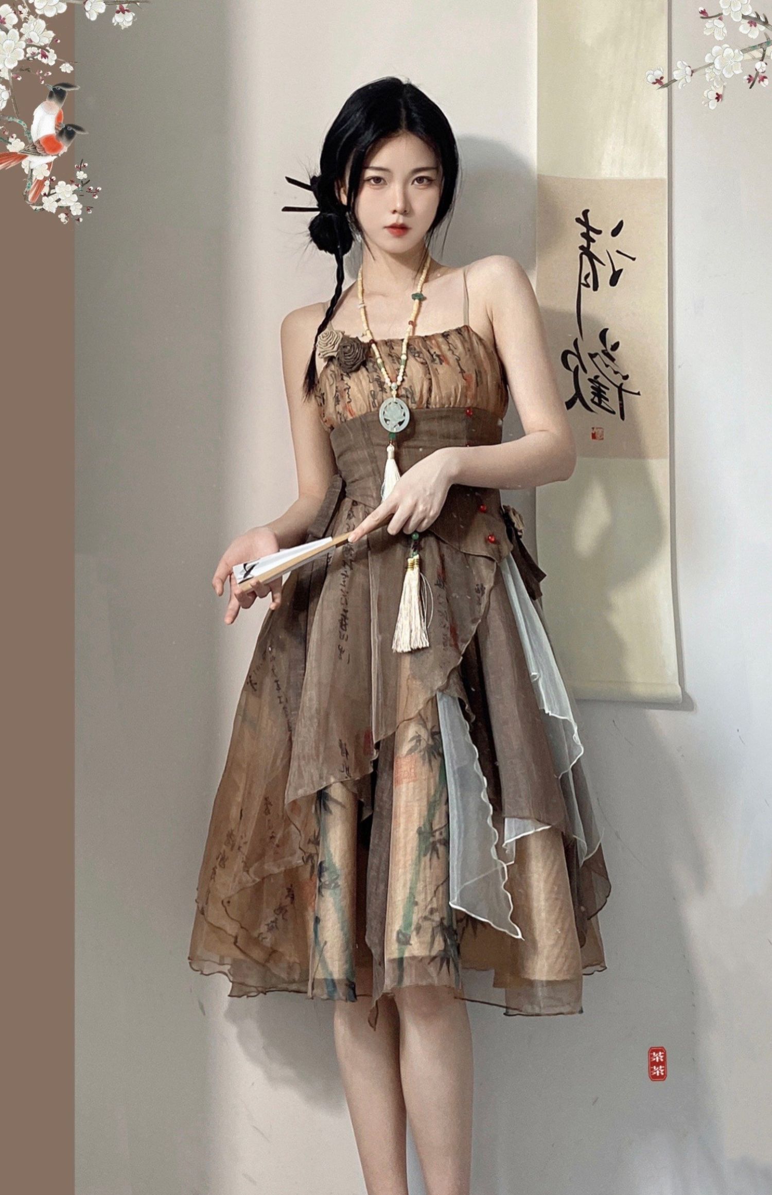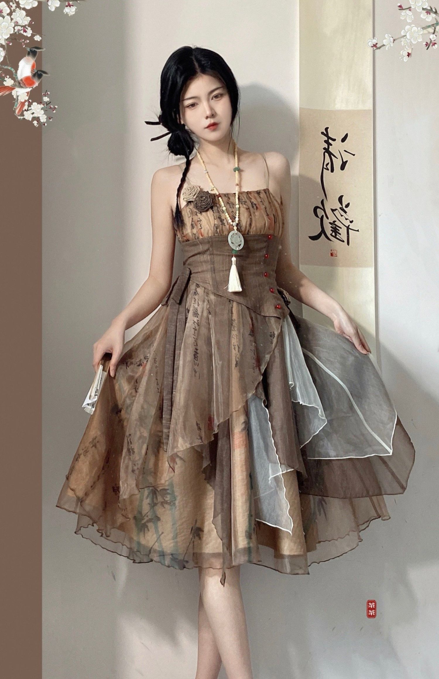 國風不規則裙子新中式設計感吊帶裙高級感開衫