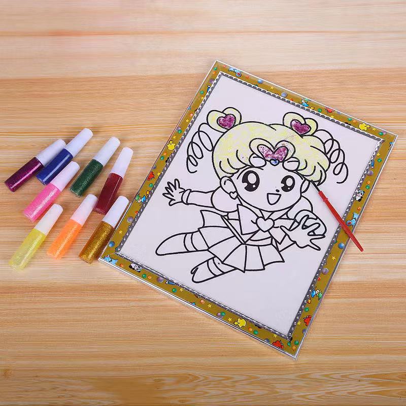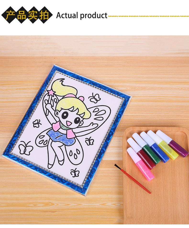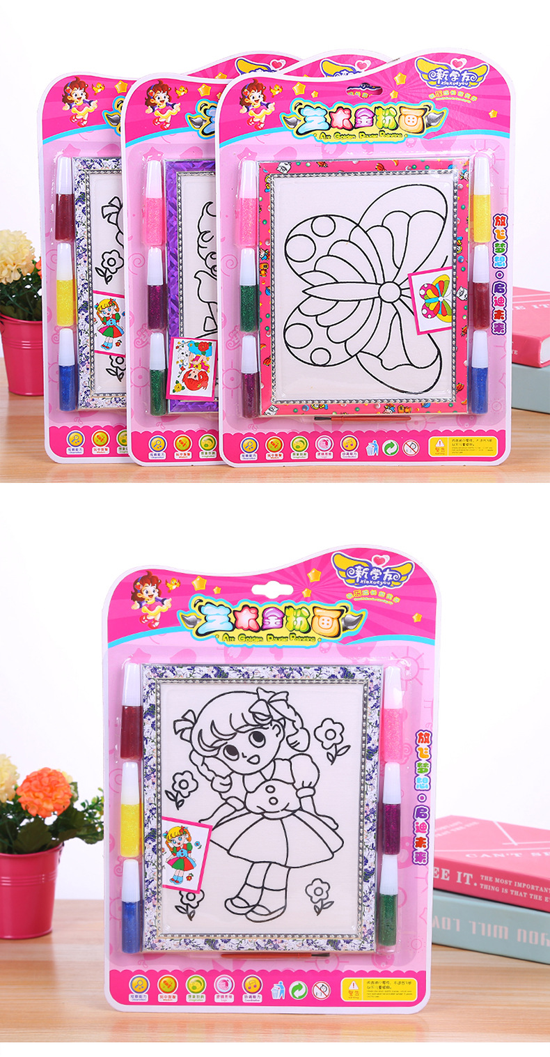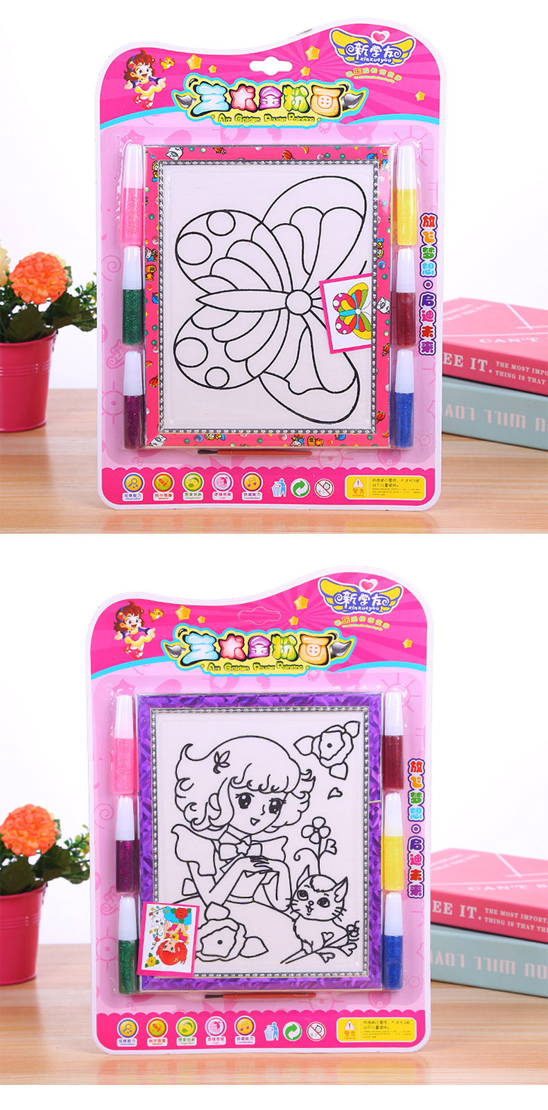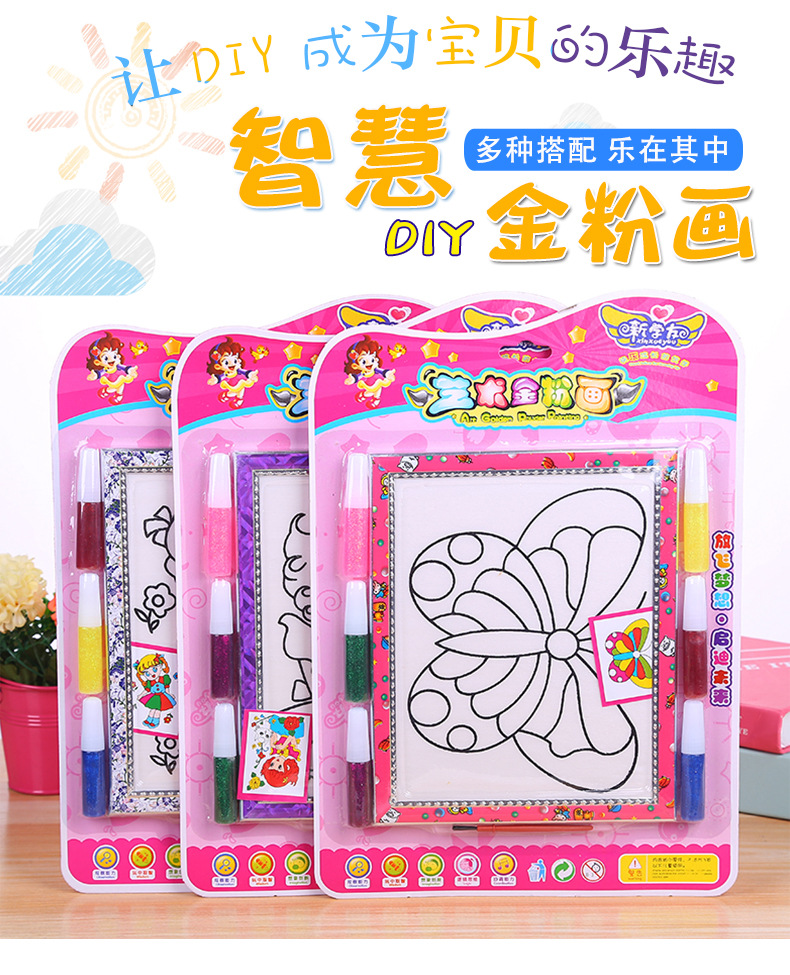 艺术金粉画 幼儿园儿童手工制作DIY彩绘画胶画沙画 多款混发