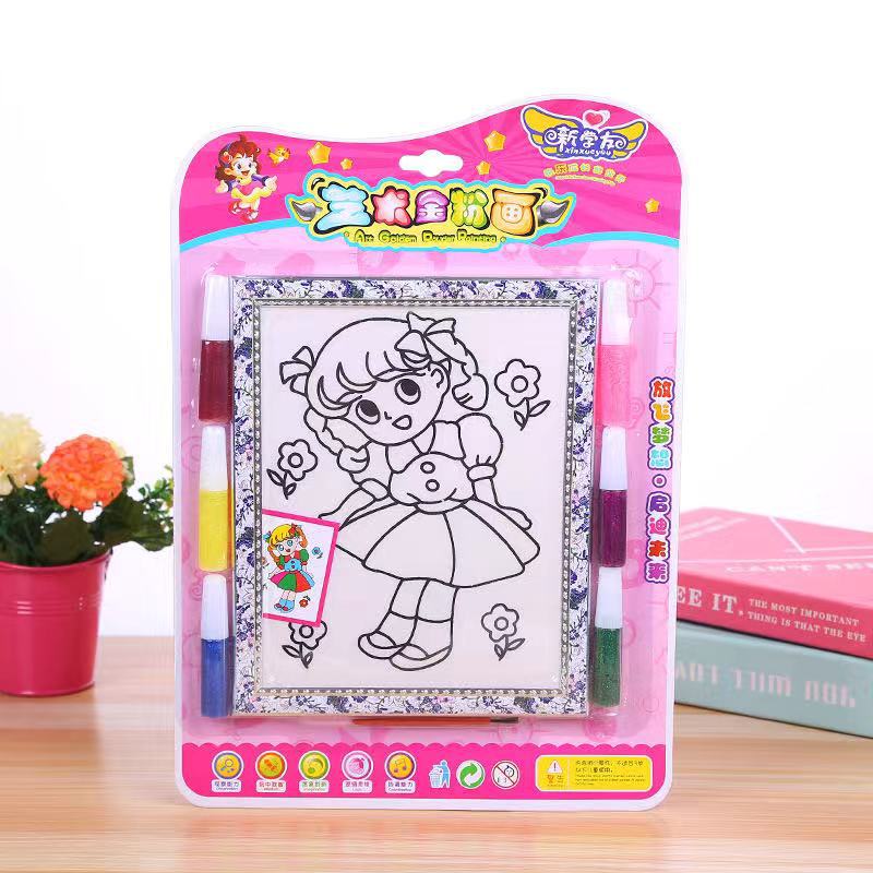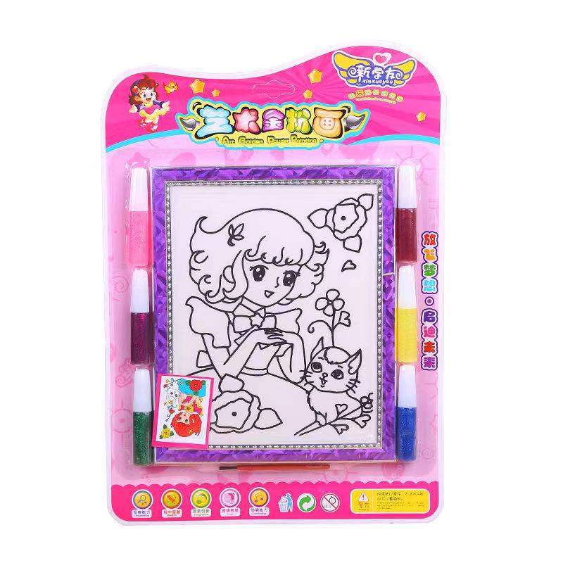 厂家直销儿童吸塑大号艺术金粉画沙画 涂鸦画 手工DIY水彩填色画