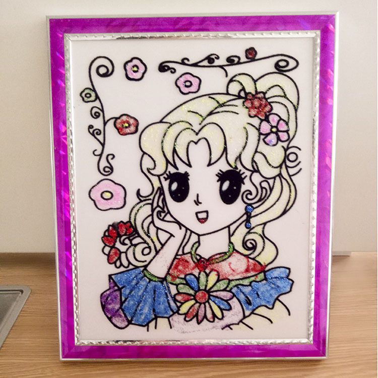 *金粉画是一种将闪光片胶水填涂于 KT 板或纸板 , 玻璃图案上,从而形成一副闪闪发光的极具欣赏艺术的 DIY 手工玩具。