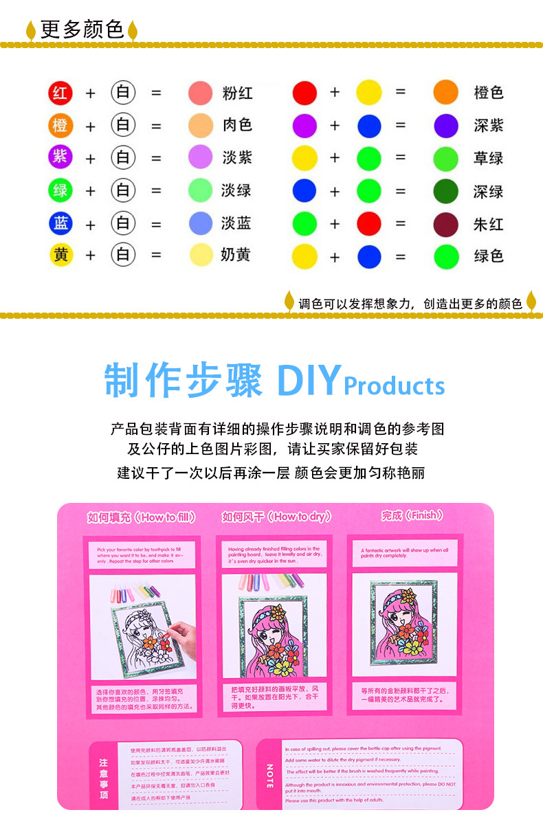 **说明:金粉画的相框有多种颜色图案也有很多,随机发货。注明适合女宝宝 或者男宝宝