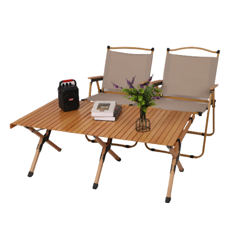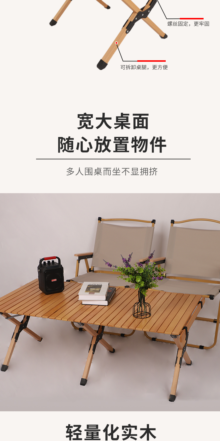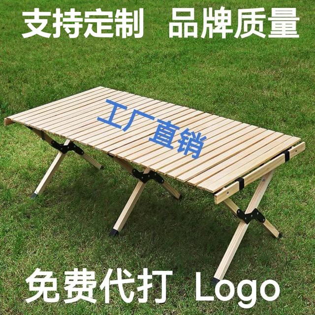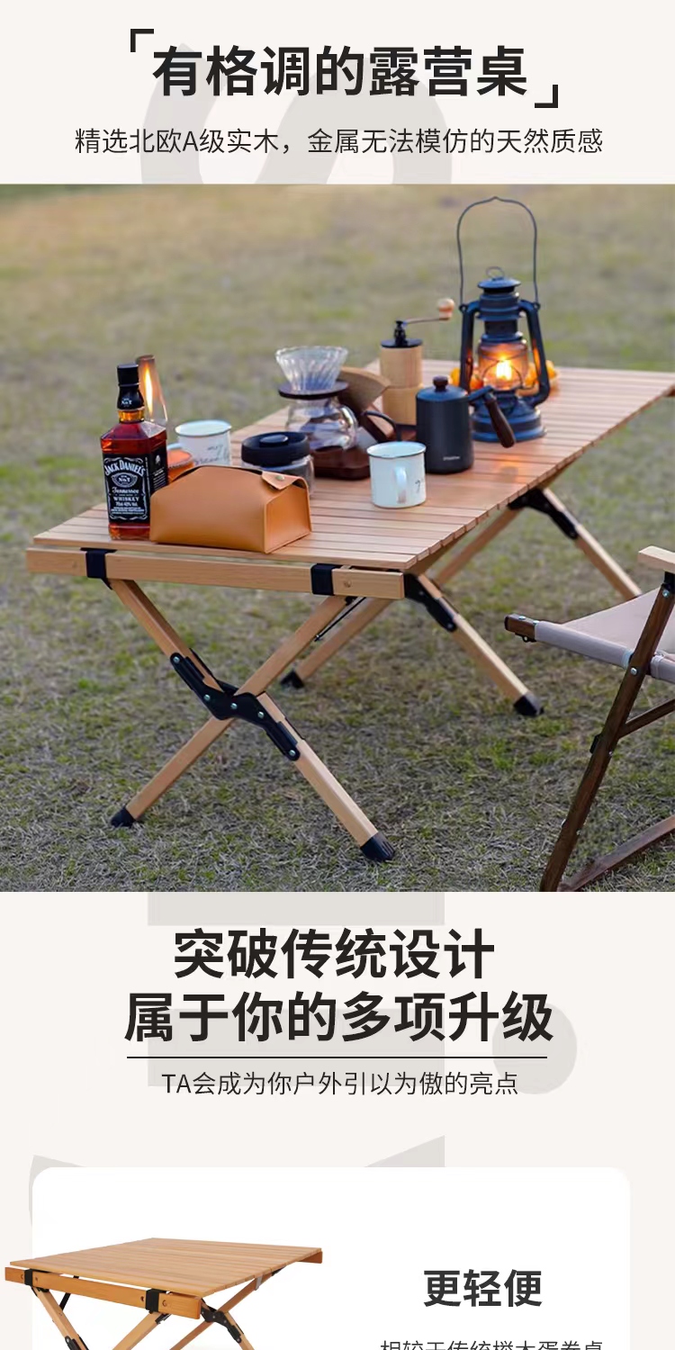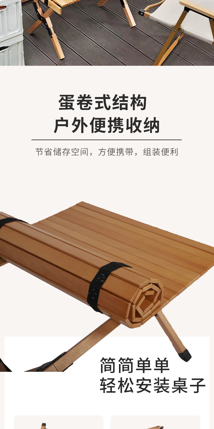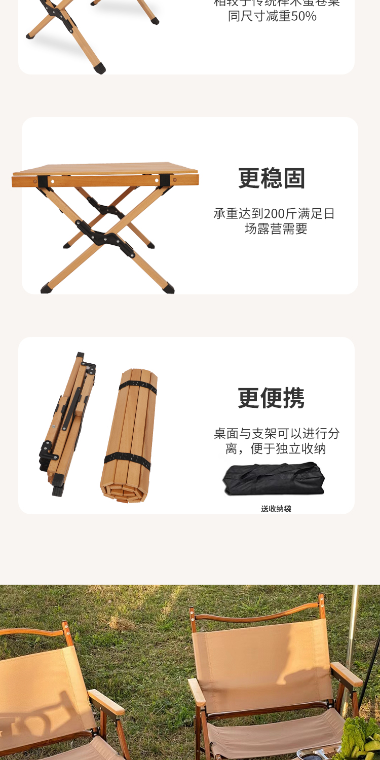 戶外摺疊桌子可攜式鬆木櫸木實木蛋卷桌野餐桌椅套裝露營用品裝備
