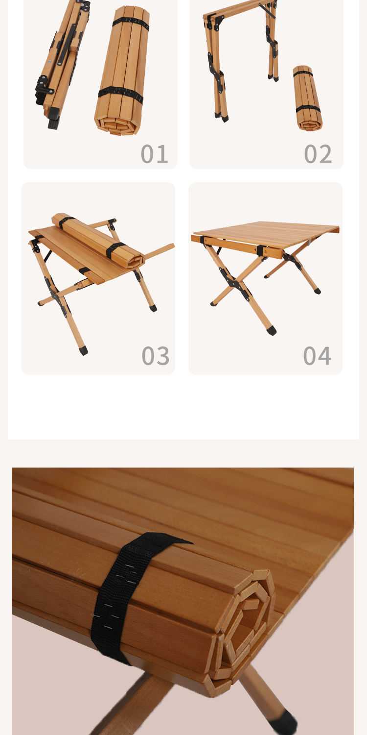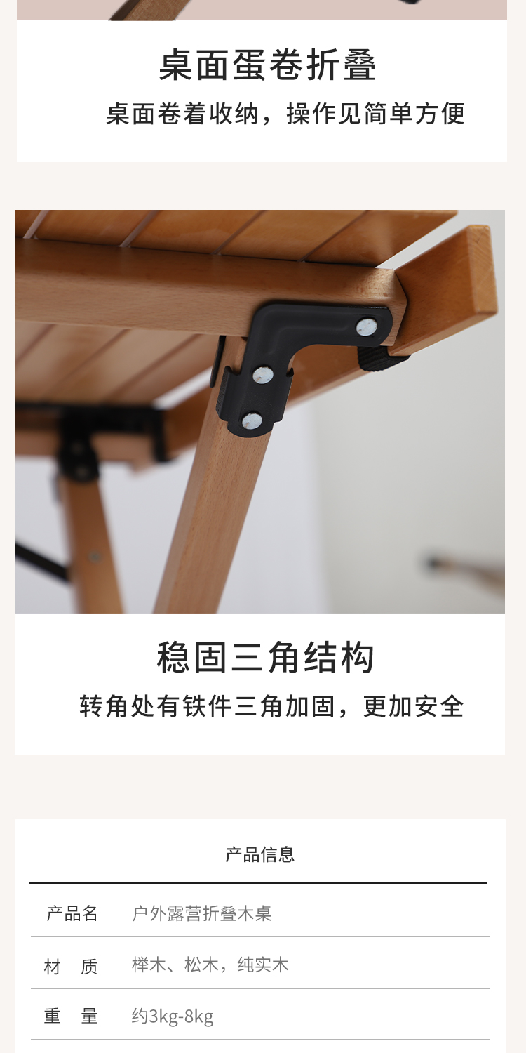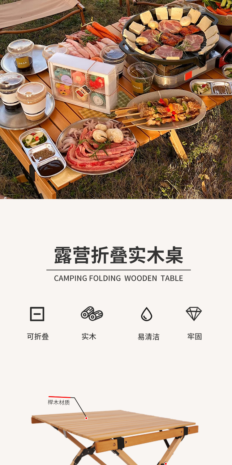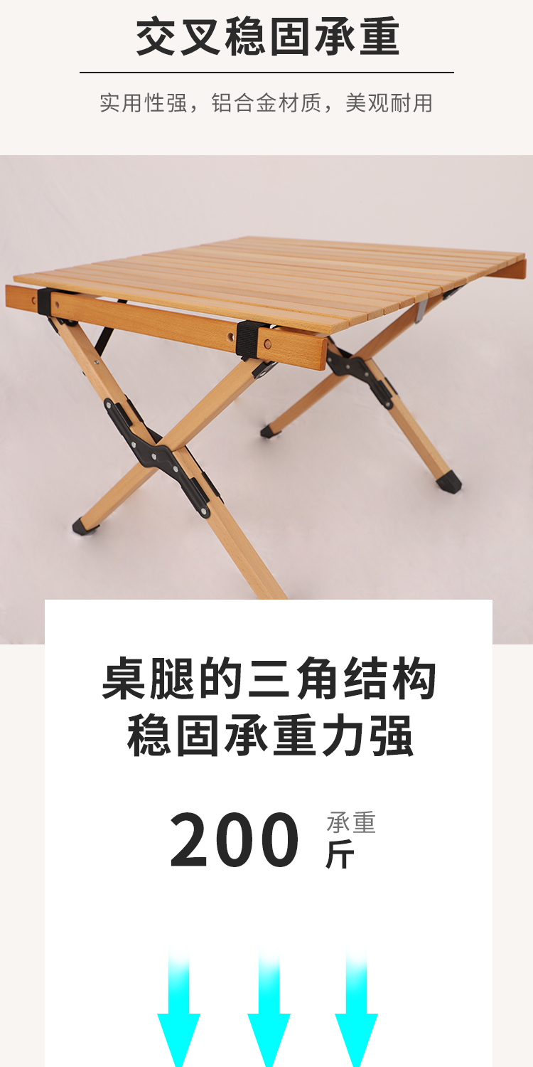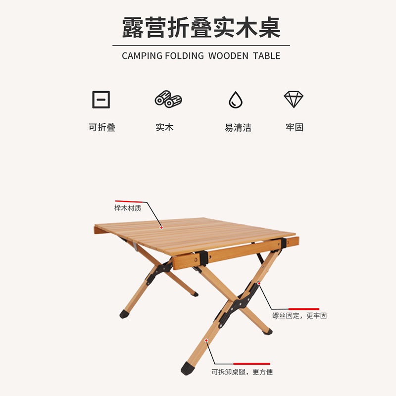 戶外摺疊桌子可攜式鬆木櫸木實木蛋卷桌野餐桌椅套裝露營用品裝備