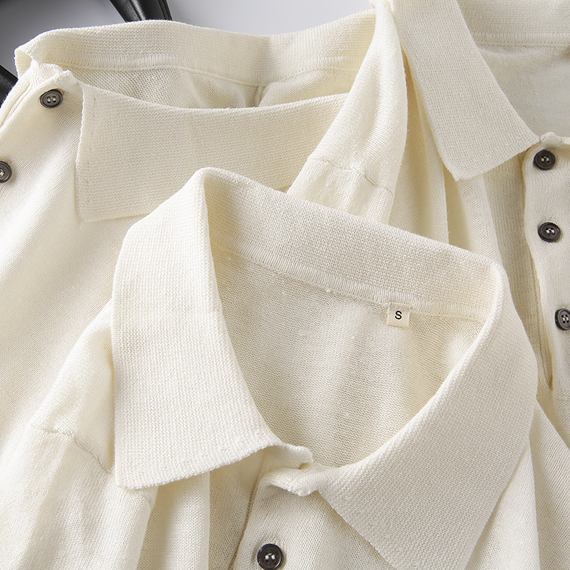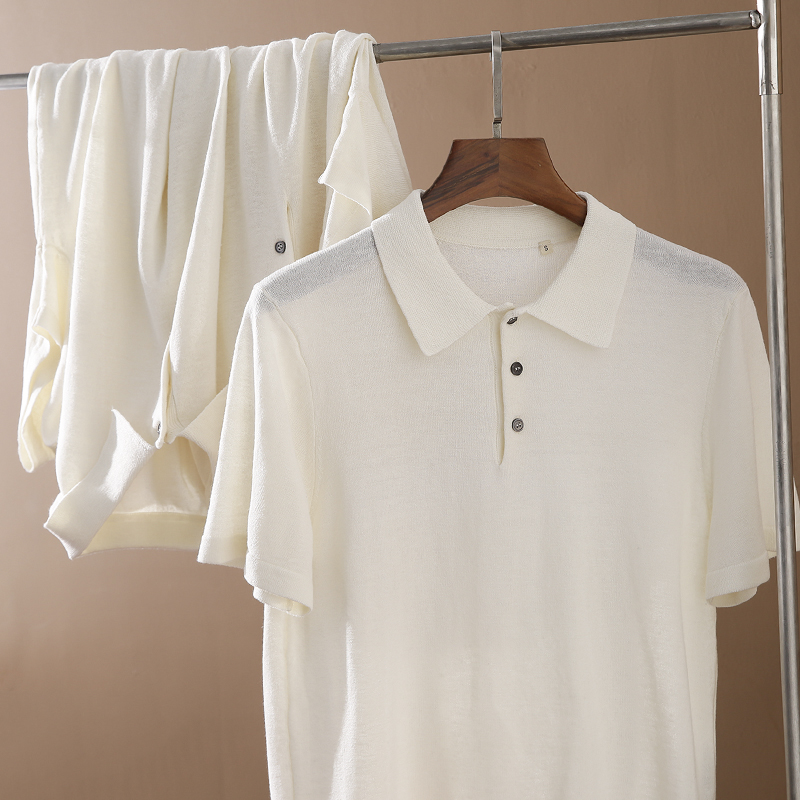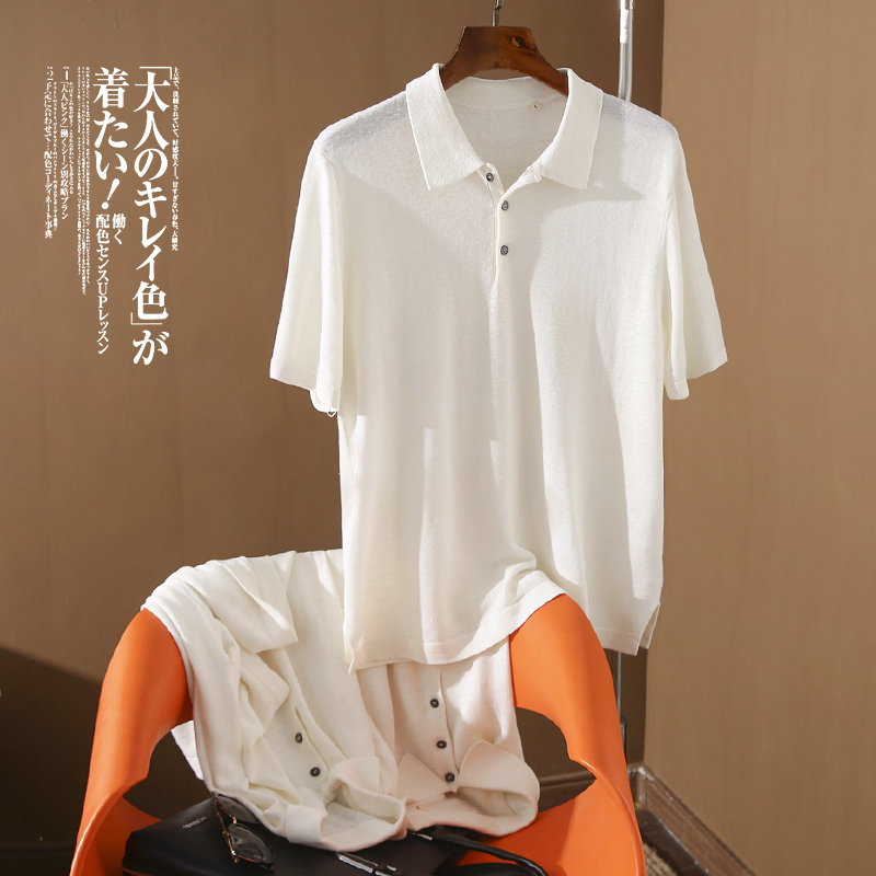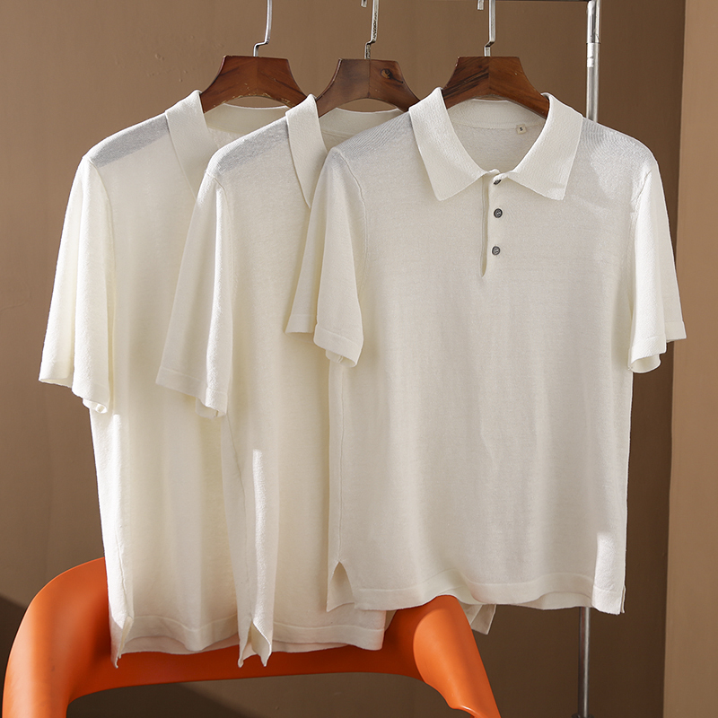 高端貨 意大利訂單!65亞麻+35天絲 男士夏季針織短袖T恤Polo衫薄