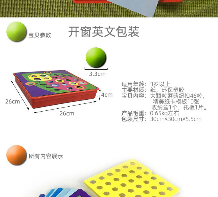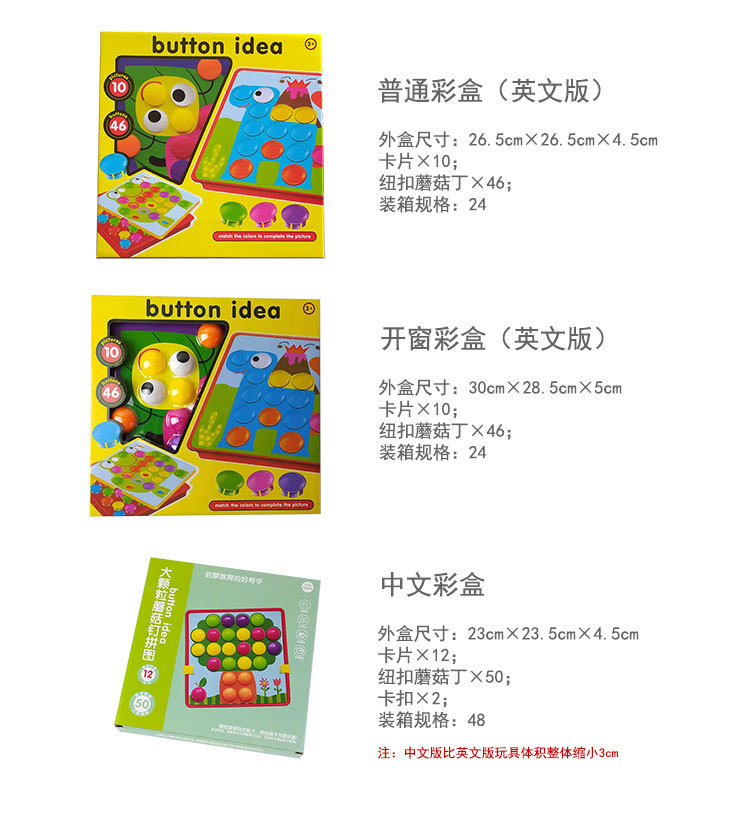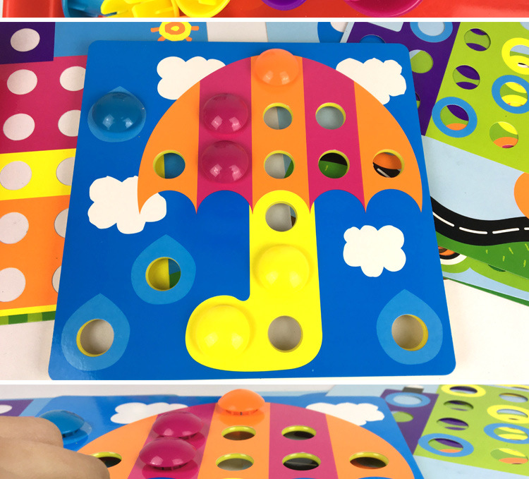 大颗粒纽扣拼图蘑菇钉早教儿童启蒙益智识色拼插组合宝宝玩具批发