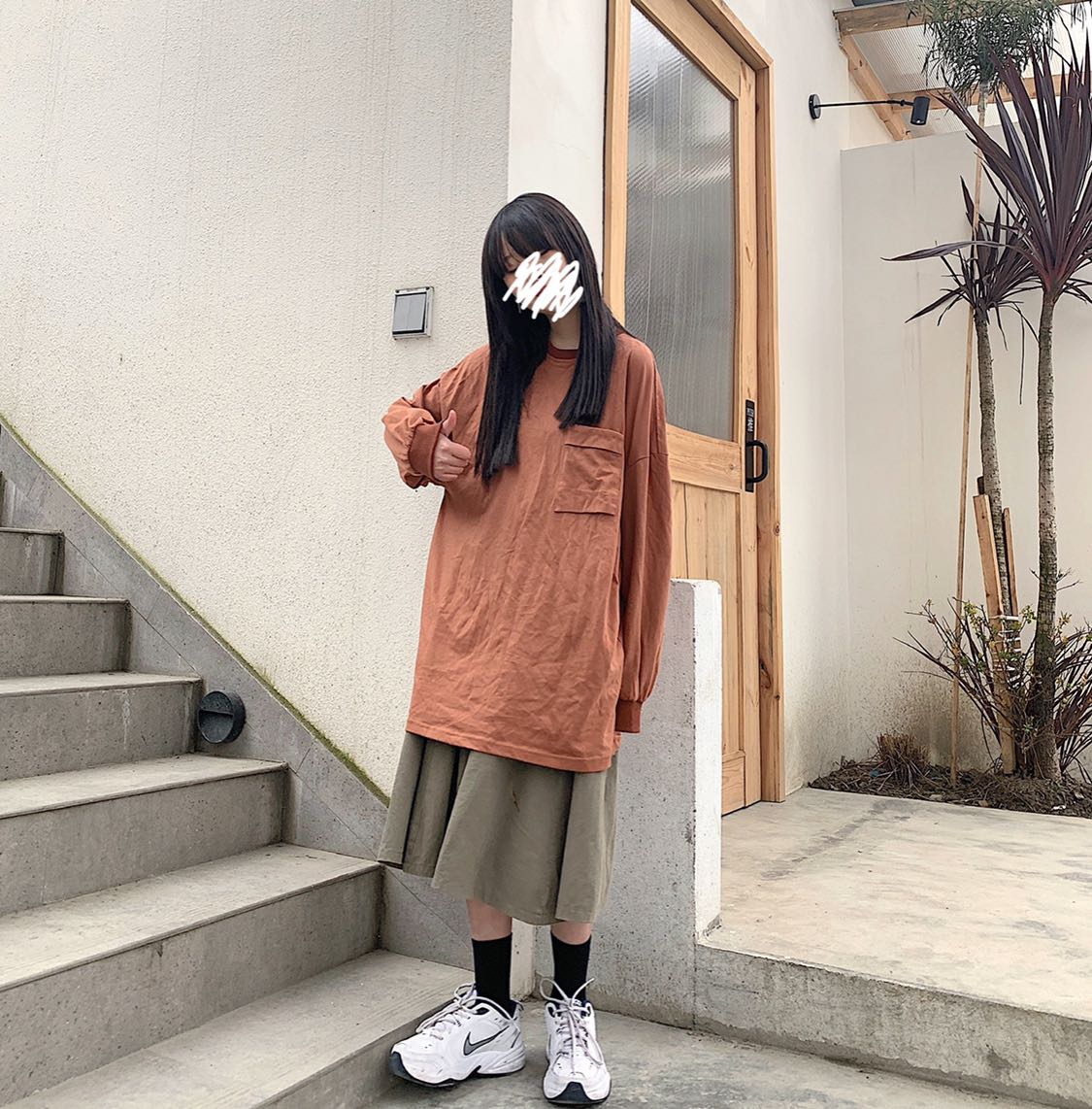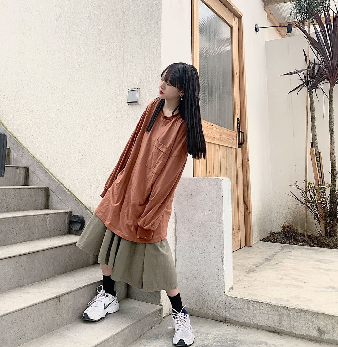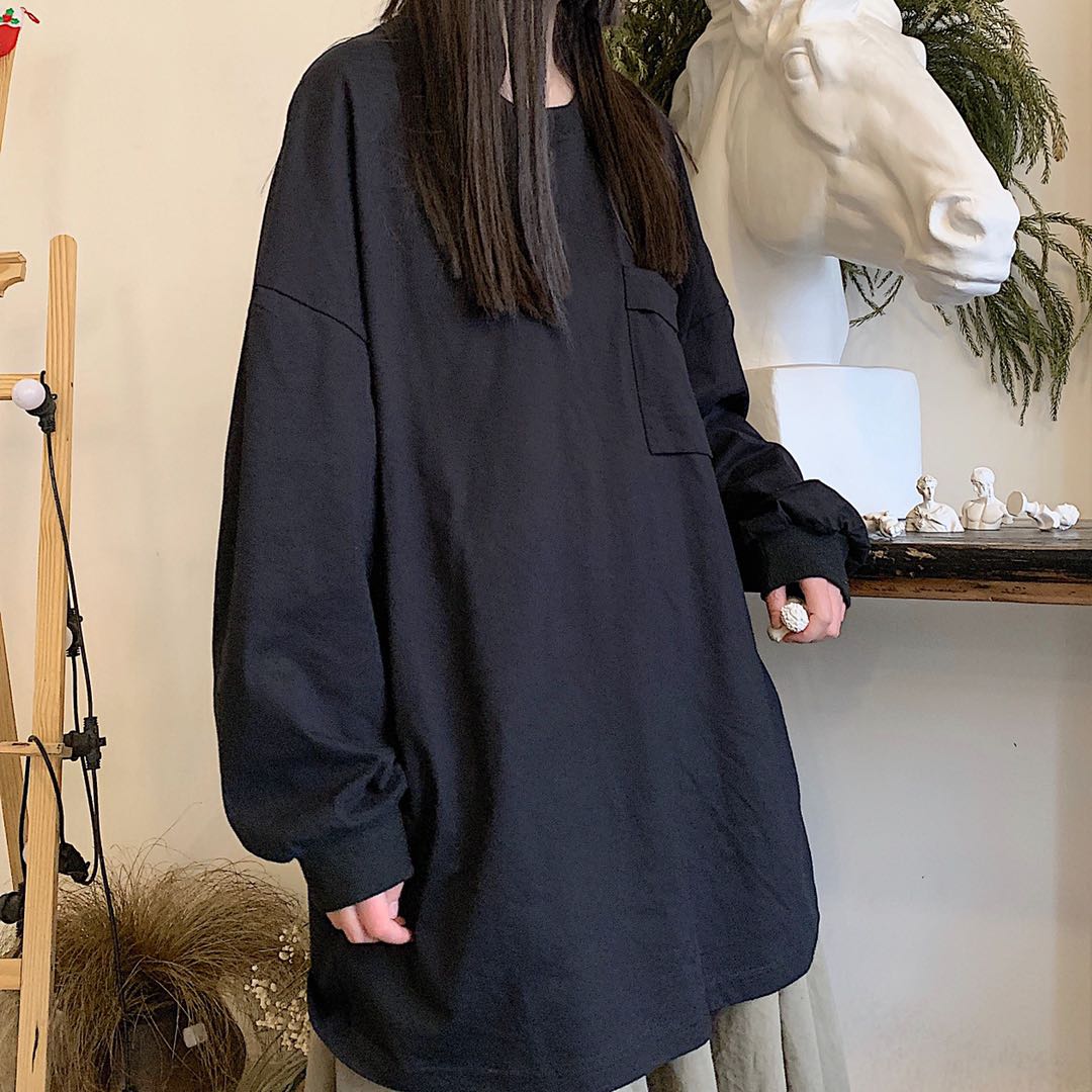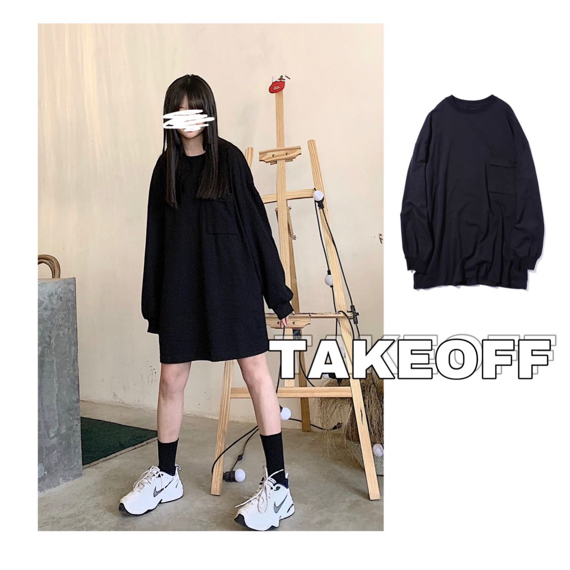 Takeoff咖哩人bf寬鬆長袖T恤內搭上衣oversize慵懶純色中長嘻哈