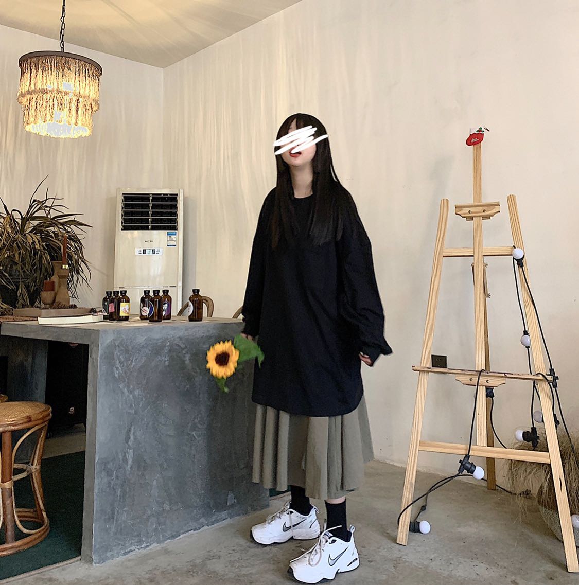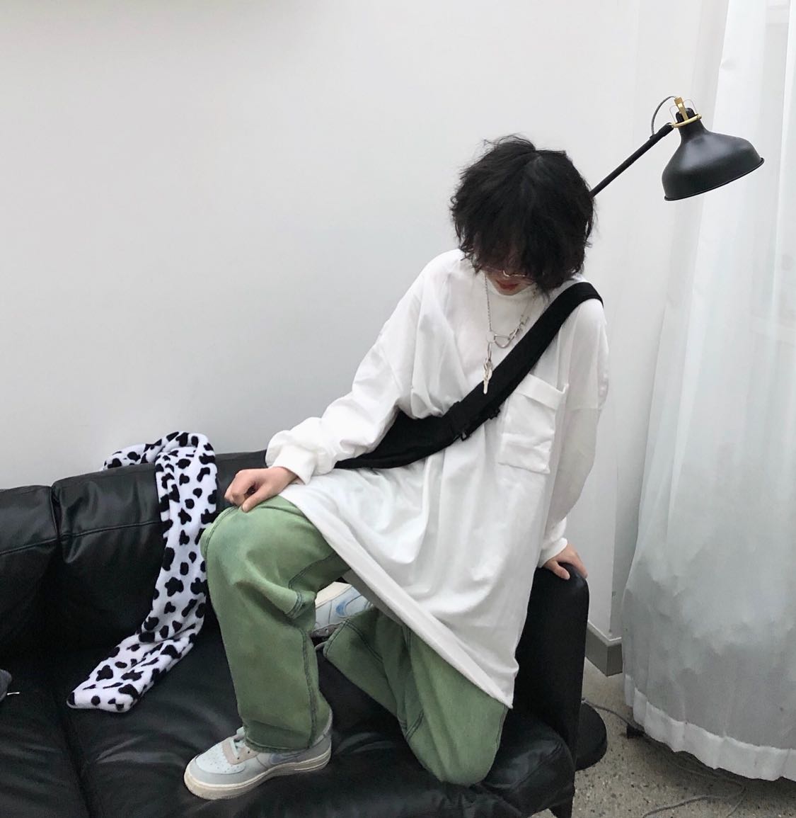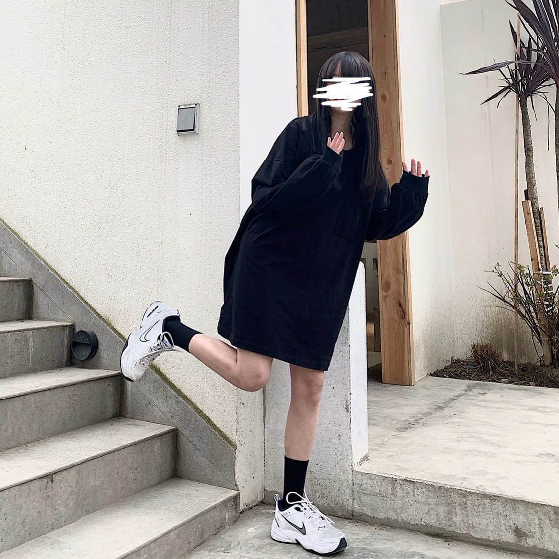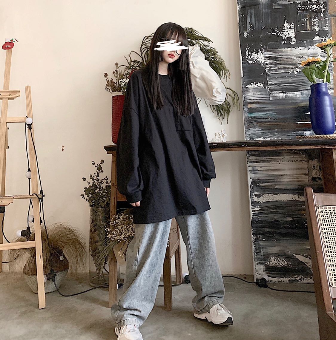 Takeoff咖哩人bf寬鬆長袖T恤內搭上衣oversize慵懶純色中長嘻哈