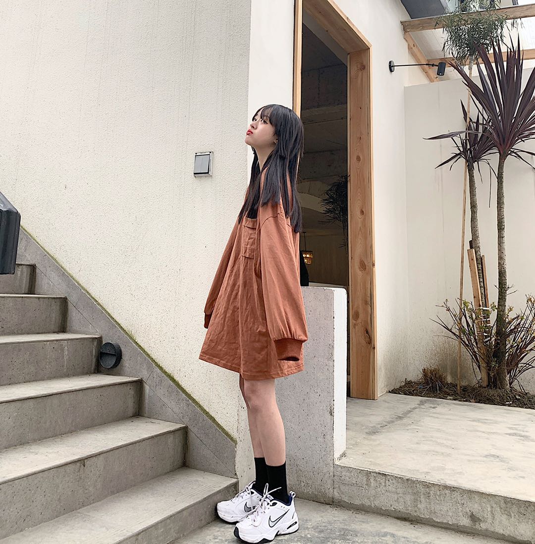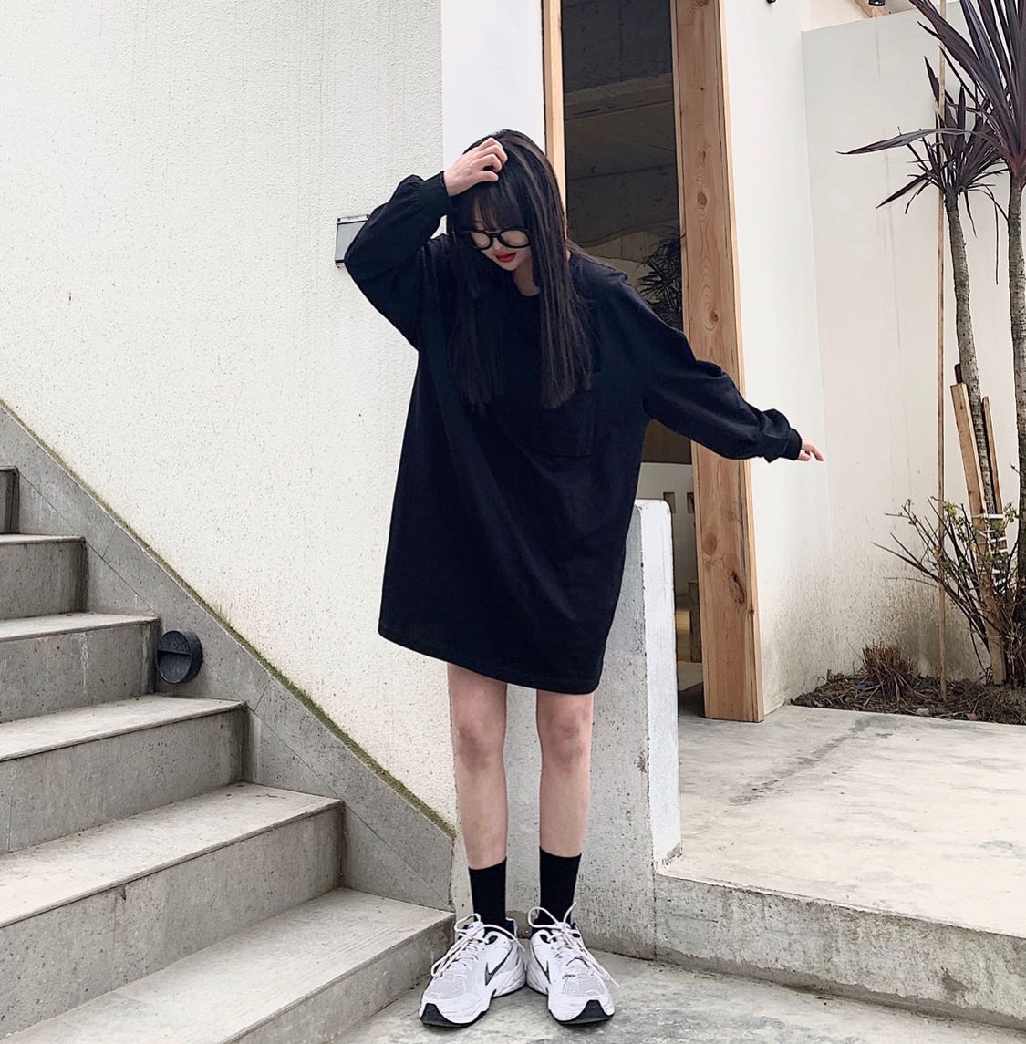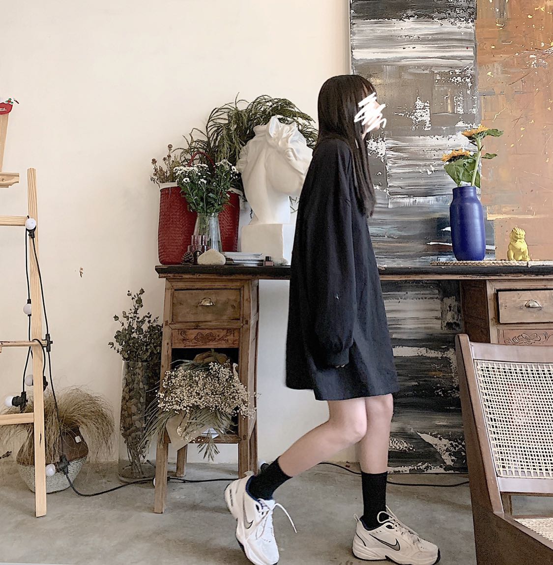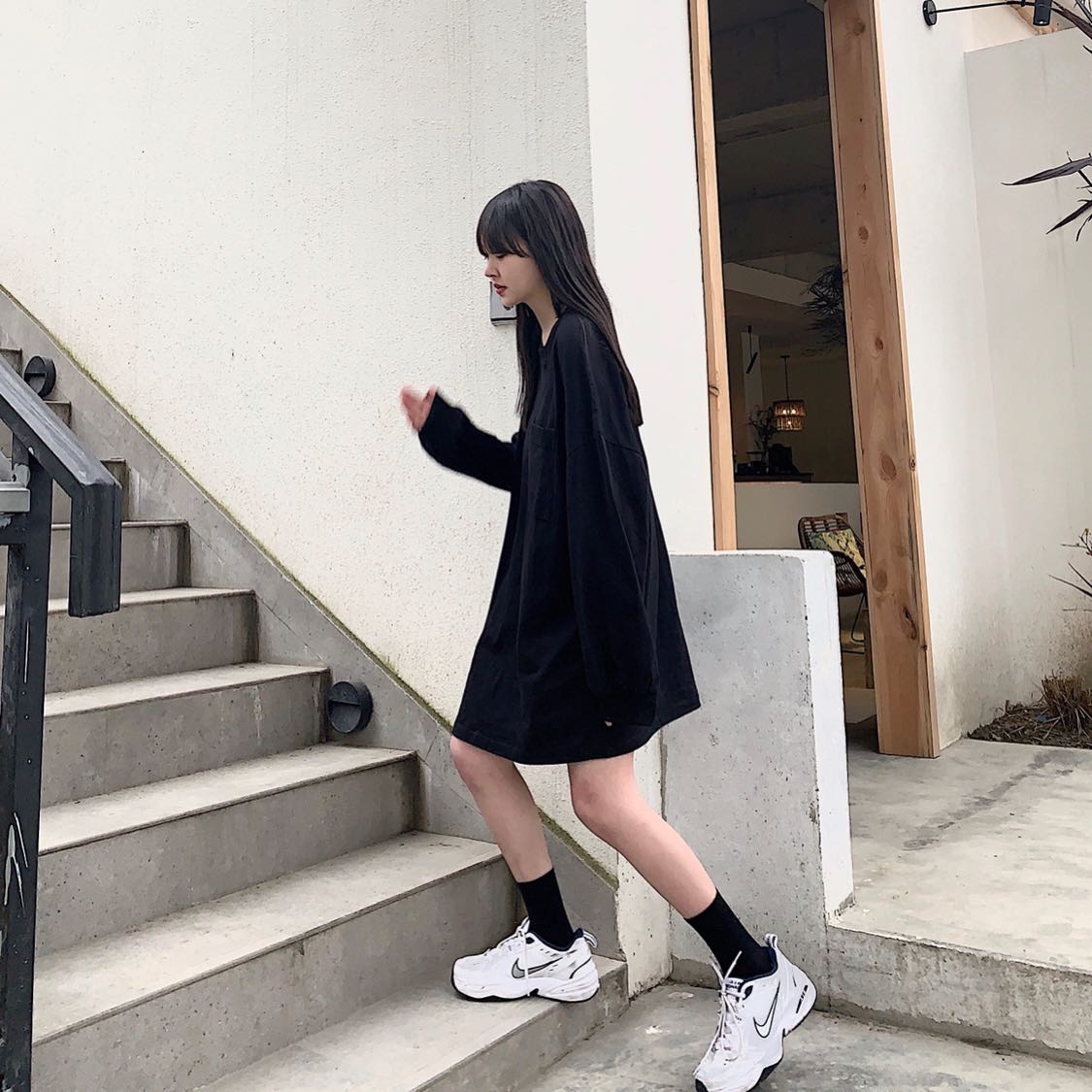 Takeoff咖哩人bf寬鬆長袖T恤內搭上衣oversize慵懶純色中長嘻哈