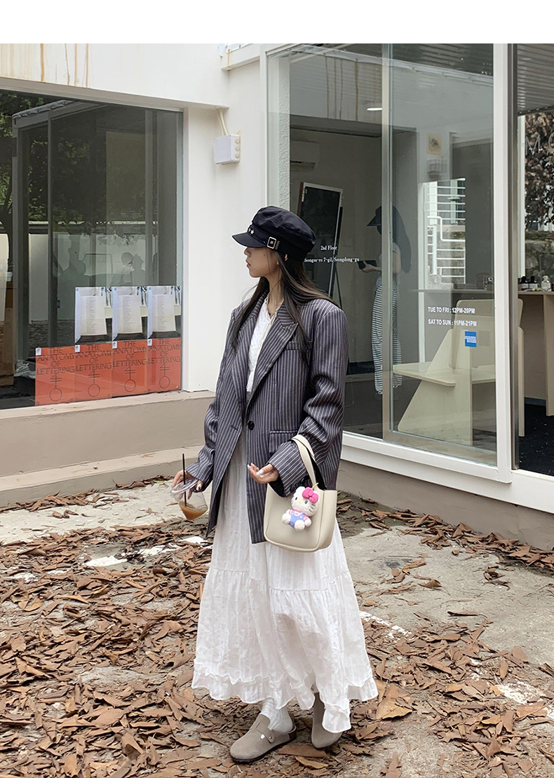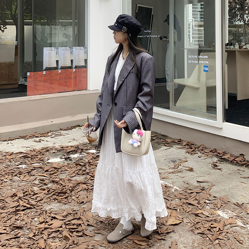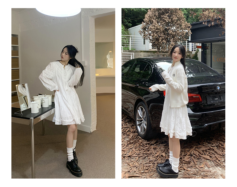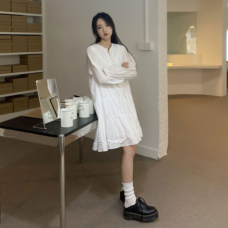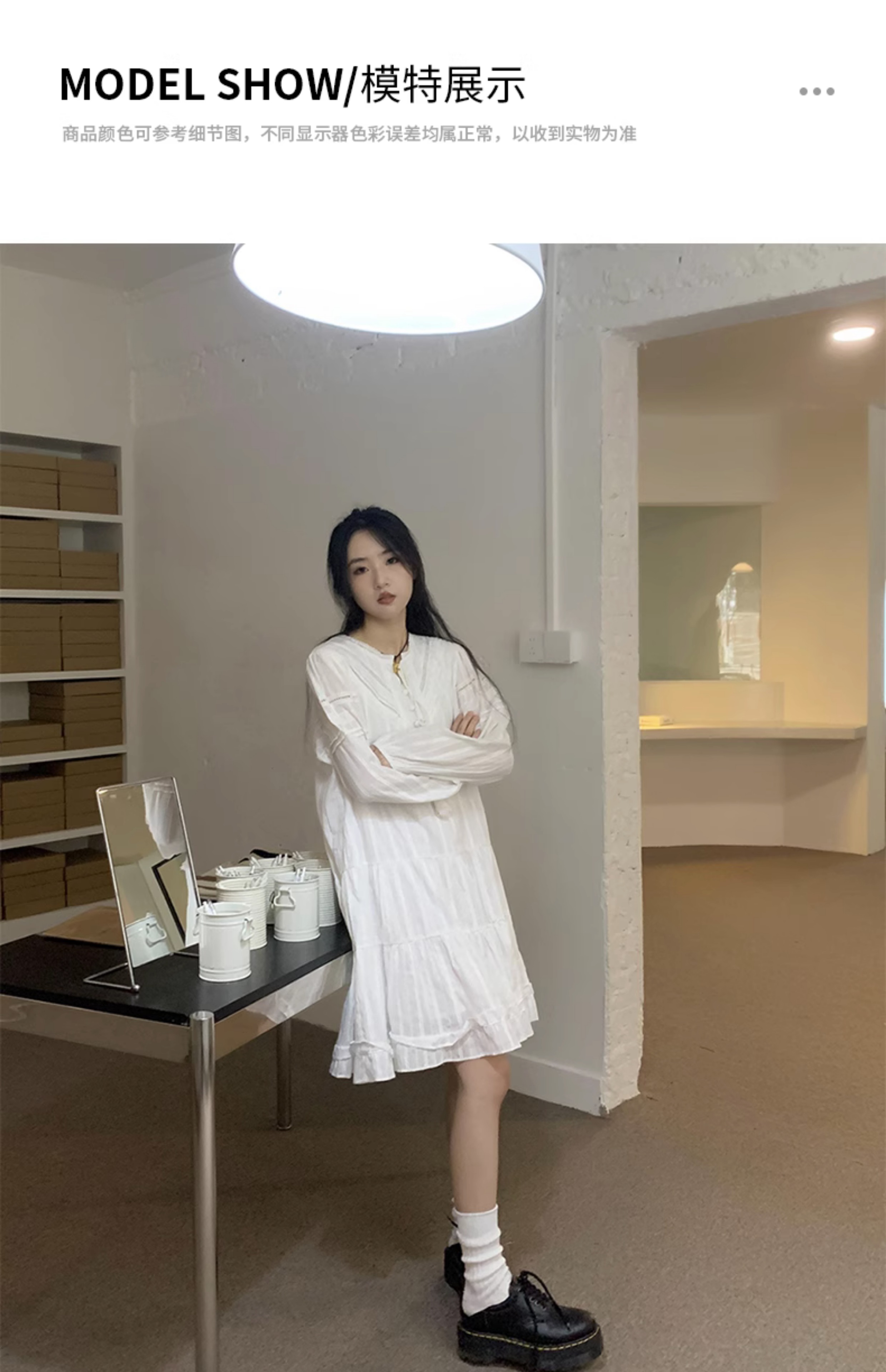 橘子樹在哪兒絕美氣質白色連衣裙女早秋設計感寬鬆中長版初戀裙子