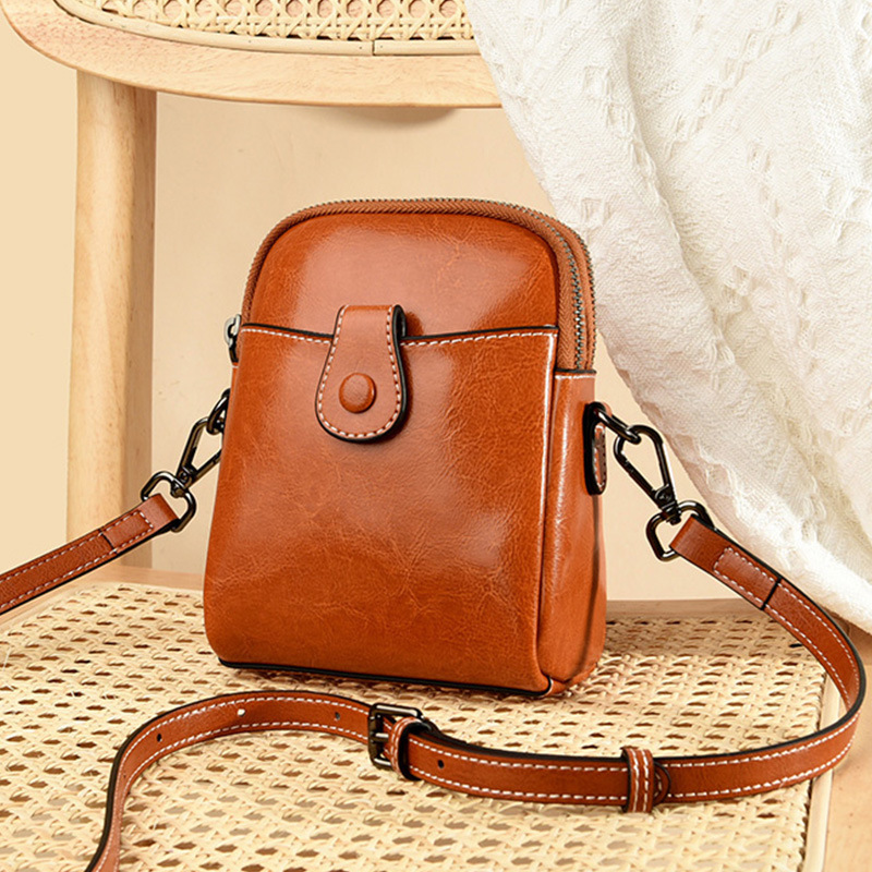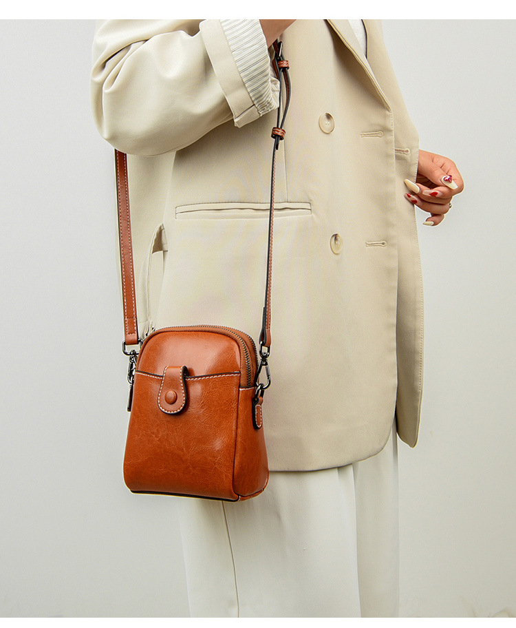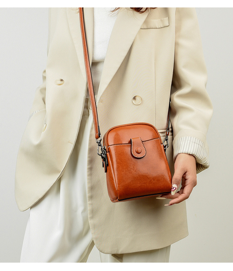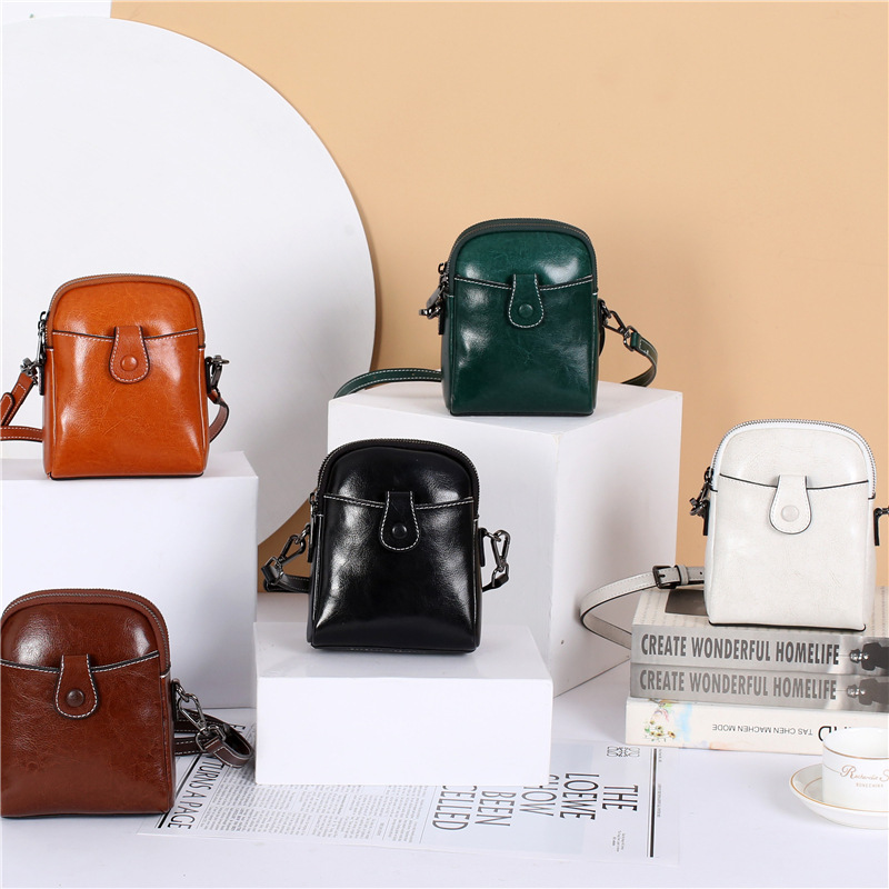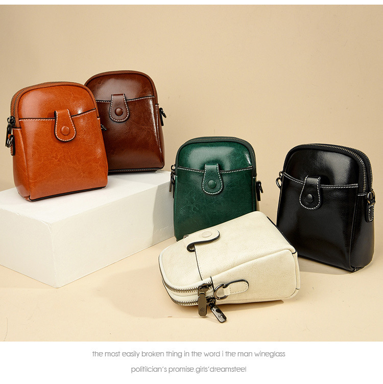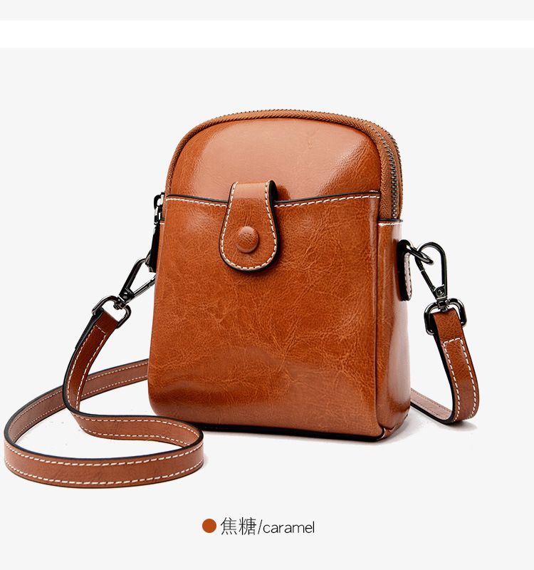 批发真皮迷你斜挎零钱包春夏新款休闲百搭单肩小包包油蜡皮手机包