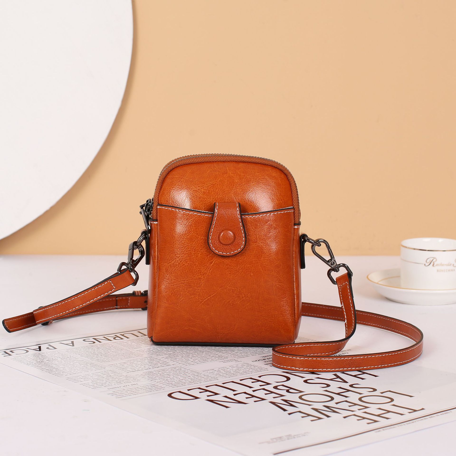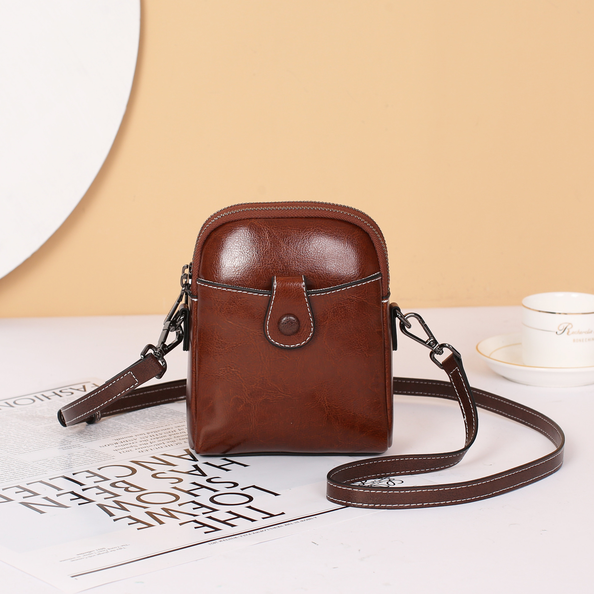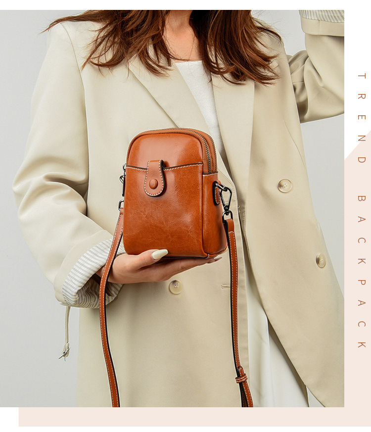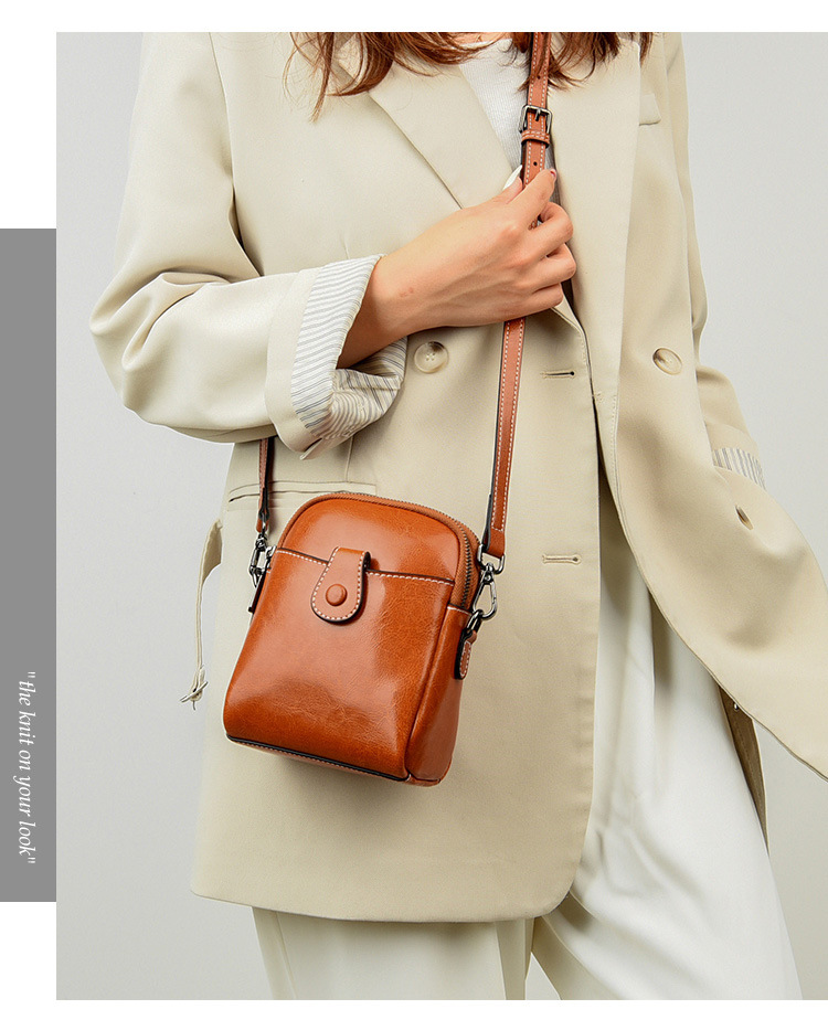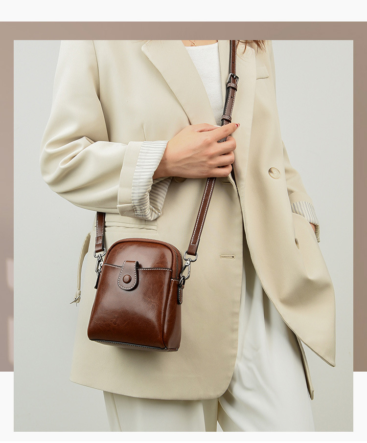 批发真皮迷你斜挎零钱包春夏新款休闲百搭单肩小包包油蜡皮手机包