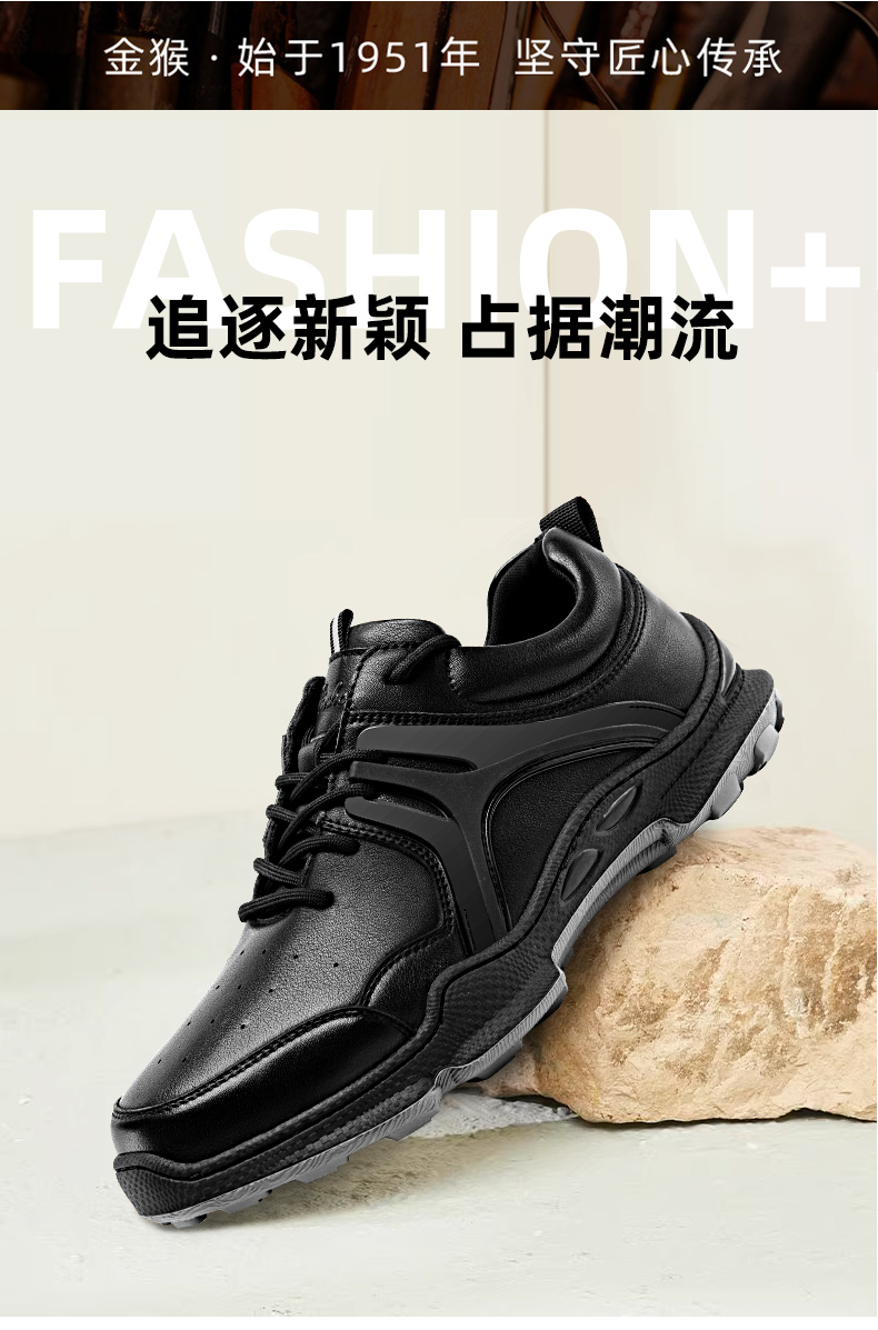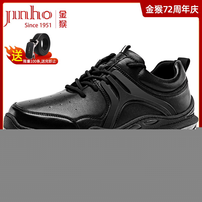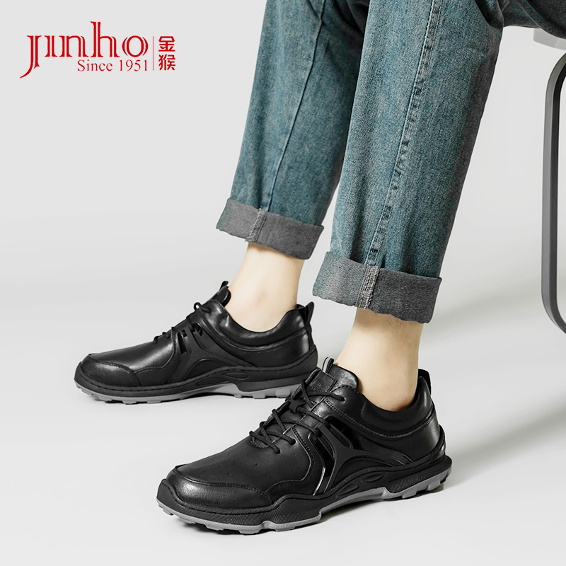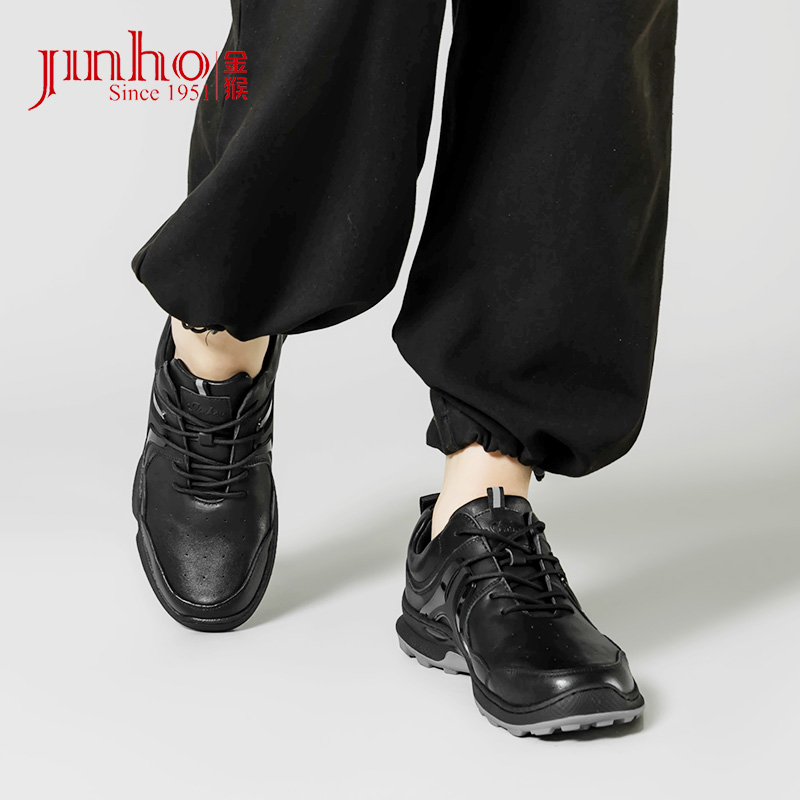 金猴運動皮鞋男2023秋季新款戶外緩震真牛皮休閒鞋黑色軟底跑步鞋