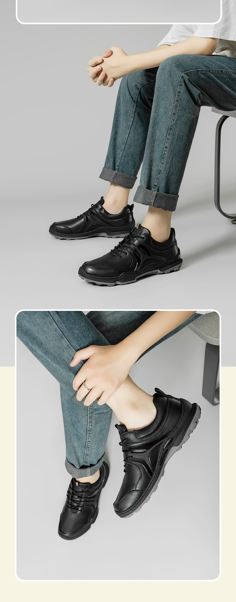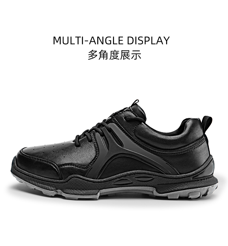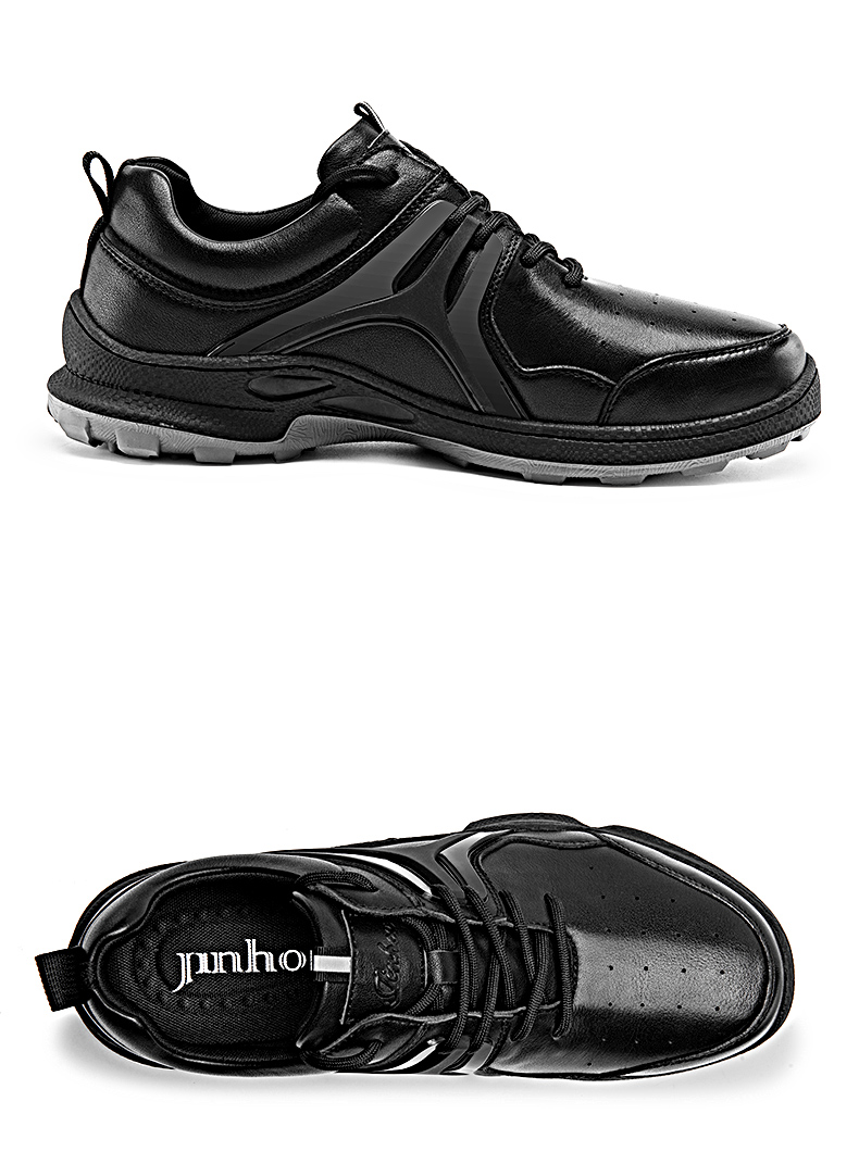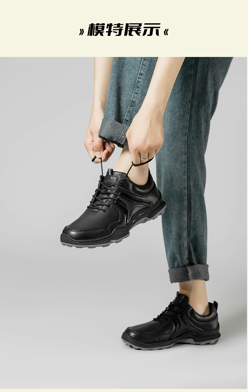 金猴運動皮鞋男2023秋季新款戶外緩震真牛皮休閒鞋黑色軟底跑步鞋