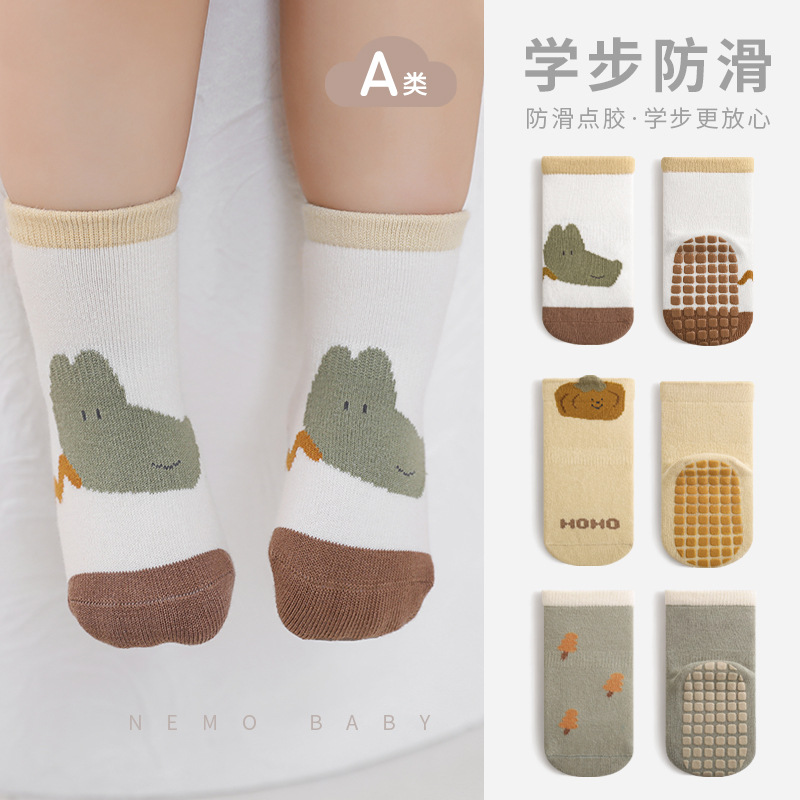 2023秋季新品宝宝地板袜室内防滑全底胶学步可爱卡通男女童中筒袜