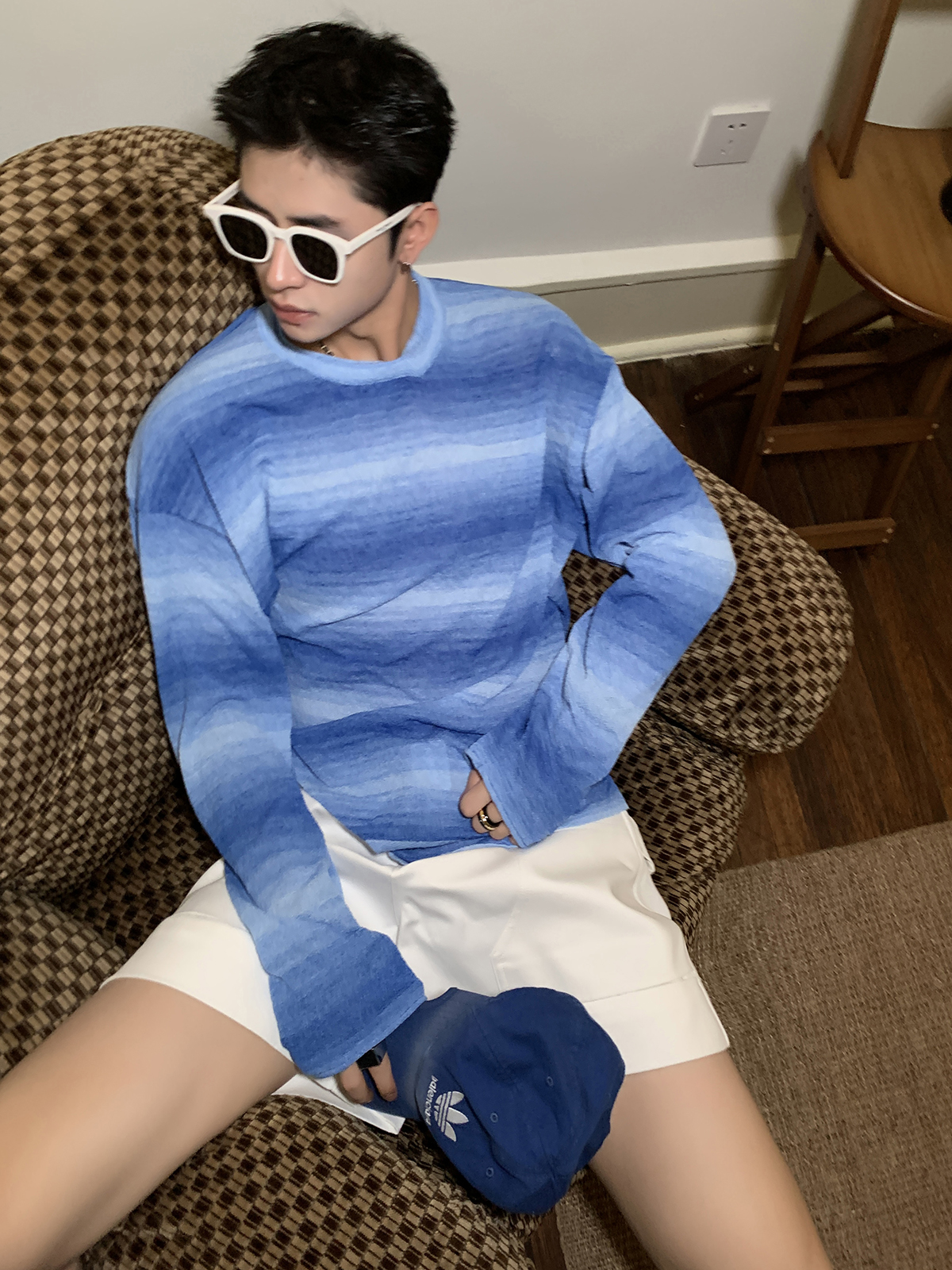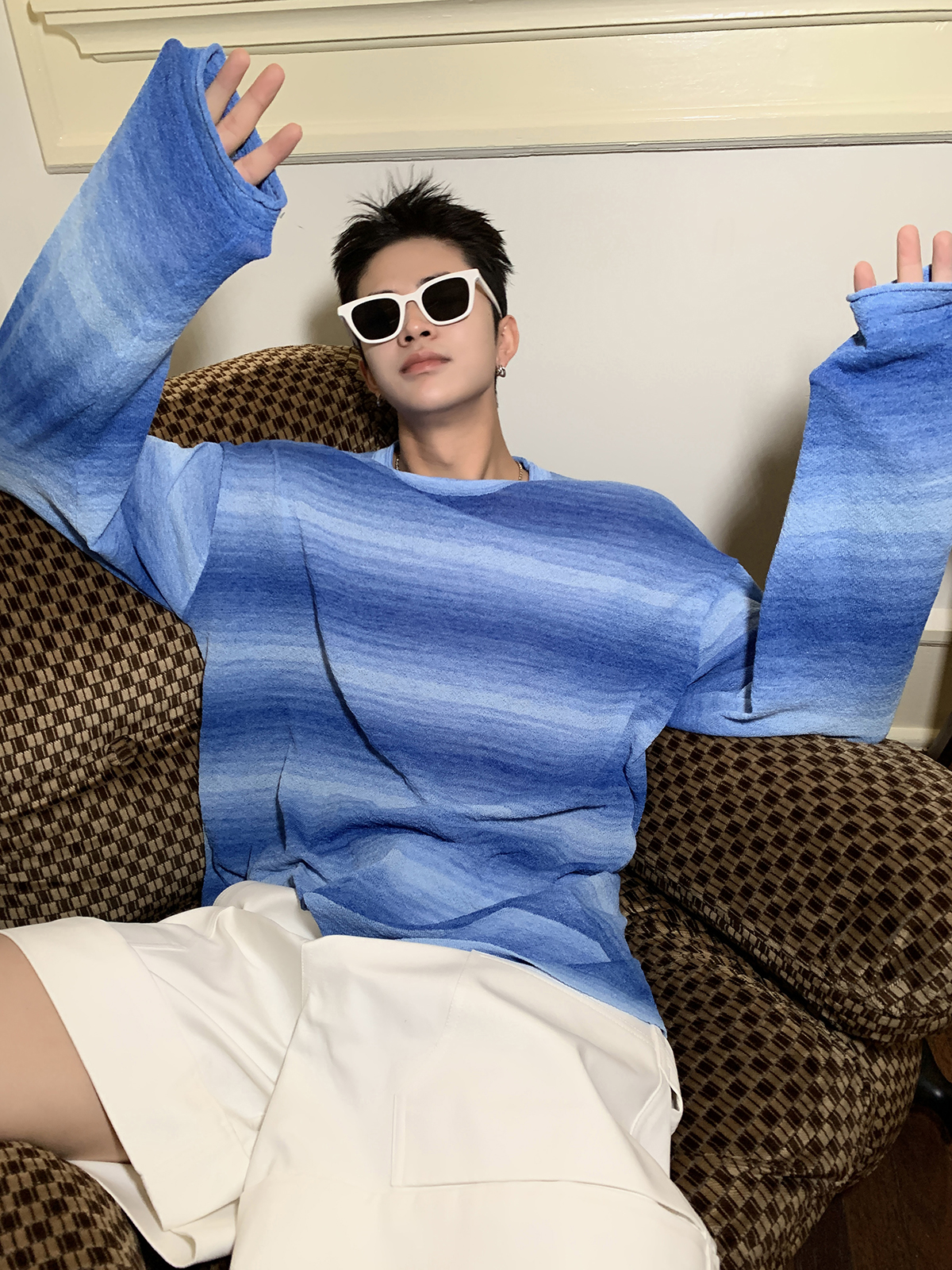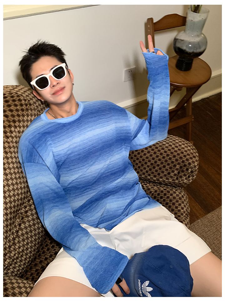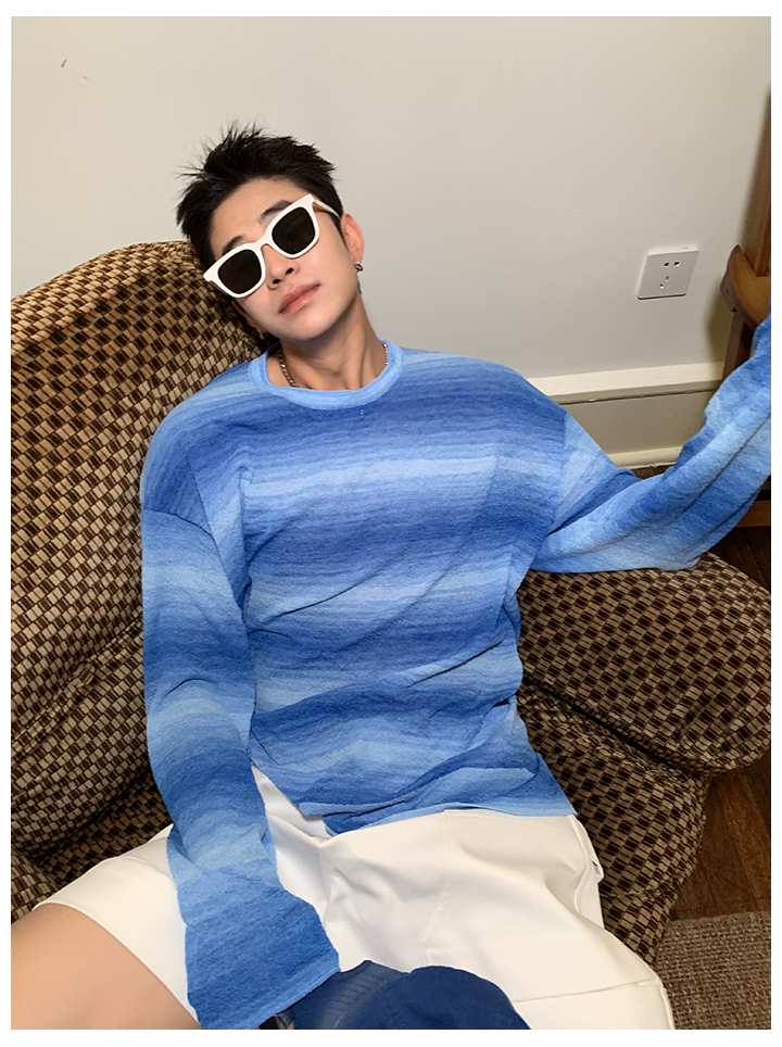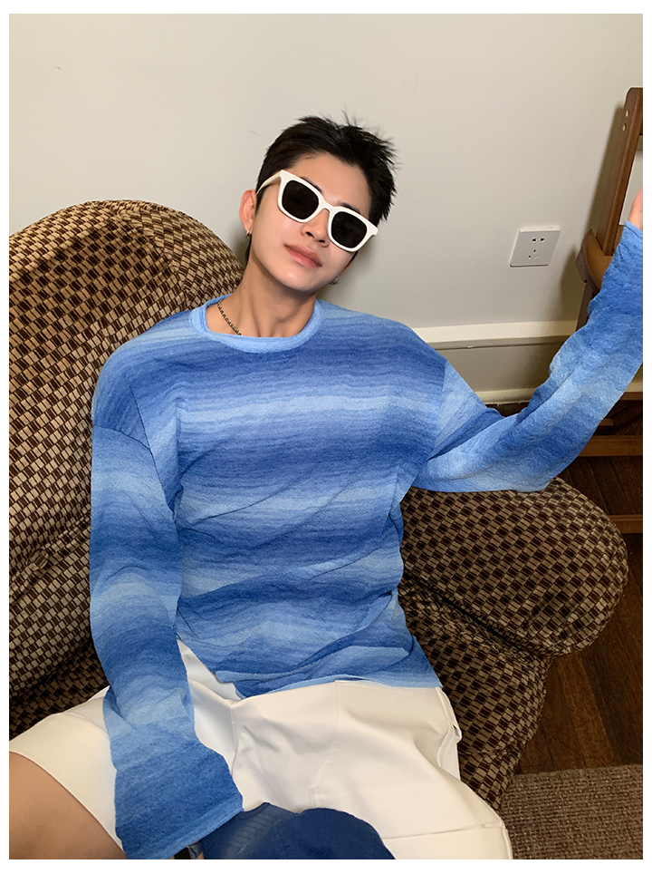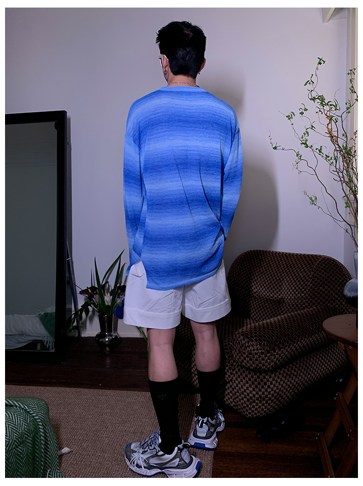 ESC MAN STUDIO/自制 夏季新品 高級感漸層紋理休閒長袖T恤上衣