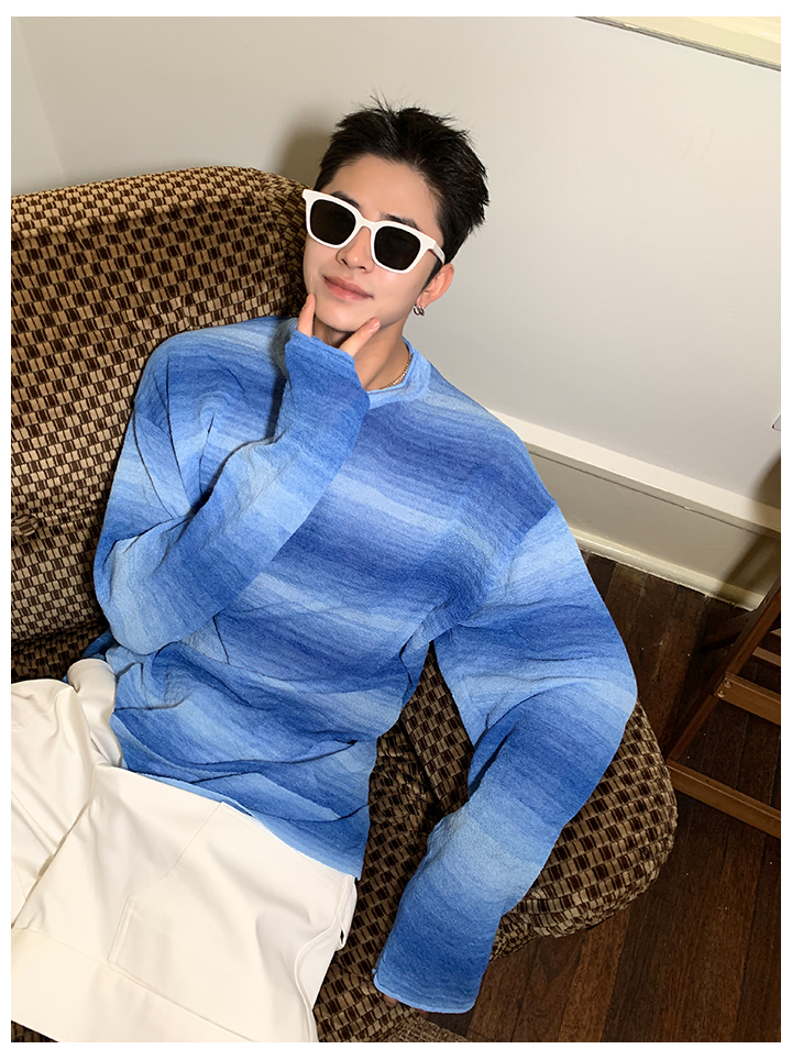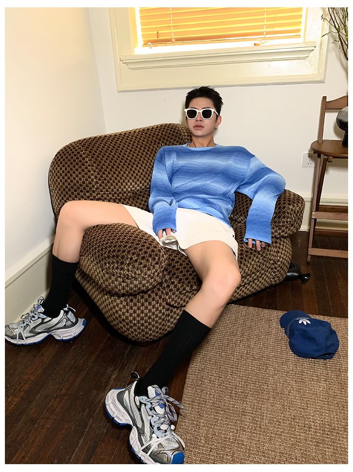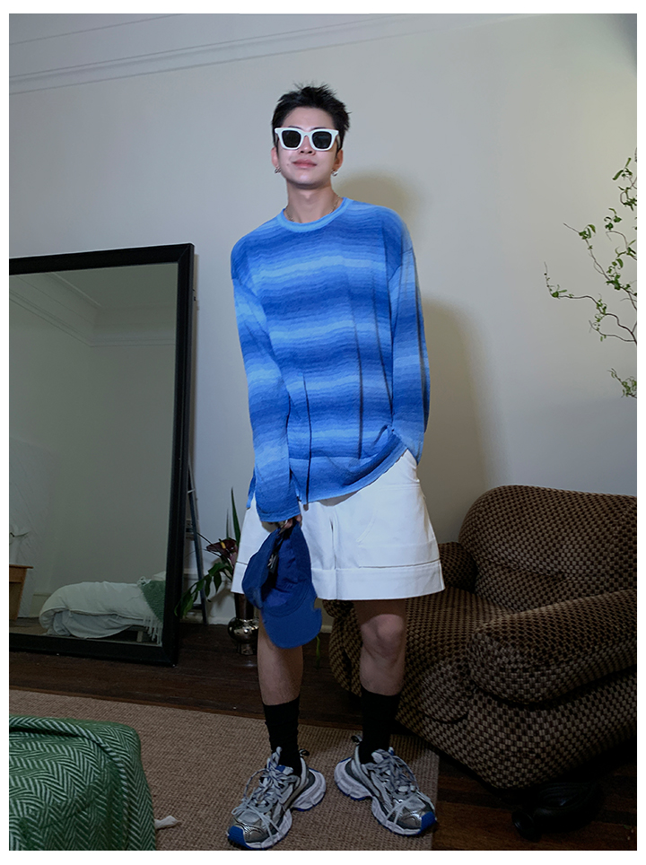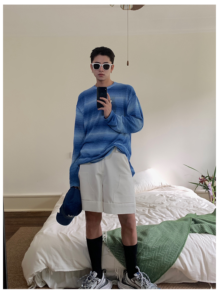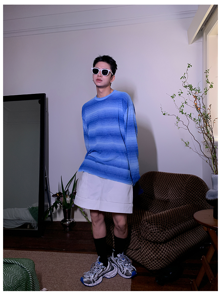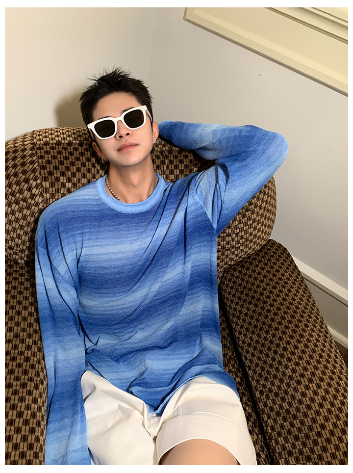 ESC MAN STUDIO/自制 夏季新品 高級感漸層紋理休閒長袖T恤上衣