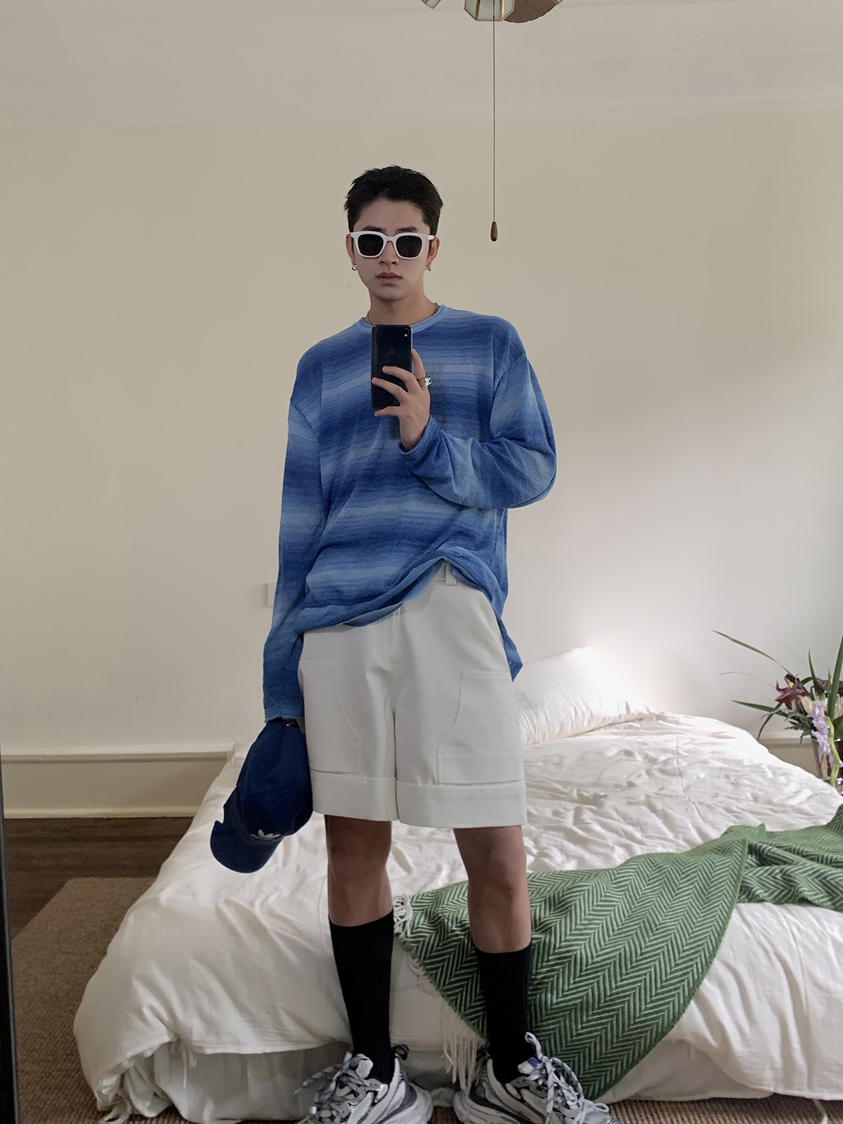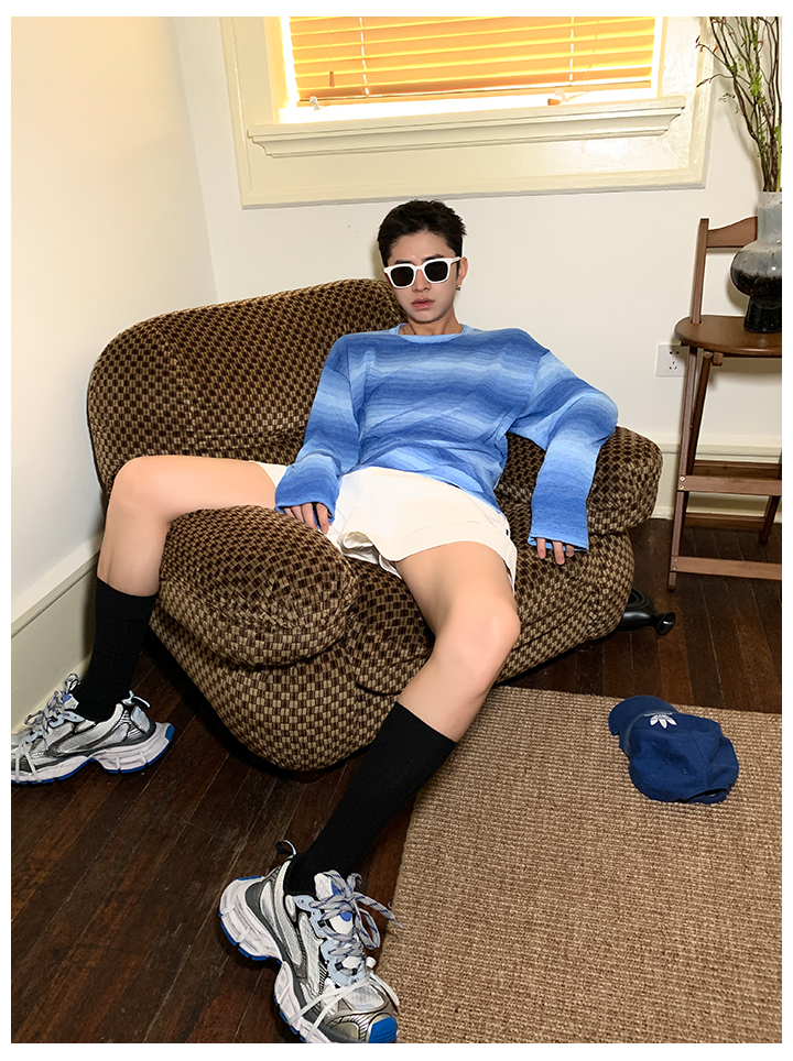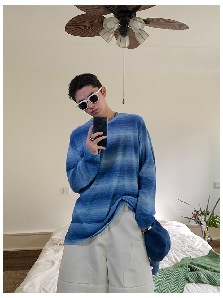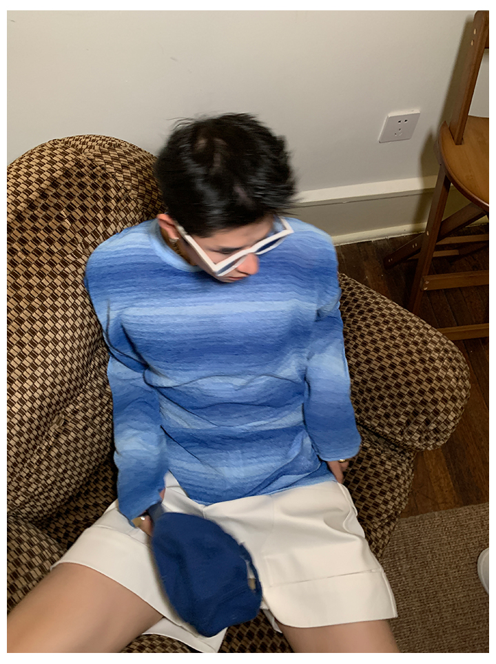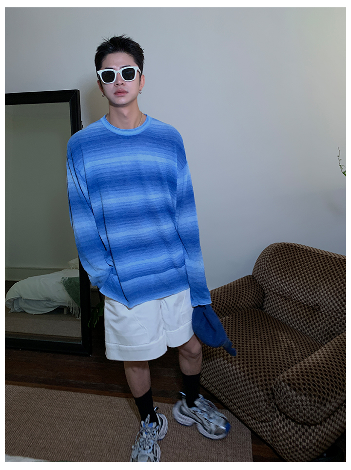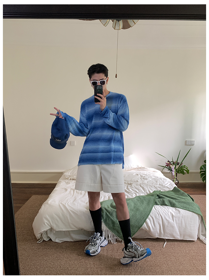 ESC MAN STUDIO/自制 夏季新品 高級感漸層紋理休閒長袖T恤上衣