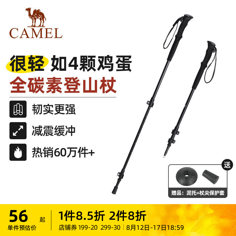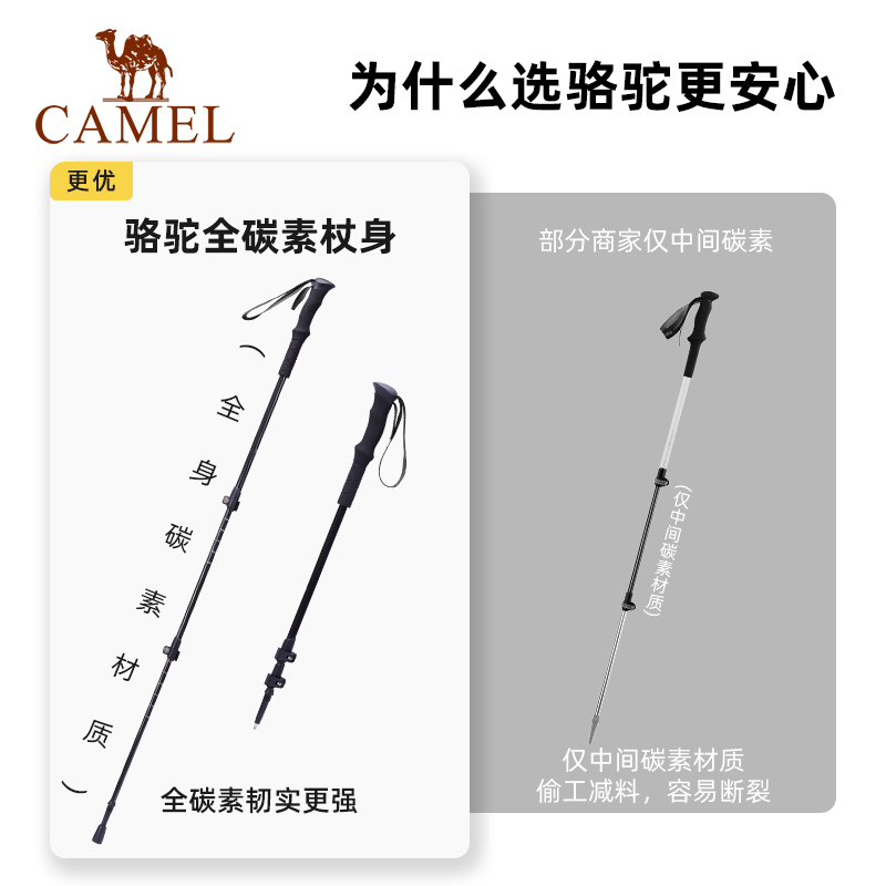 駱駝登山杖碳纖維徒步手杖摺疊戶外爬山登山裝備碳素輕便伸男女款
