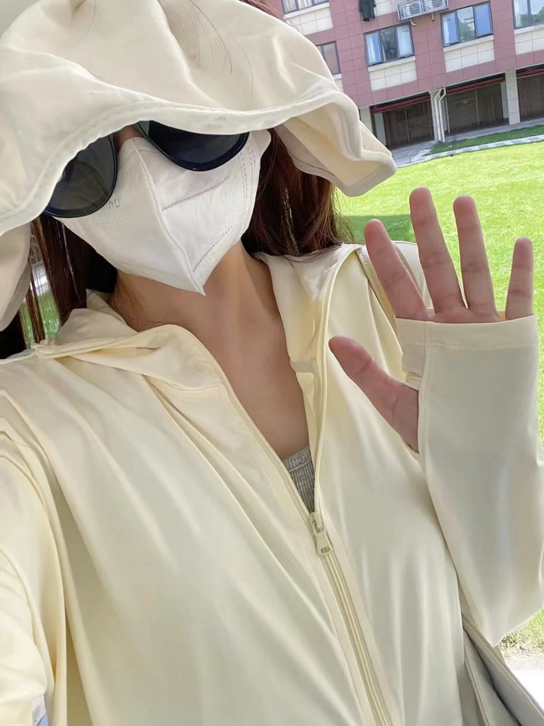 商場倒閉清倉黃色冰絲連帽開衫防曬服女夏透氣休閒騎車遮陽防曬服