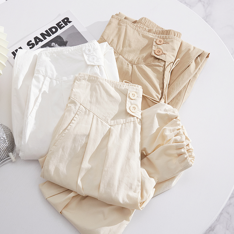 高腰棉麻褲女夏季薄款亞麻九分褲矮個子休閒寬鬆哈倫褲束腳羅蔔褲