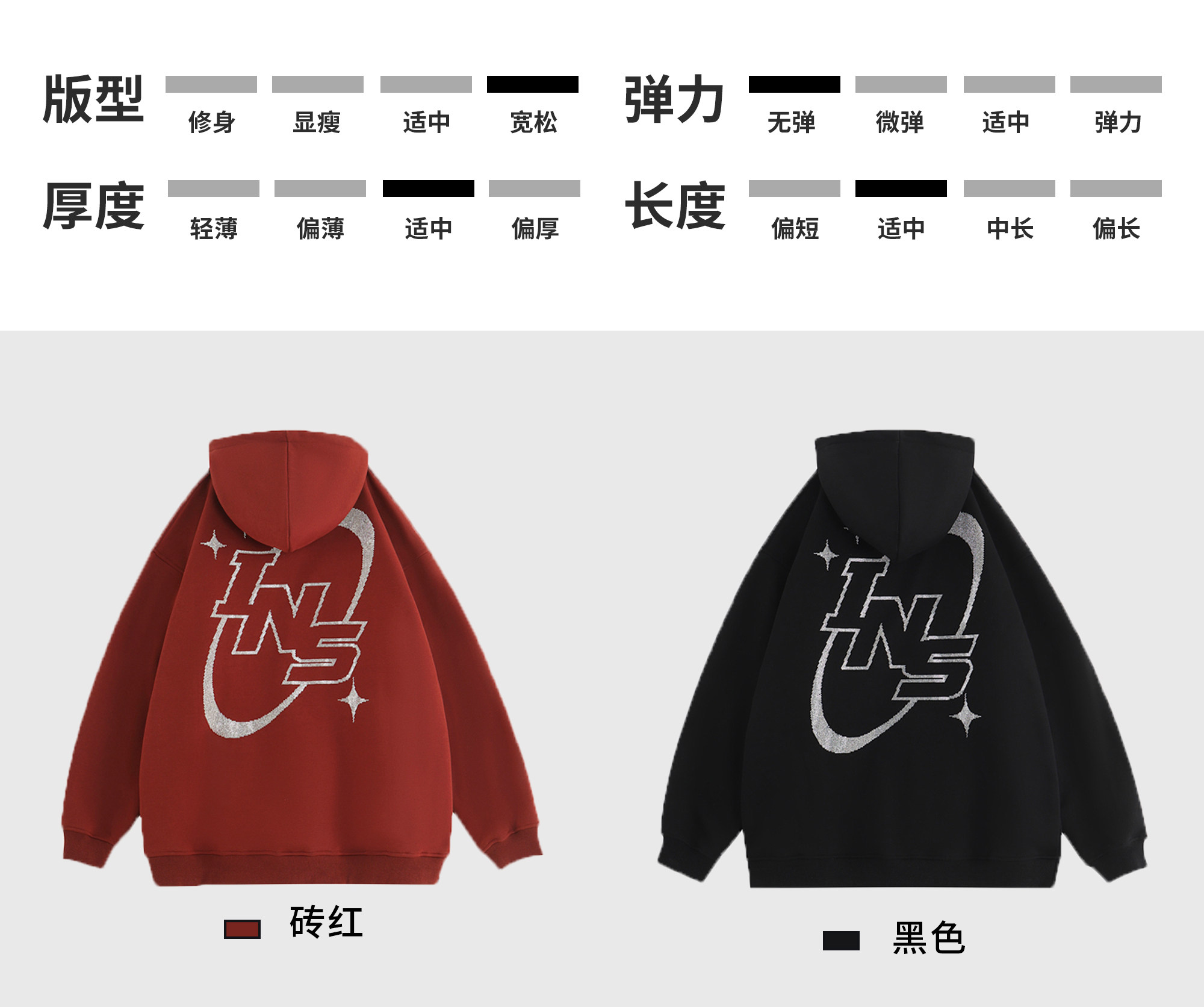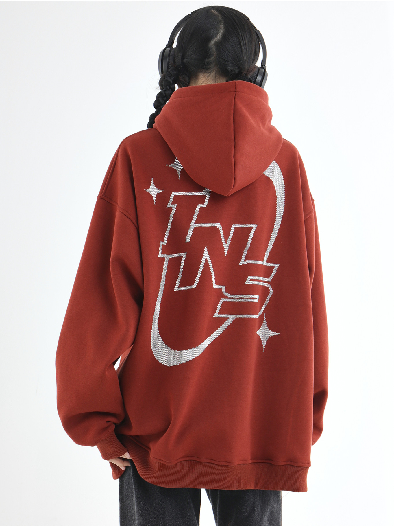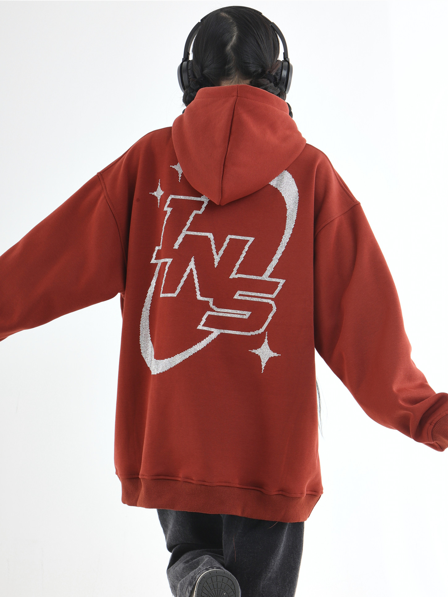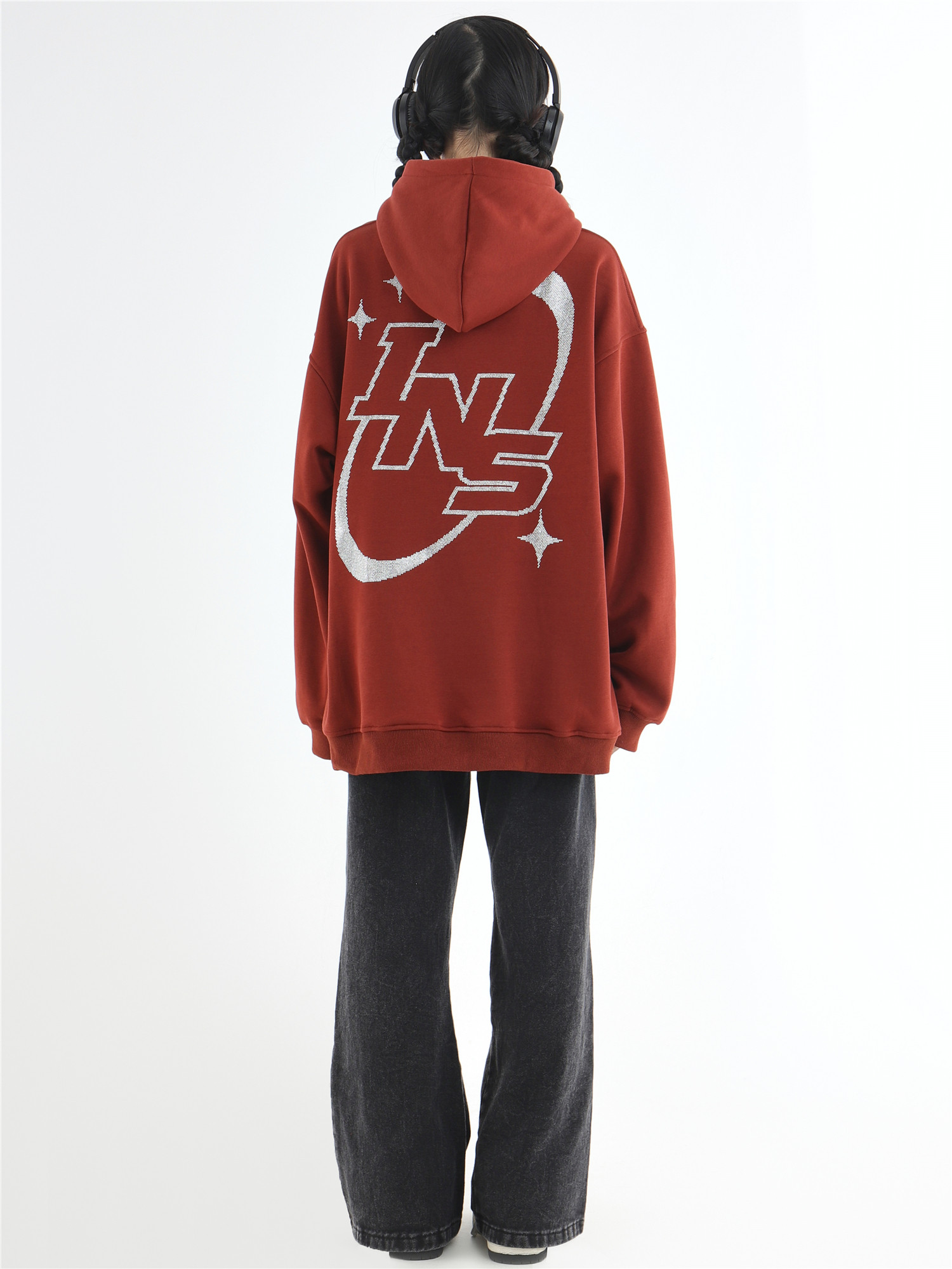 INSstudios 國潮牌情侶美式復古燙鑽星星LOGO衛衣寬鬆加絨連帽衫