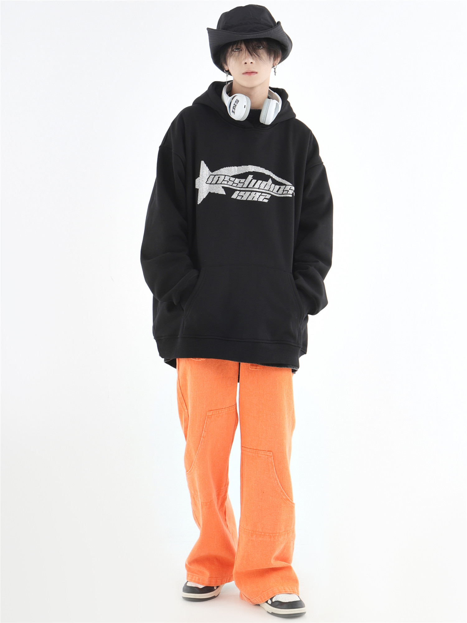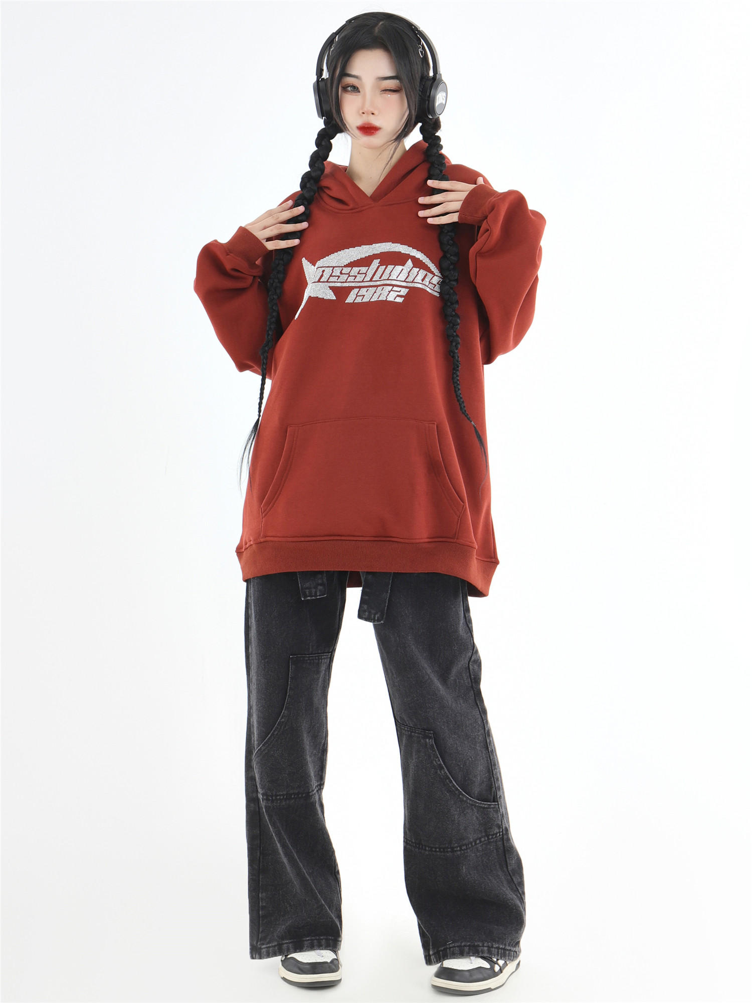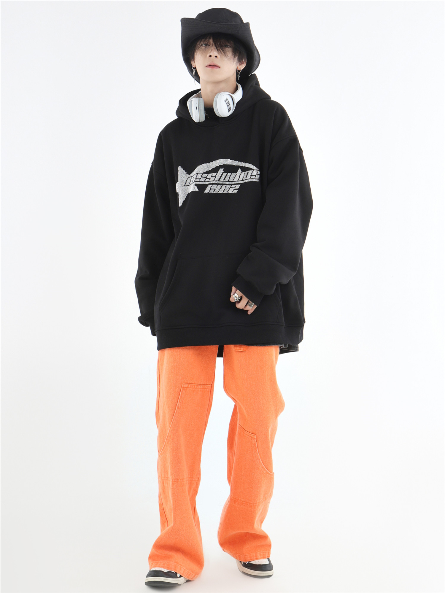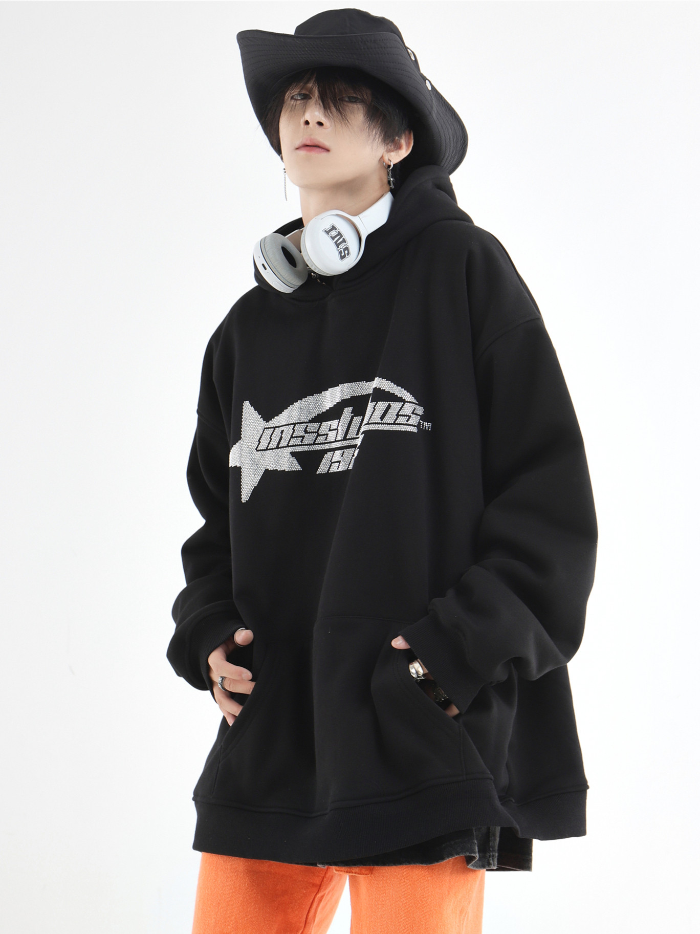 INSstudios 國潮牌情侶美式復古燙鑽星星LOGO衛衣寬鬆加絨連帽衫