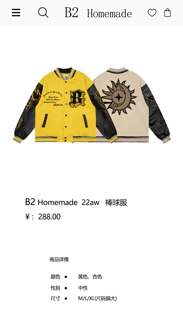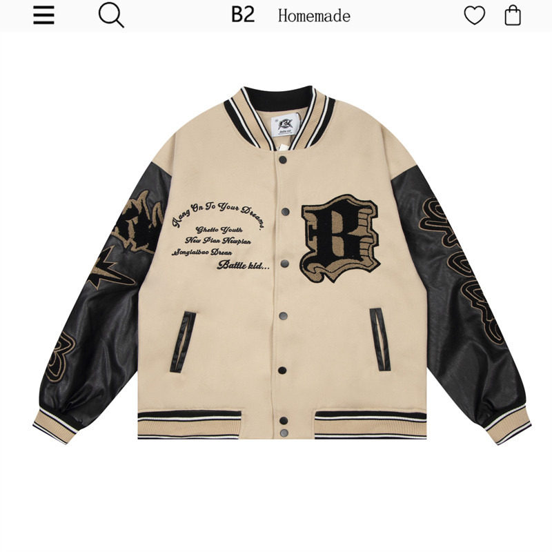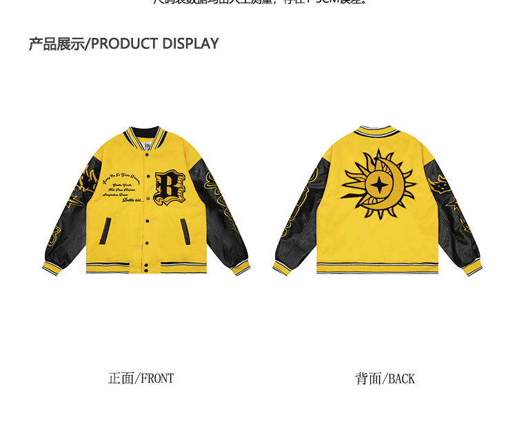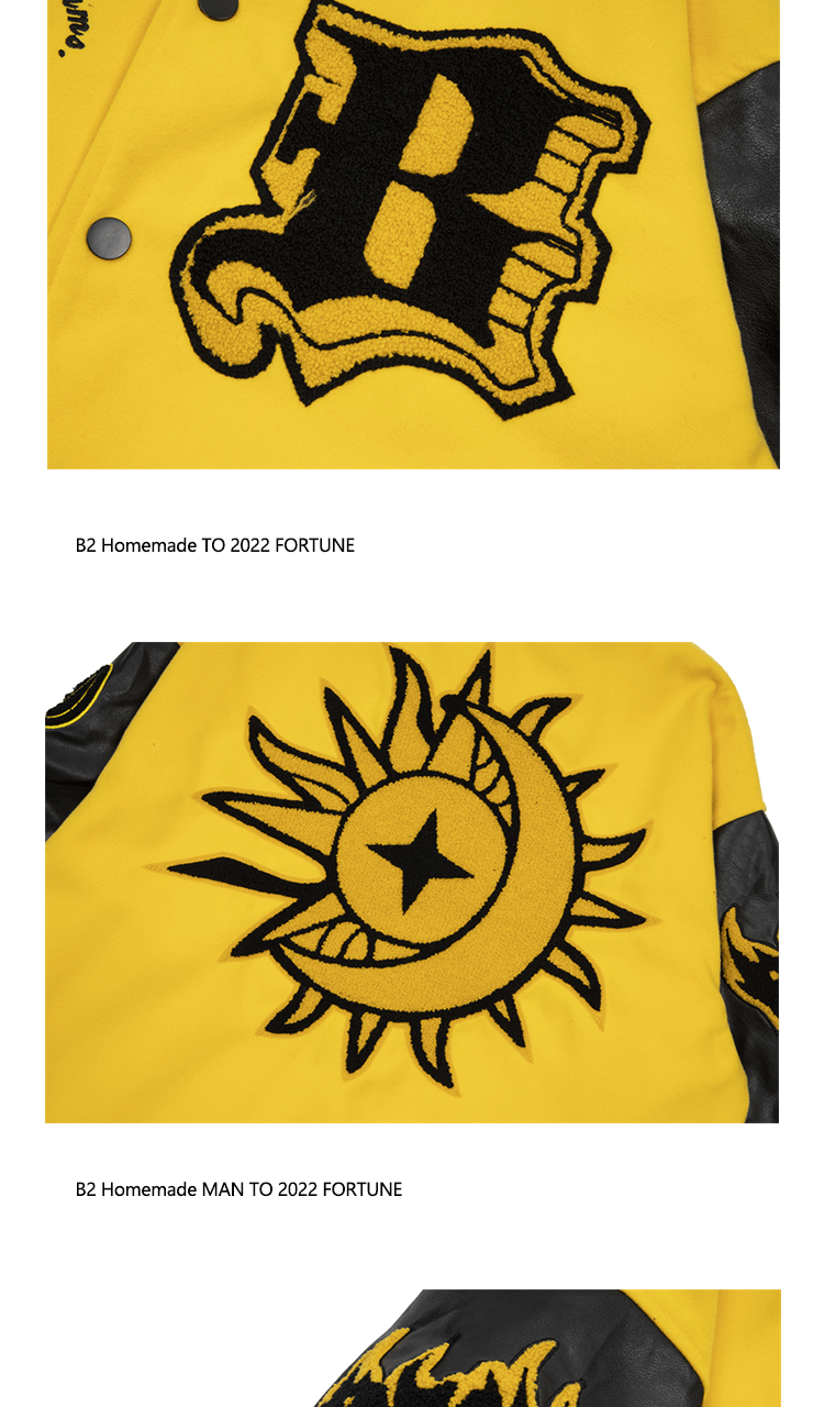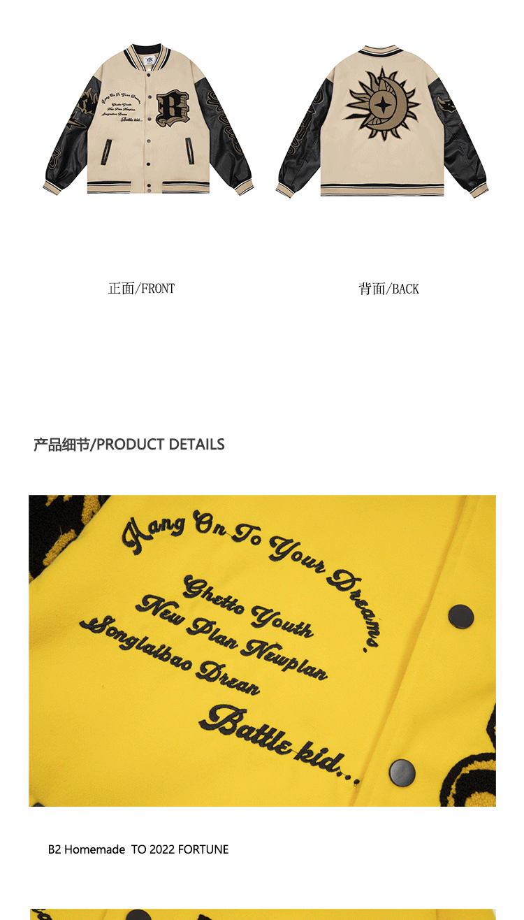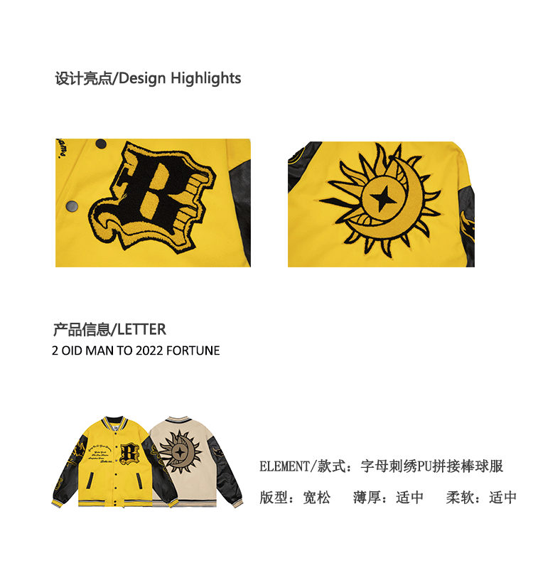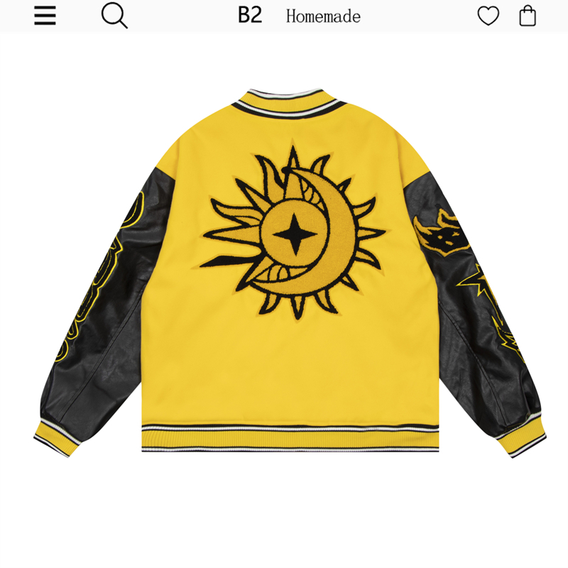 b2自制美式復古火焰元素字母黃色棒球服男女國潮街頭情侶夾克外套