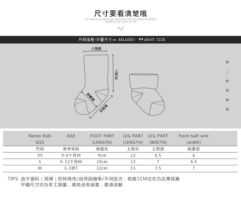 童袜尺码 xs码0-6个月,s码6-12个月,m码1-3岁