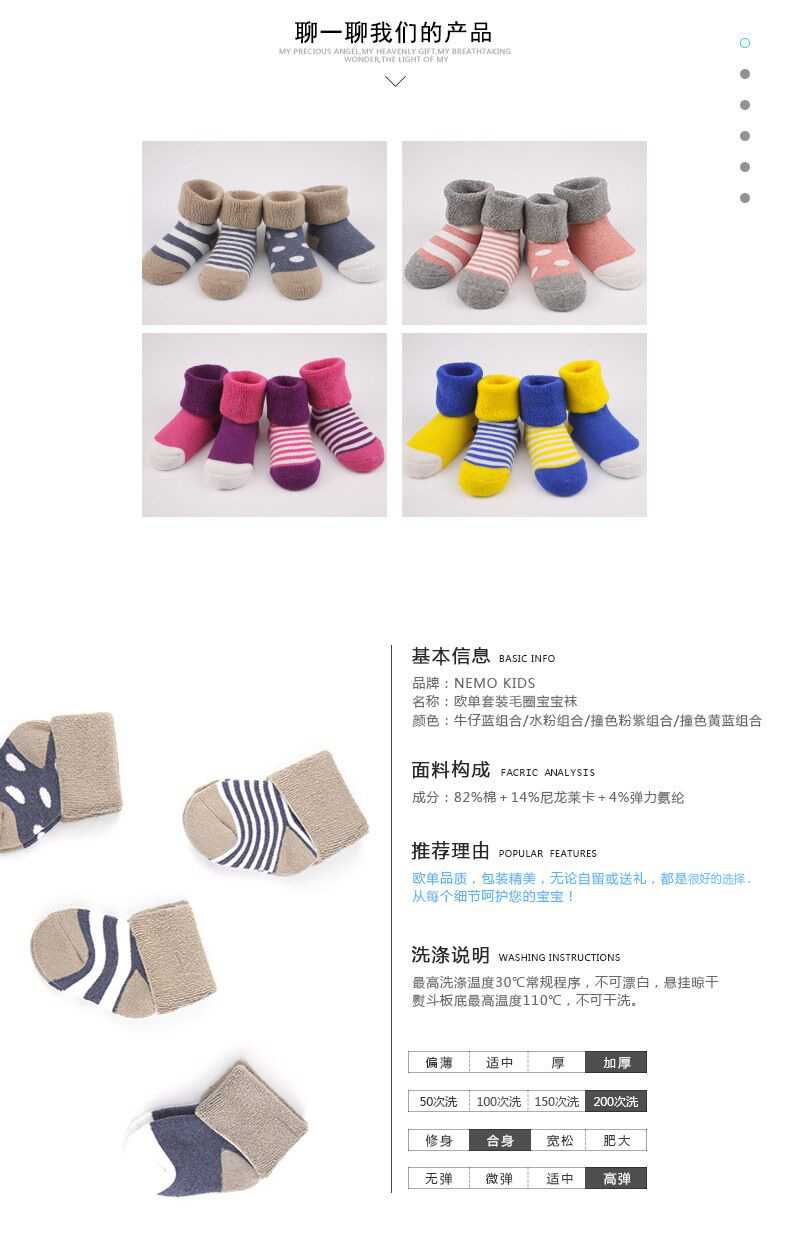 欧单精梳棉套装宝宝毛圈袜 无骨缝冬季保暖加厚婴儿袜