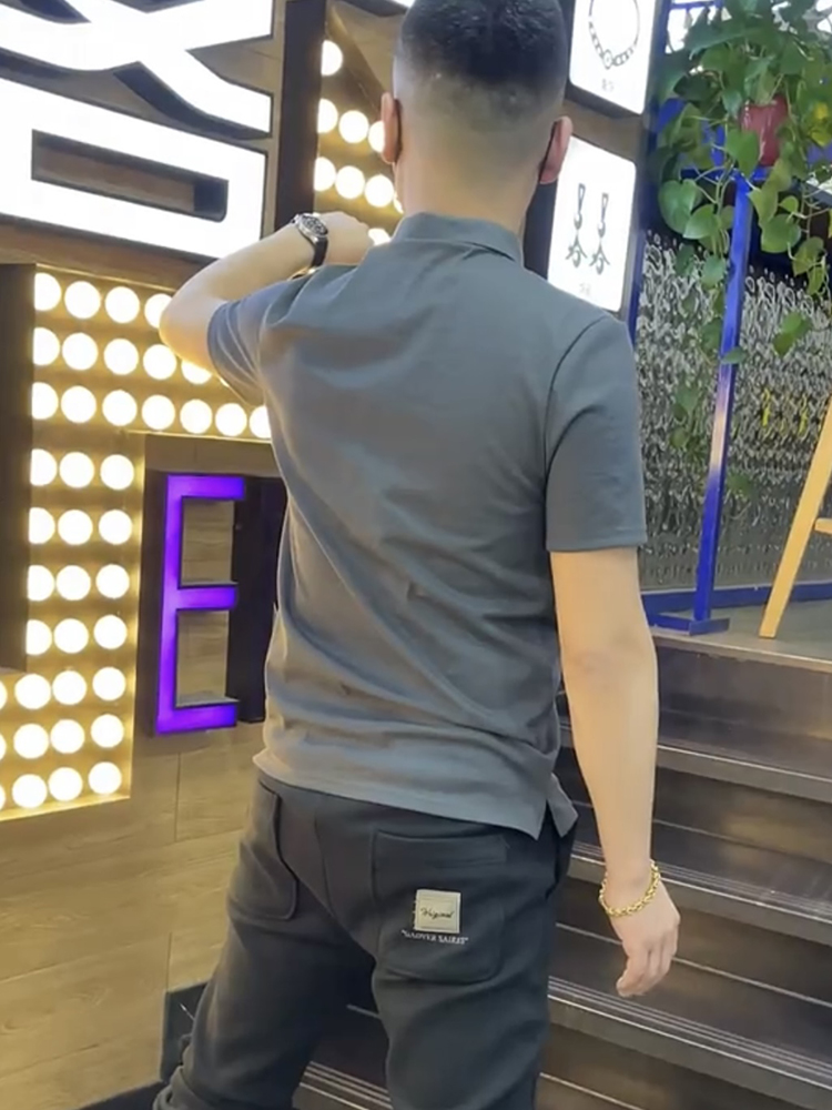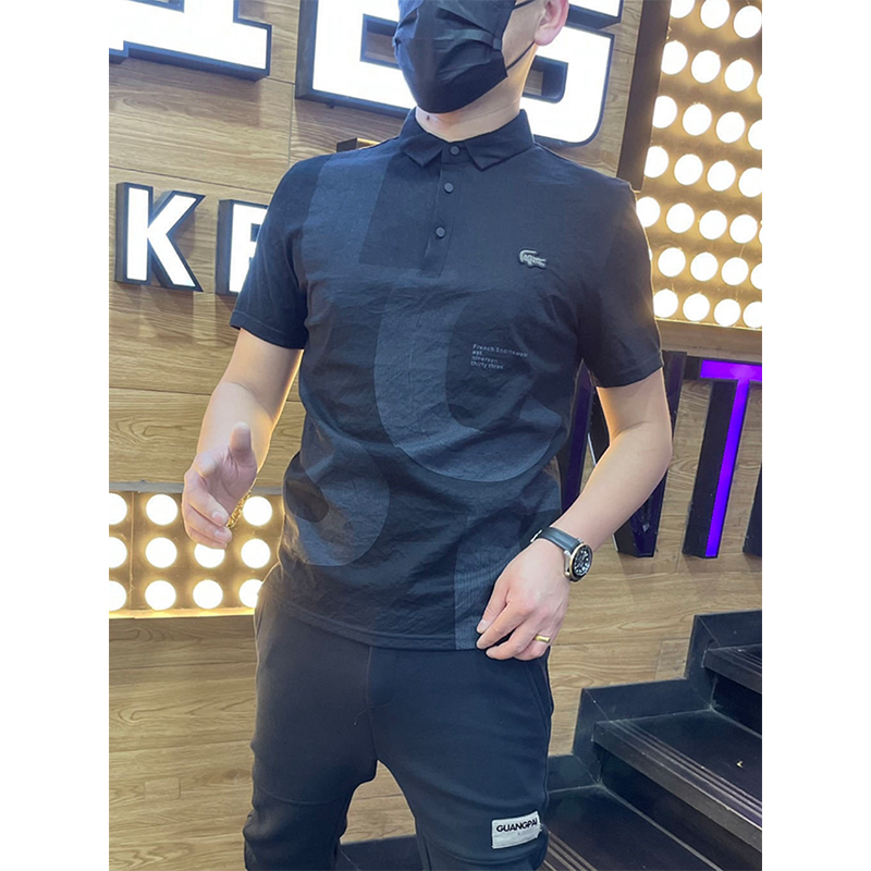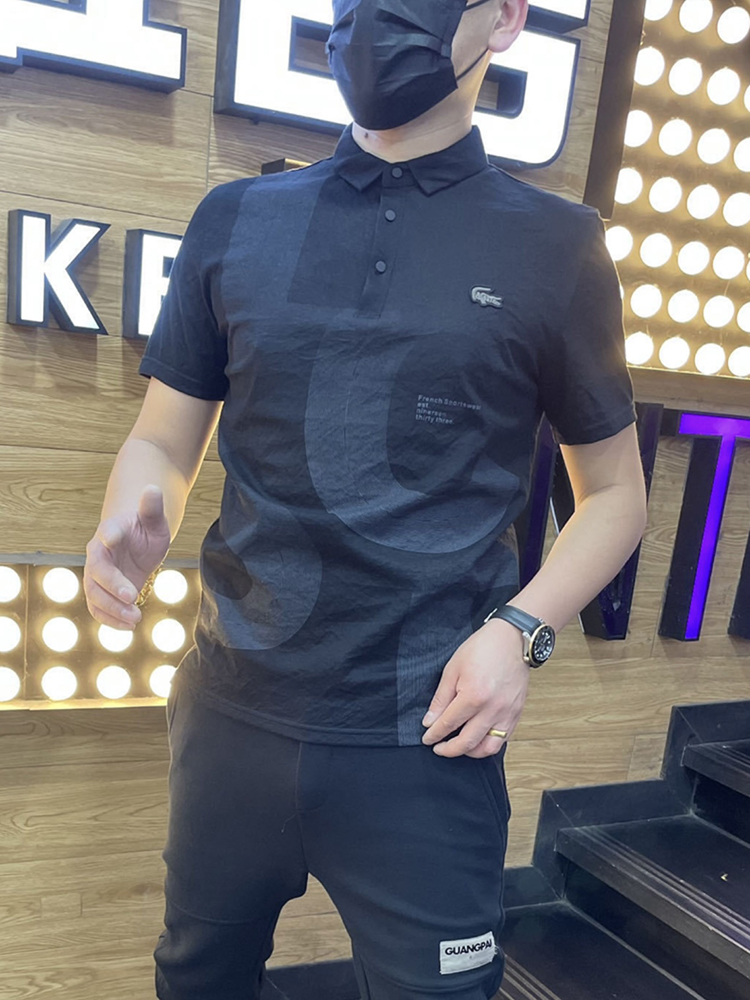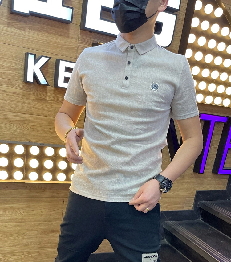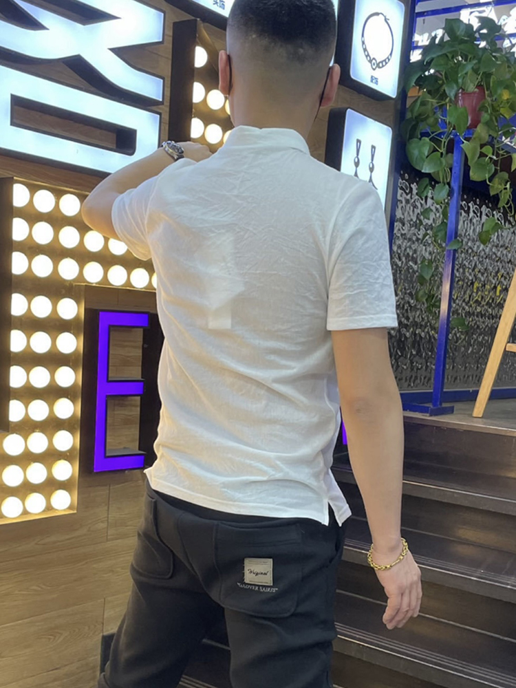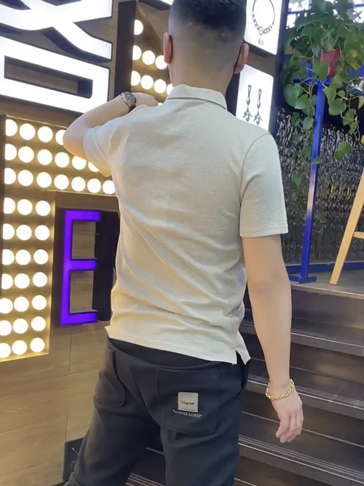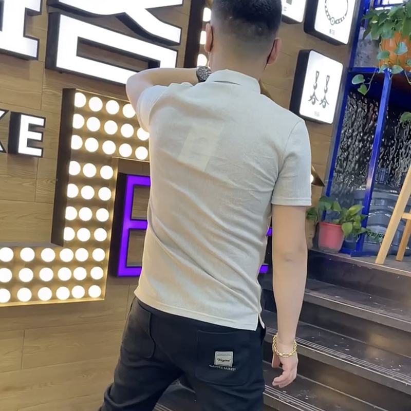 棉麻polo衫男士夏季新款潮流翻領短袖t恤暗花字母百搭半袖上衣服