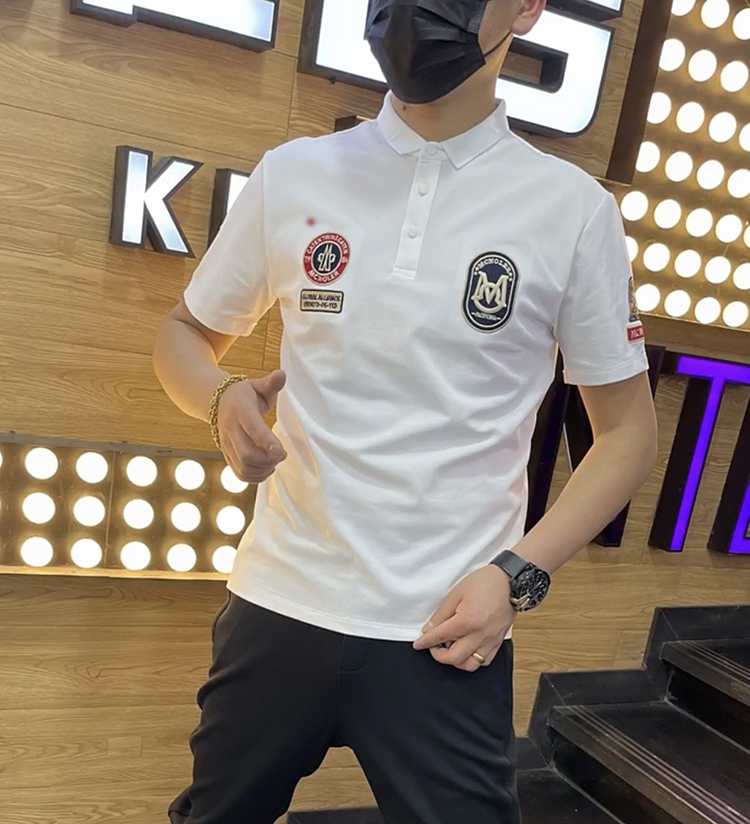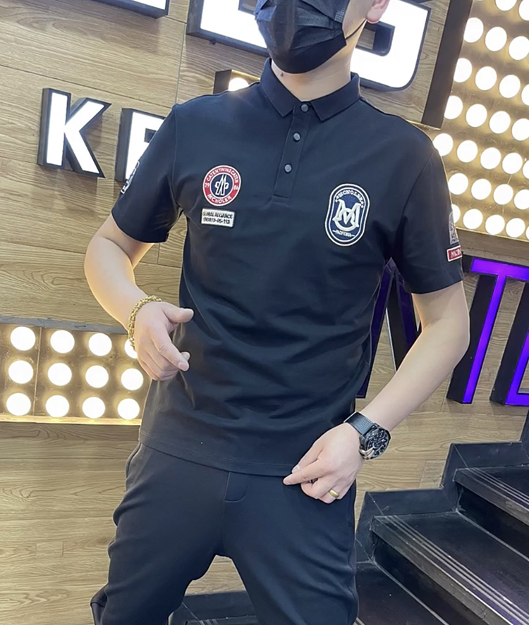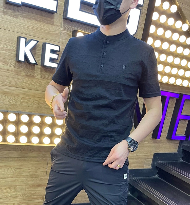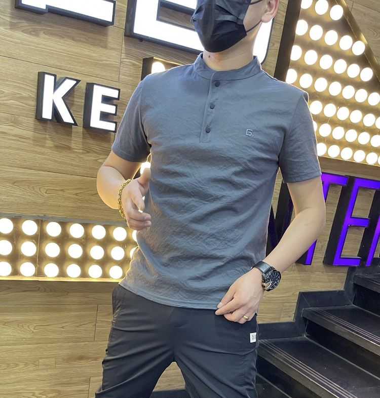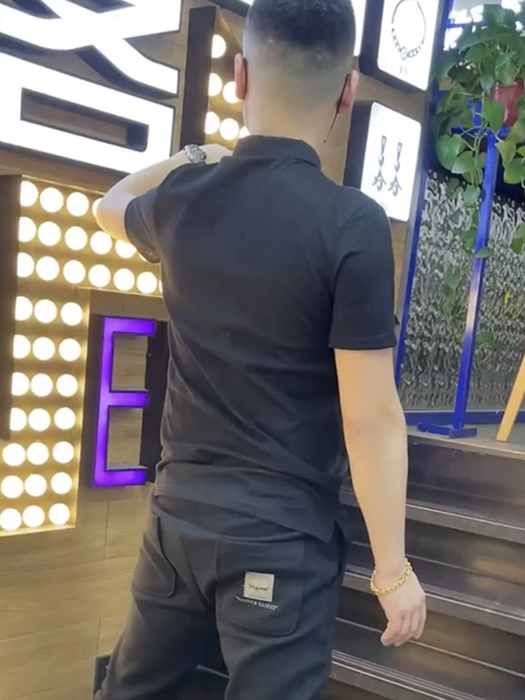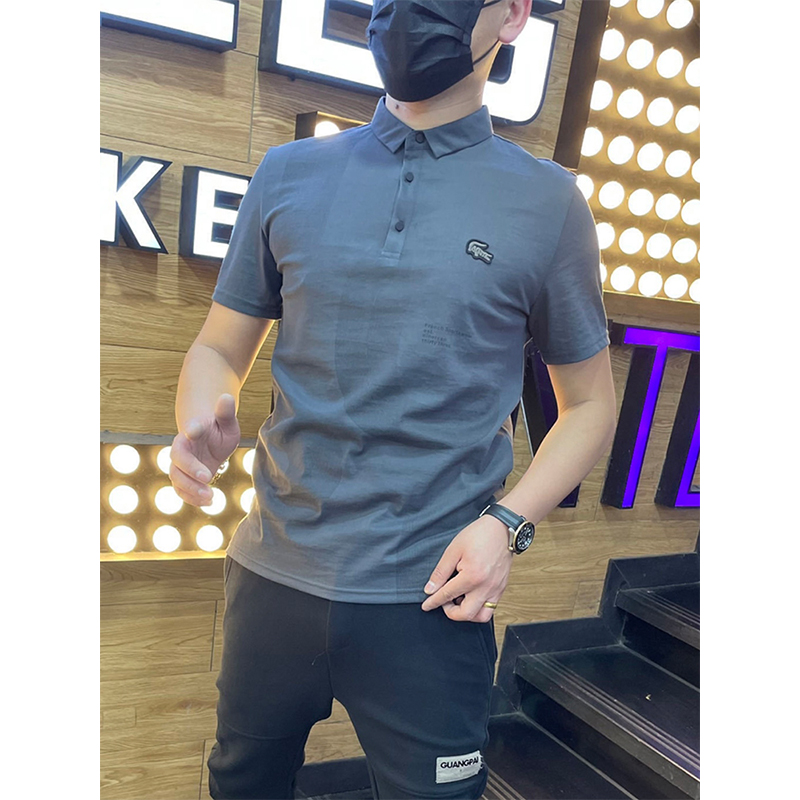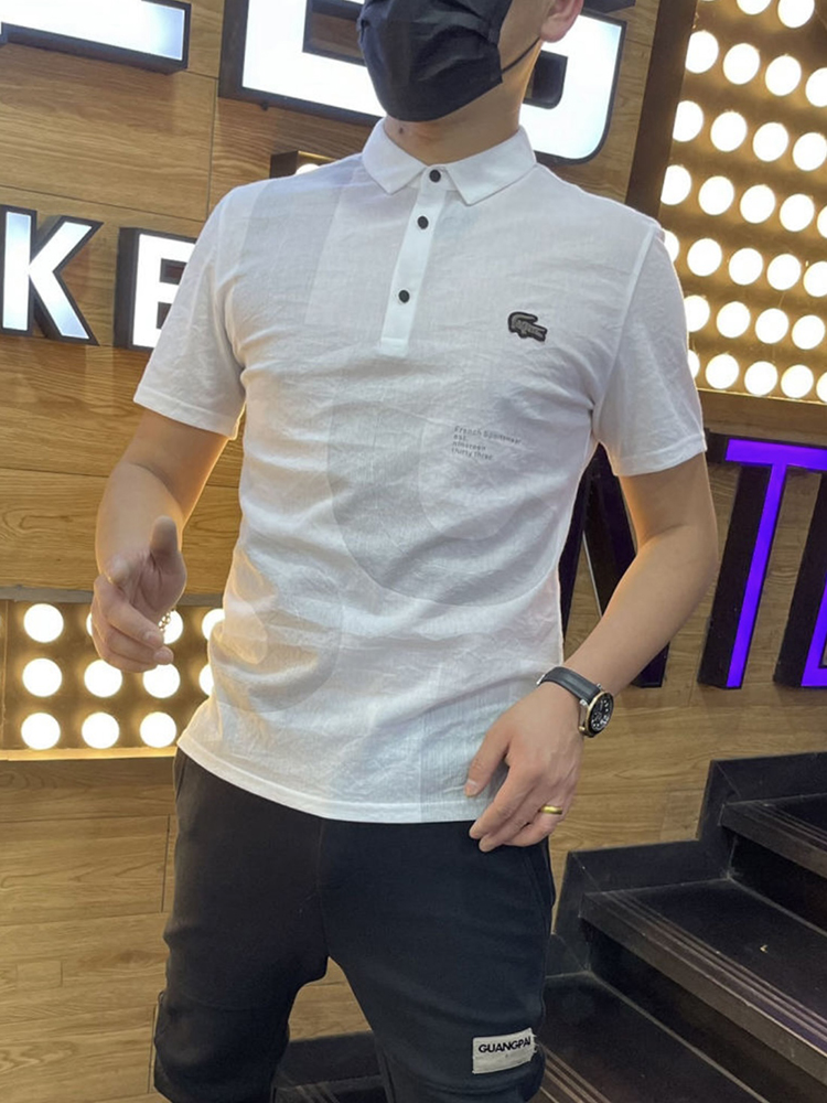 棉麻polo衫男士夏季新款潮流翻領短袖t恤暗花字母百搭半袖上衣服