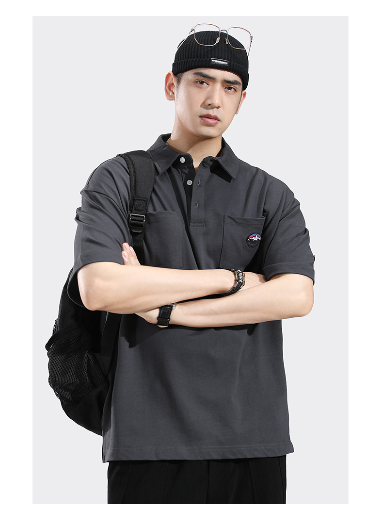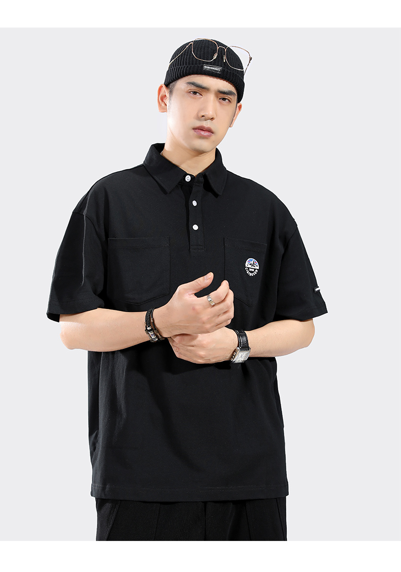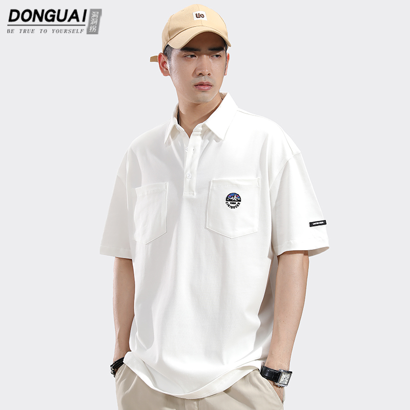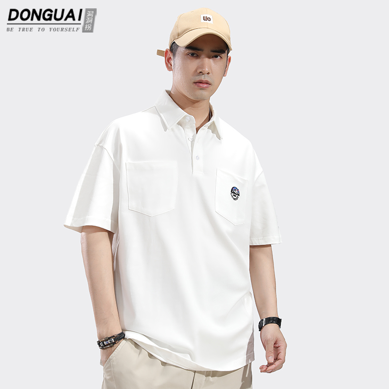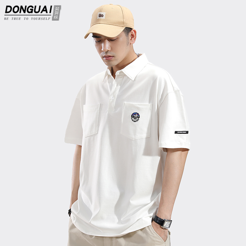 港風日系polo衫短袖T恤男士夏季純棉翻領半袖上衣服男款高端T恤