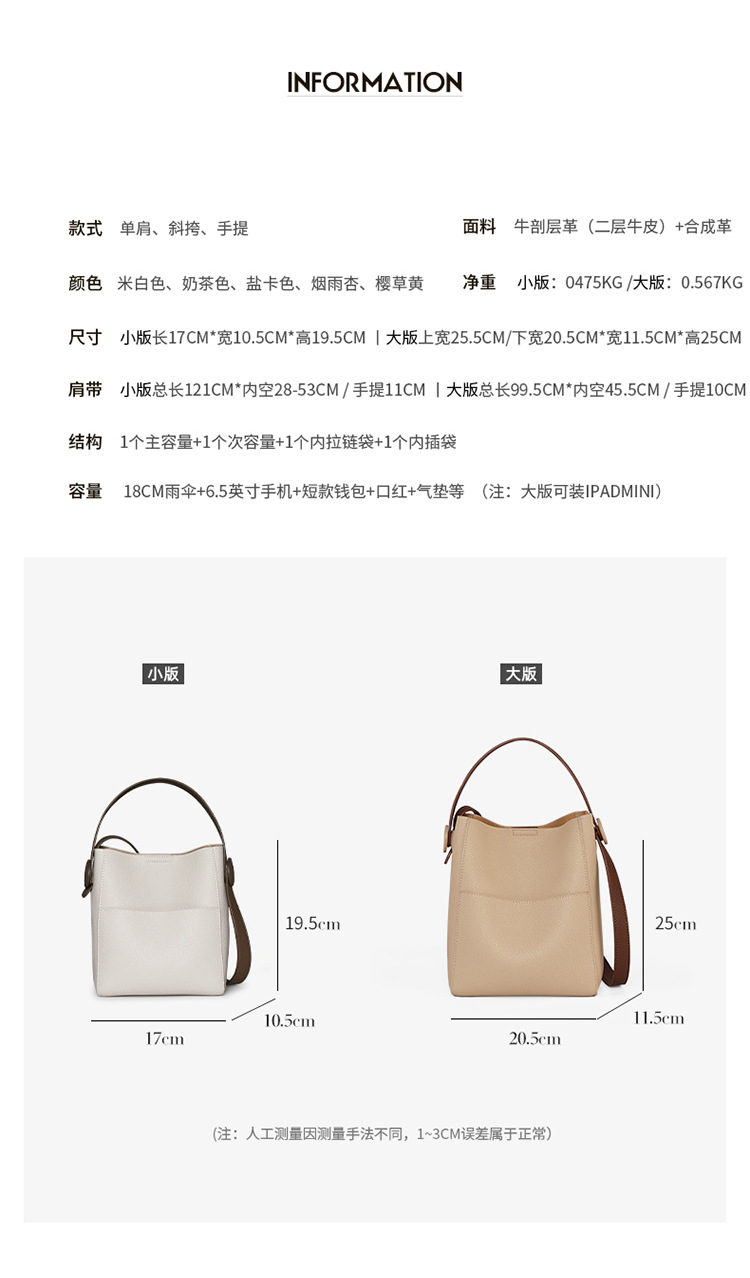 纳兰杜包包2024新款高级感手提包水桶包女斜挎包2022真皮女包单肩
