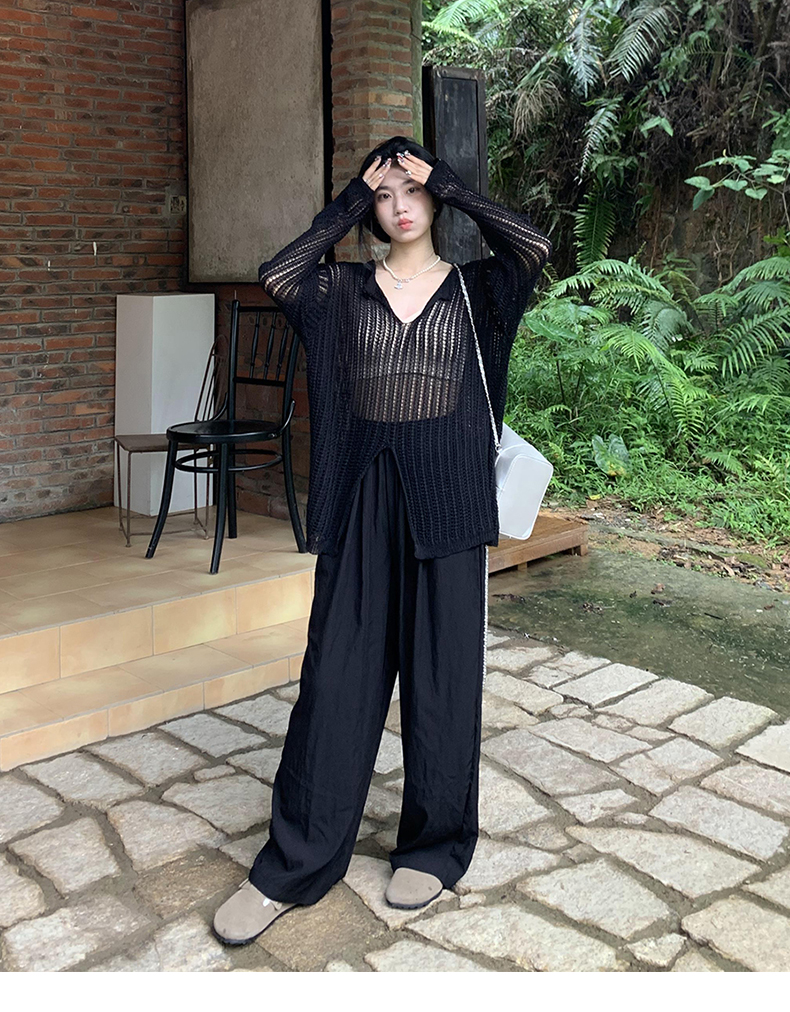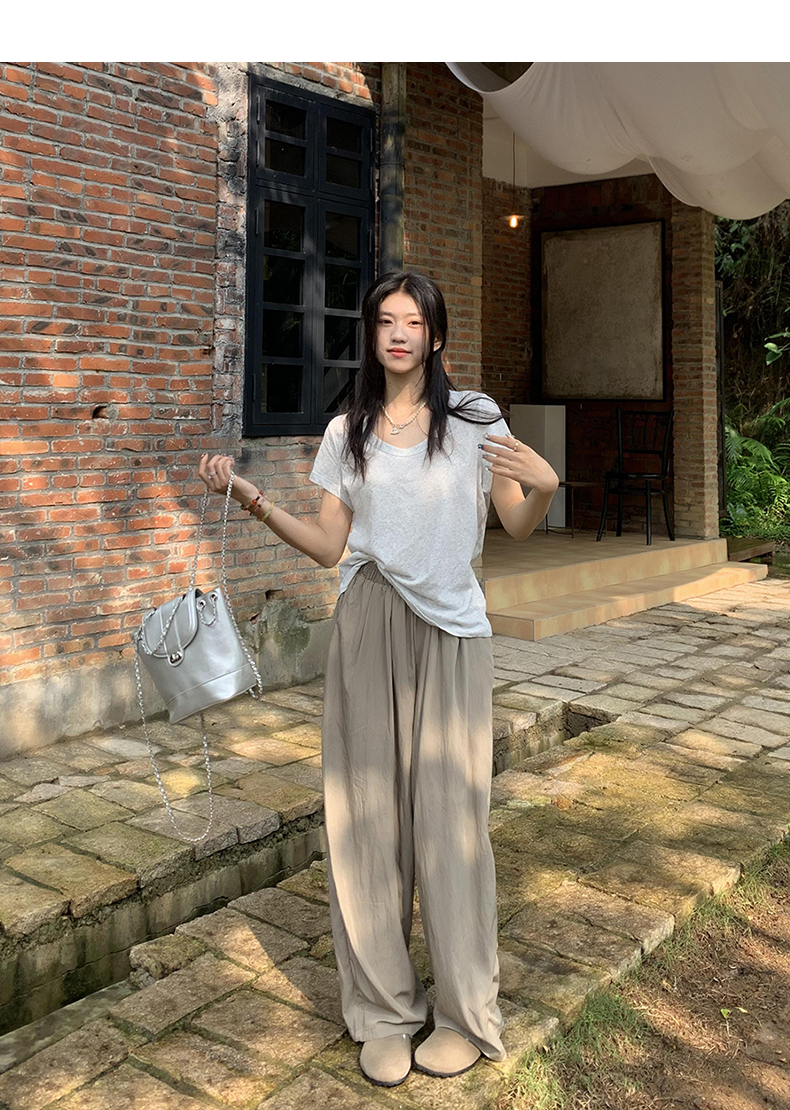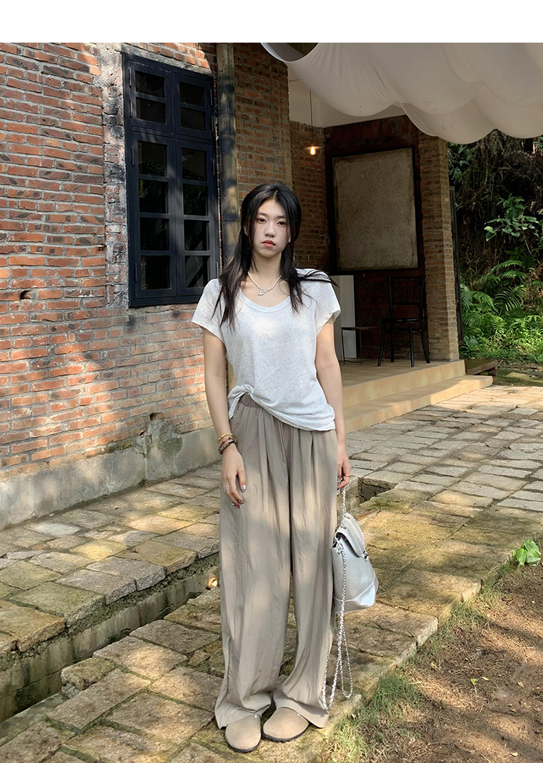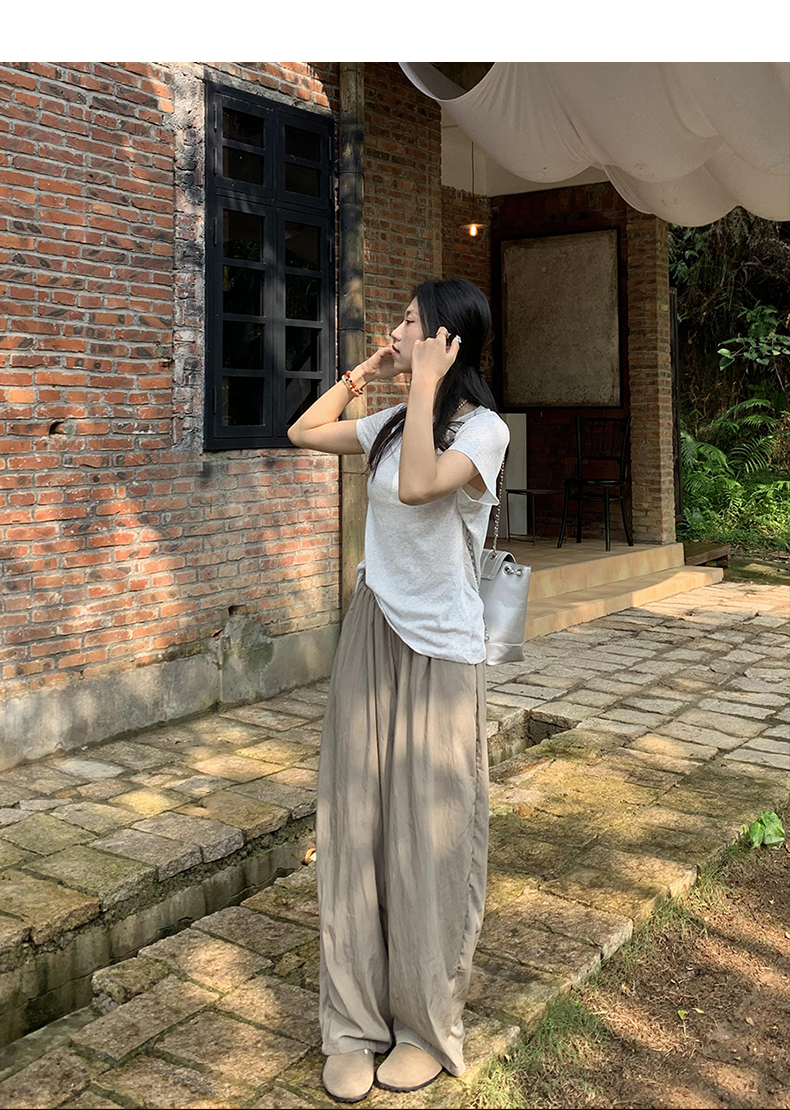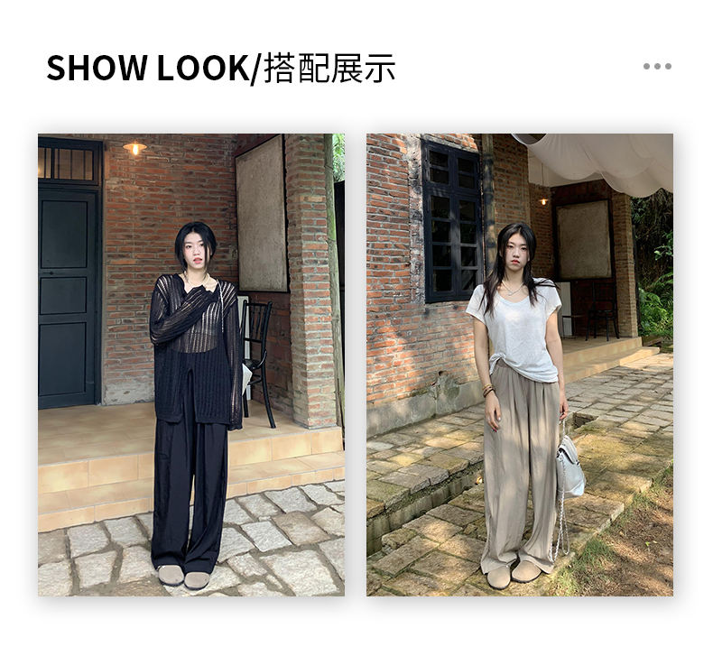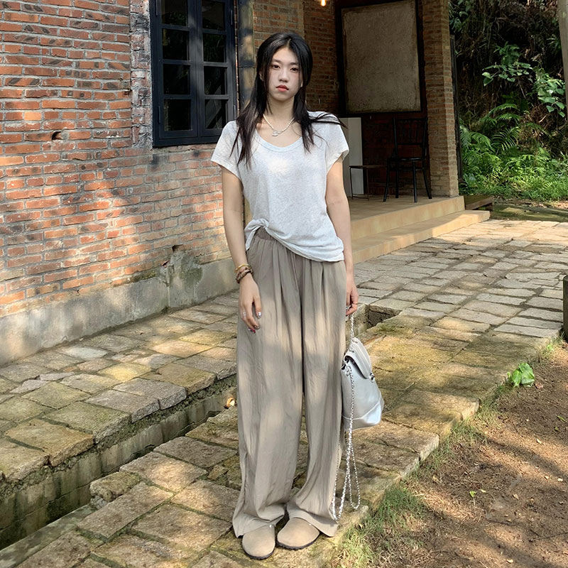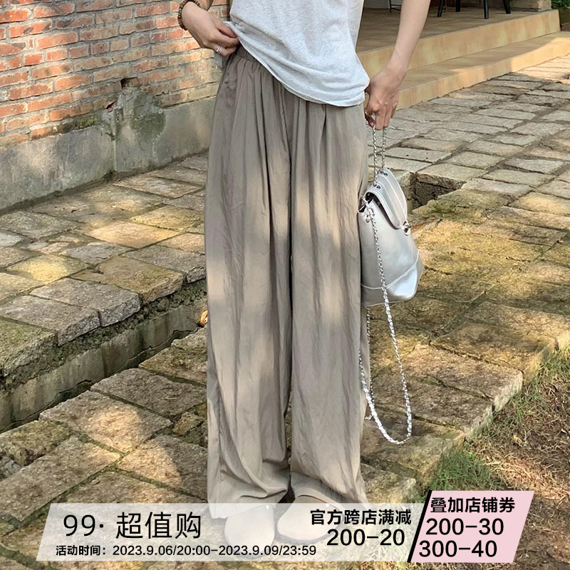 橘子樹在哪兒輕薄舒適慵懶風抖抖褲女夏季寬鬆褶皺鬆緊腰闊腿褲潮