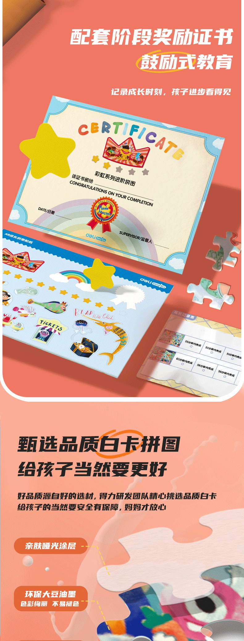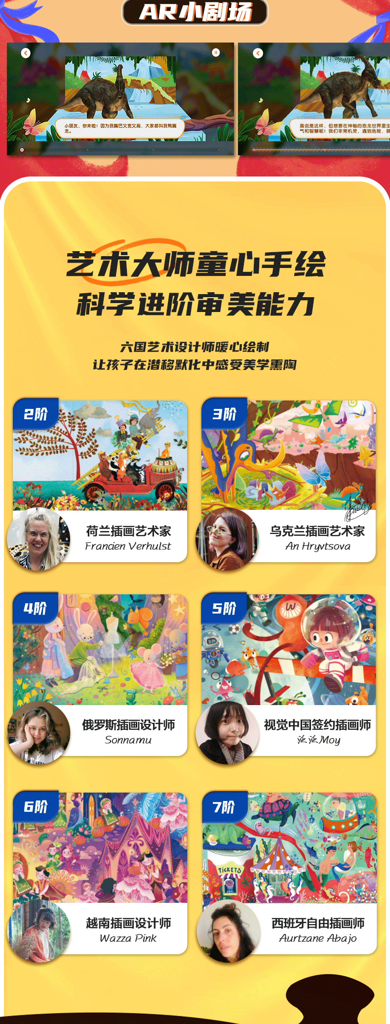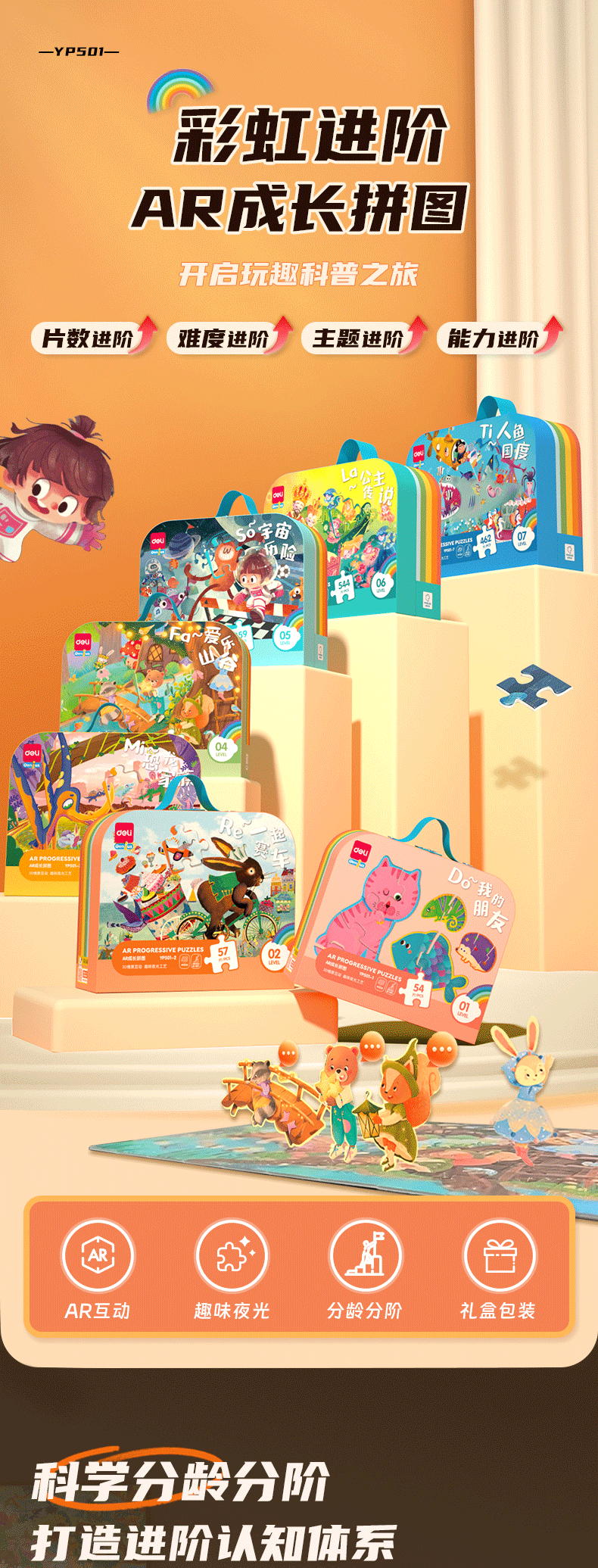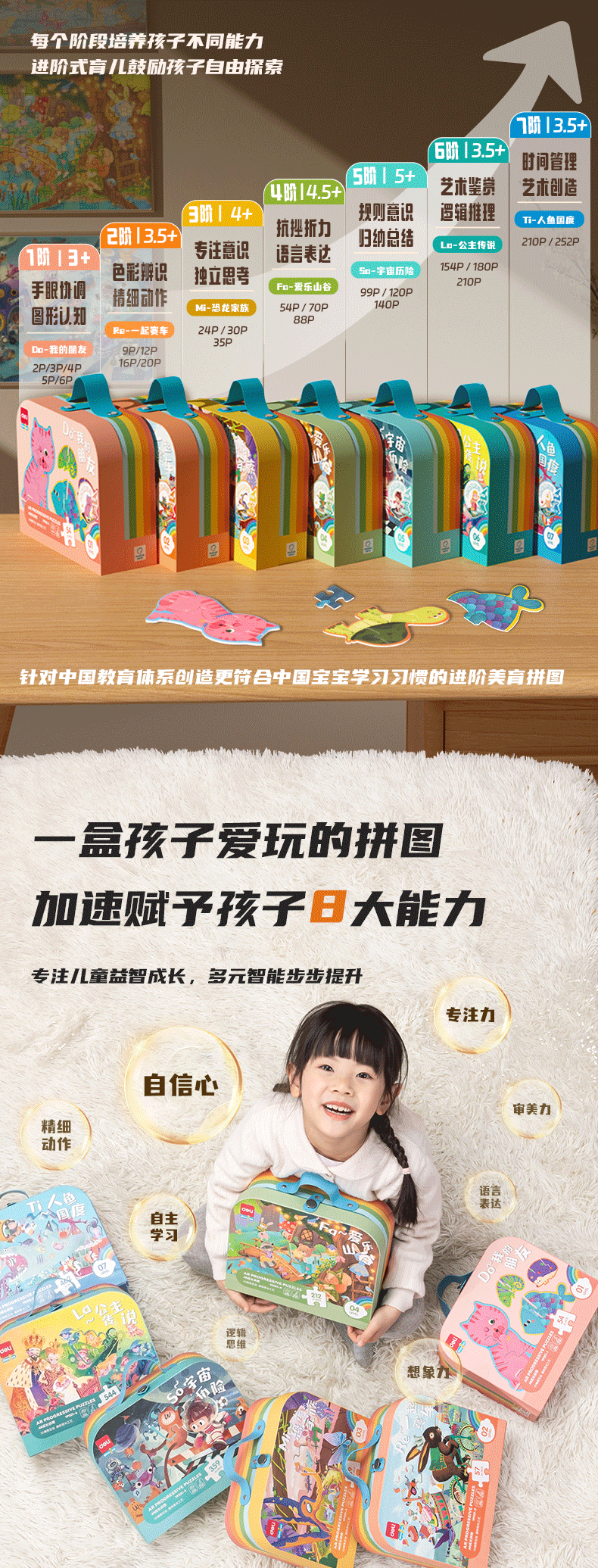 颜色 【1阶】我的朋友(建议3岁+ | 内含12副),【2阶】一起赛车(建议3.5岁+ | 内含4副),【3阶】恐龙家族(建议4岁+ | 内含4副),【4阶】爱乐山谷(建议4.5岁 + |内含3副),【5阶】宇宙历险(建议5岁 + |内含3副),【6阶】公主传说(建议5.5岁 + |内含3副)