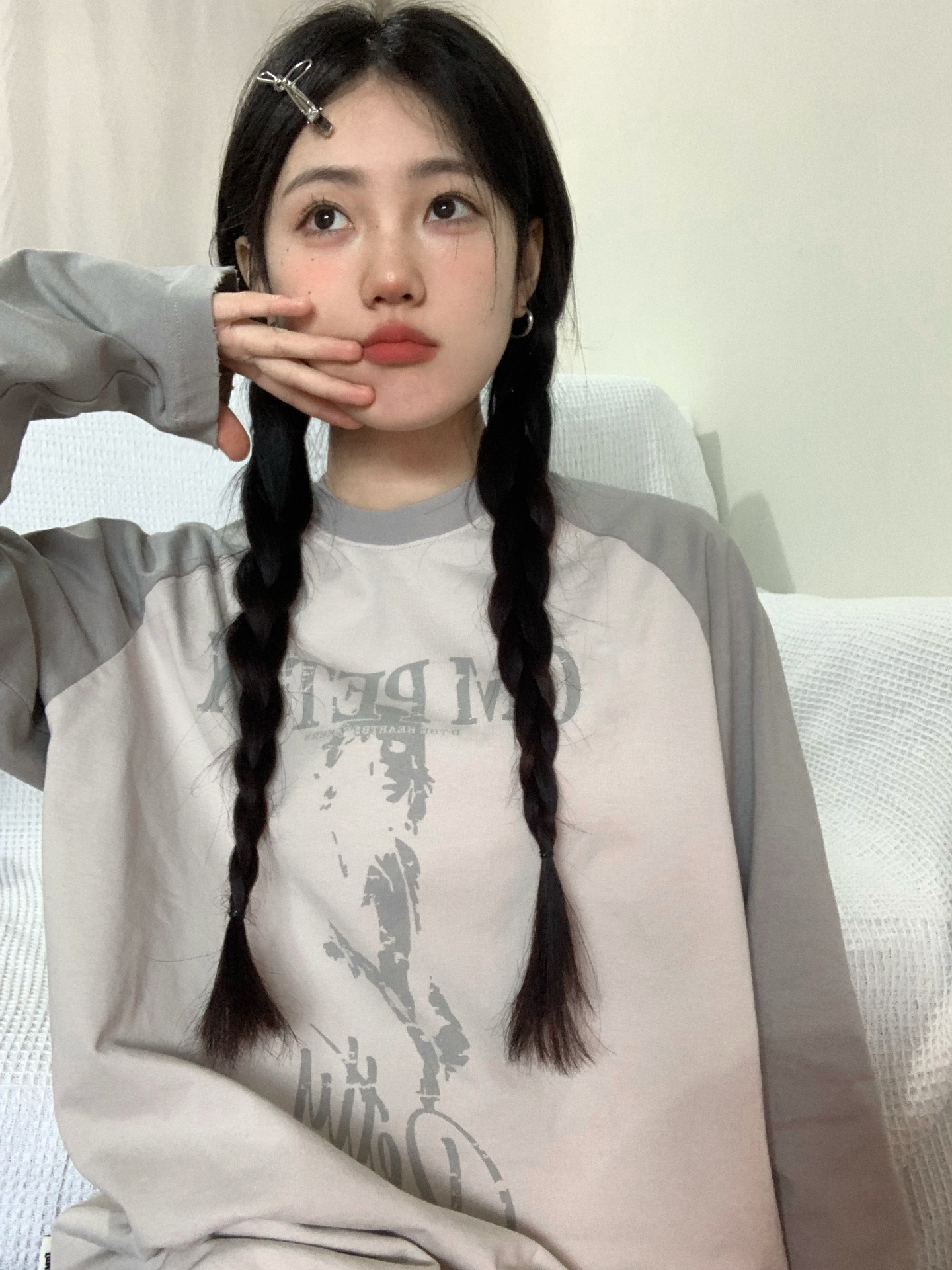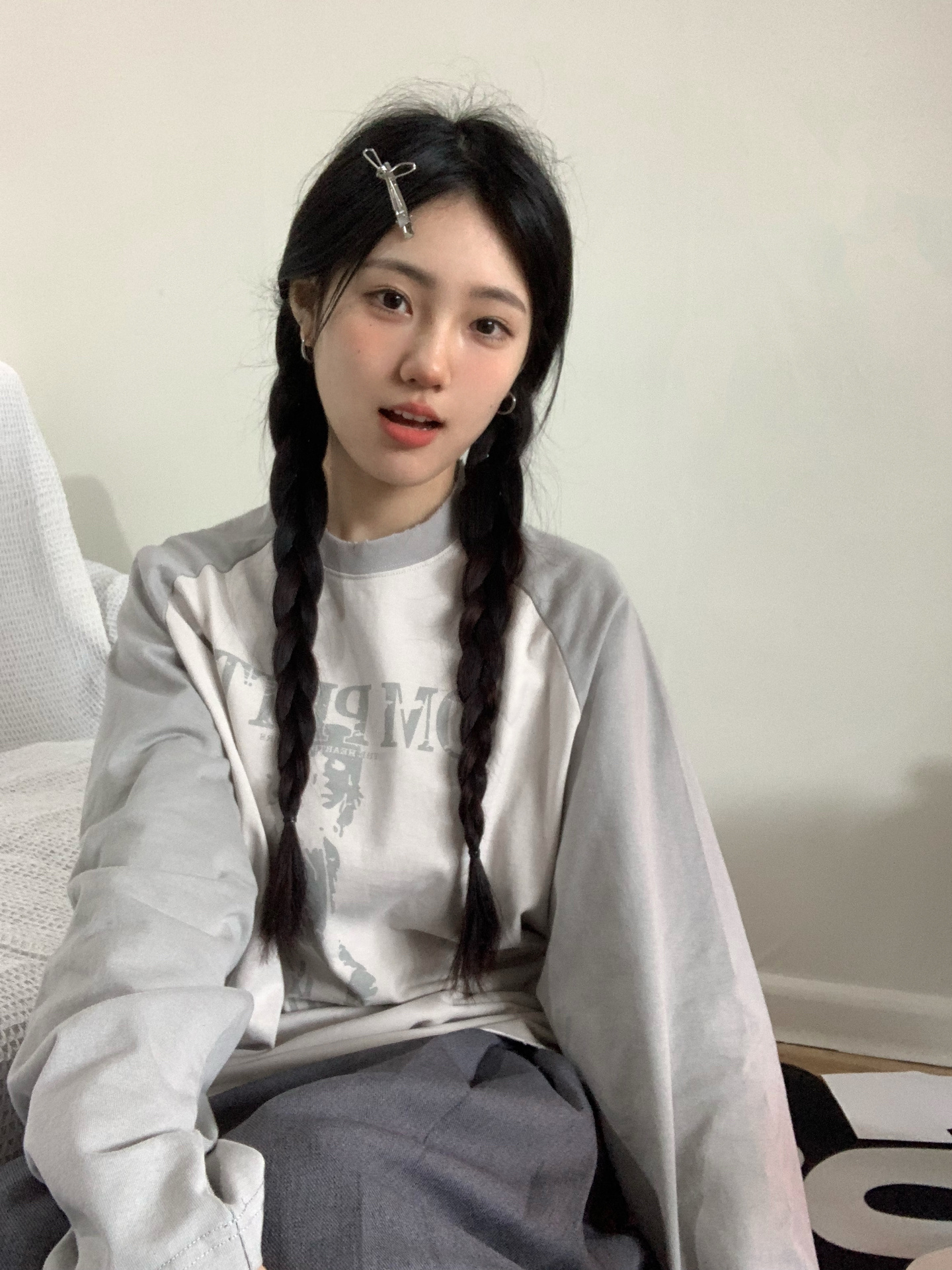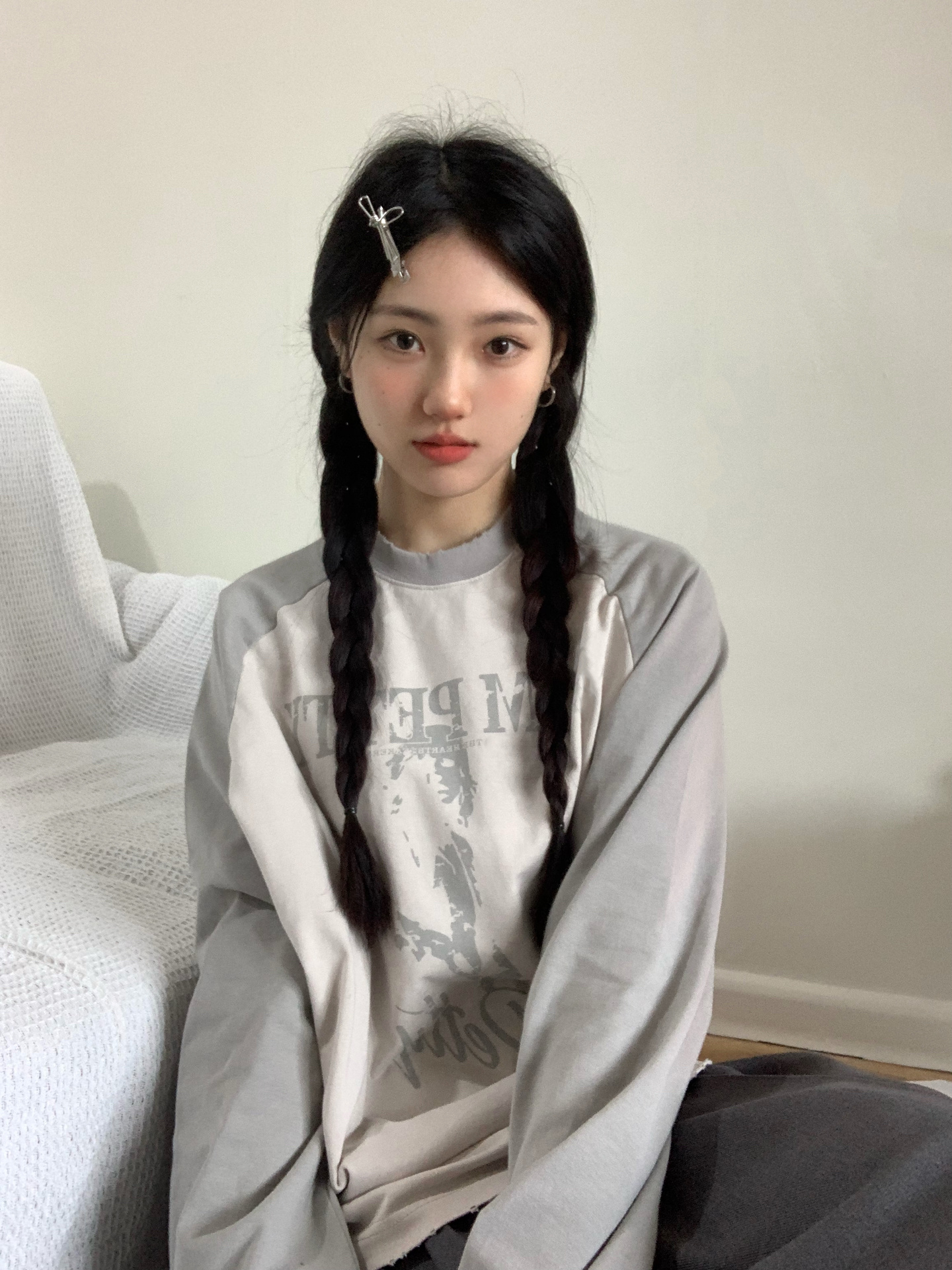 美式復古插肩袖衛衣女秋季新款撞色拼接長袖T恤oversize圓領上衣