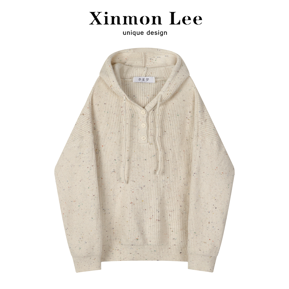 XinmonLee日系慵懶風復古毛衣外穿女冬季2023新款連帽針織衫上衣