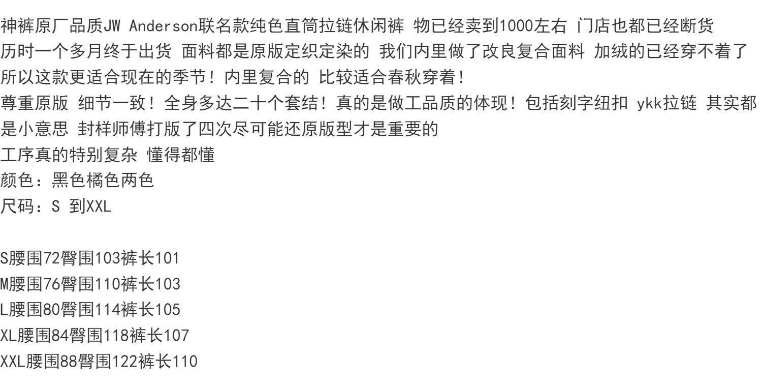 春夏薄款U家神褲日系高街工裝褲腳拉鍊立體剪裁口袋JWA設計師長褲