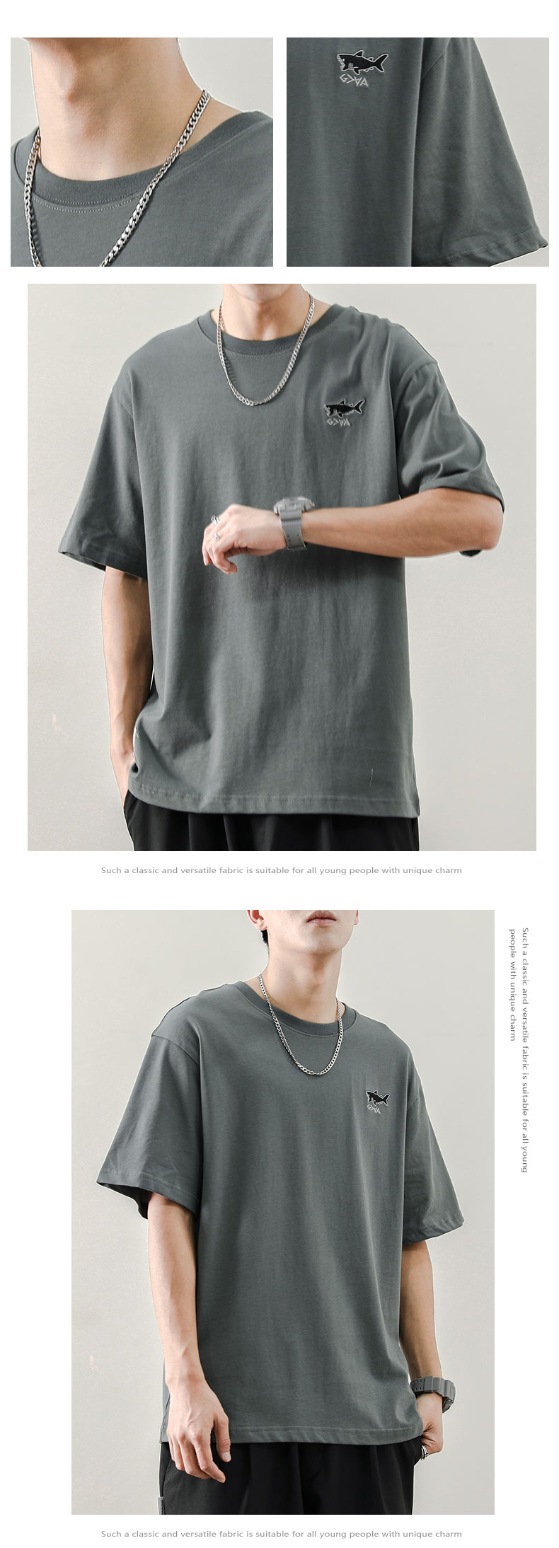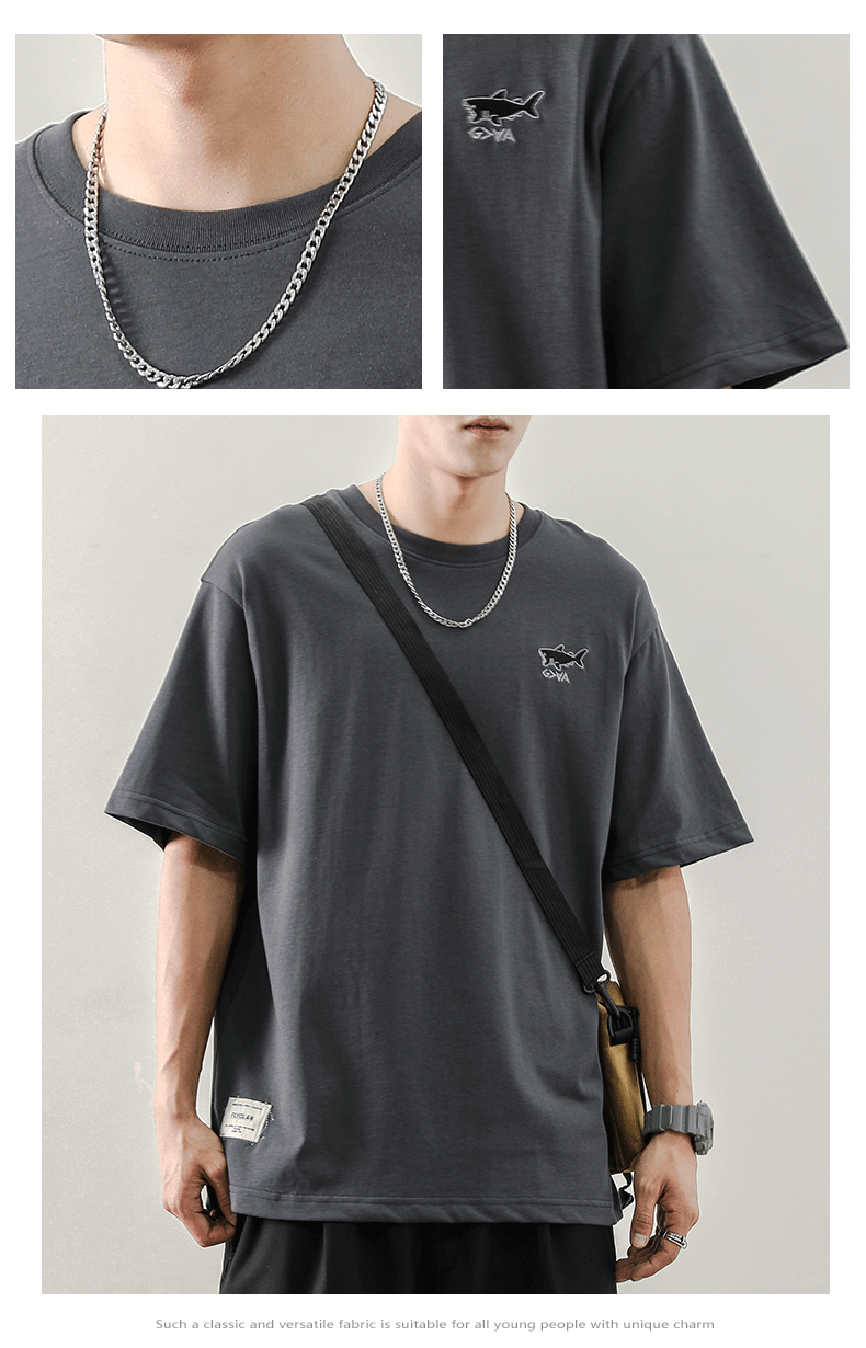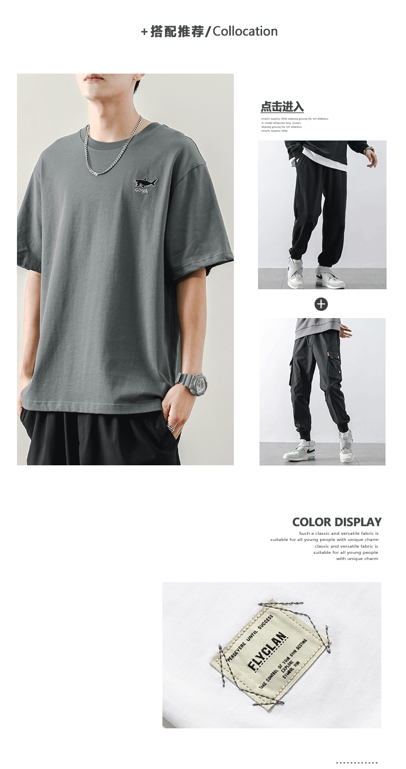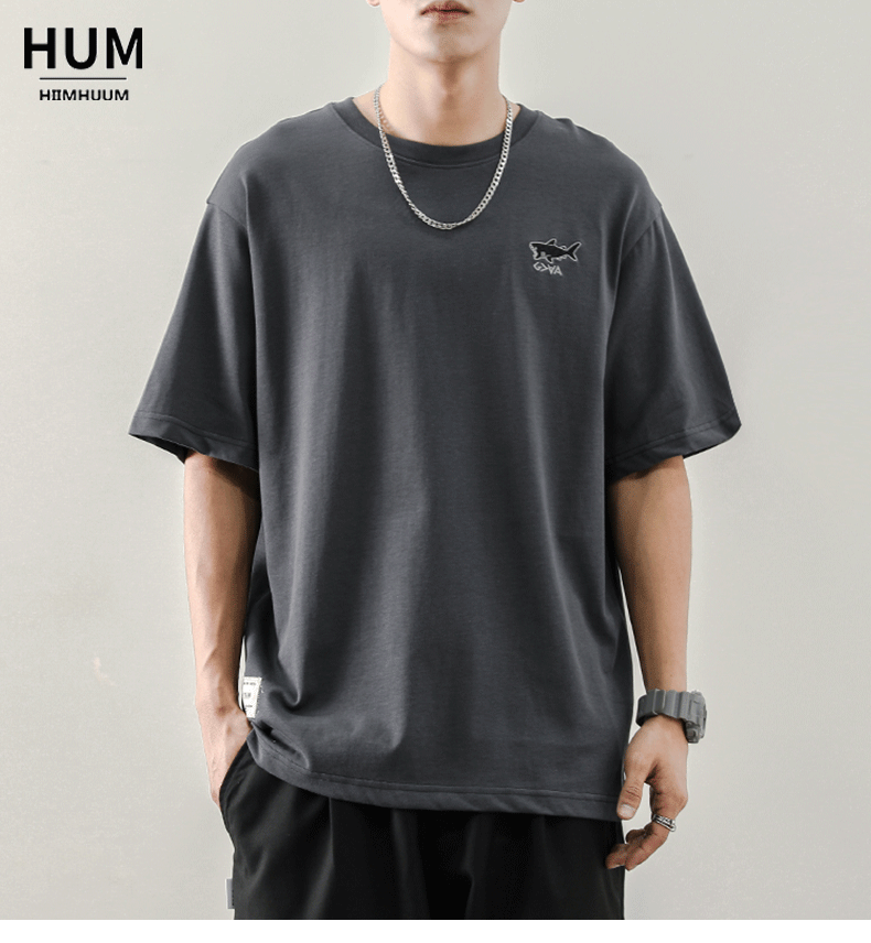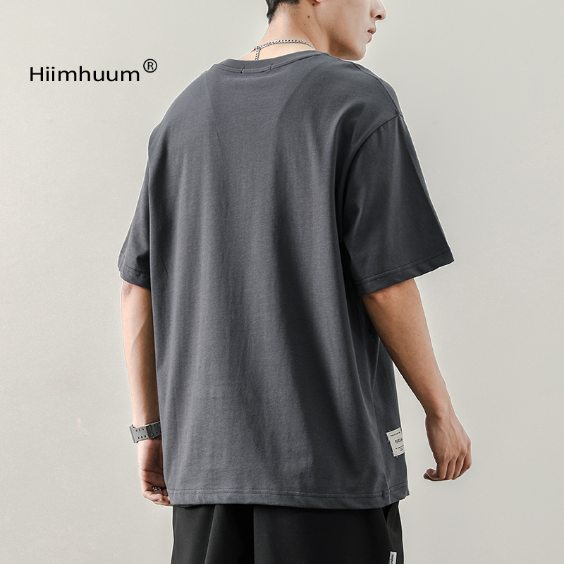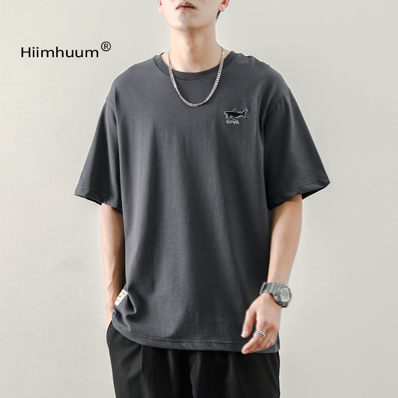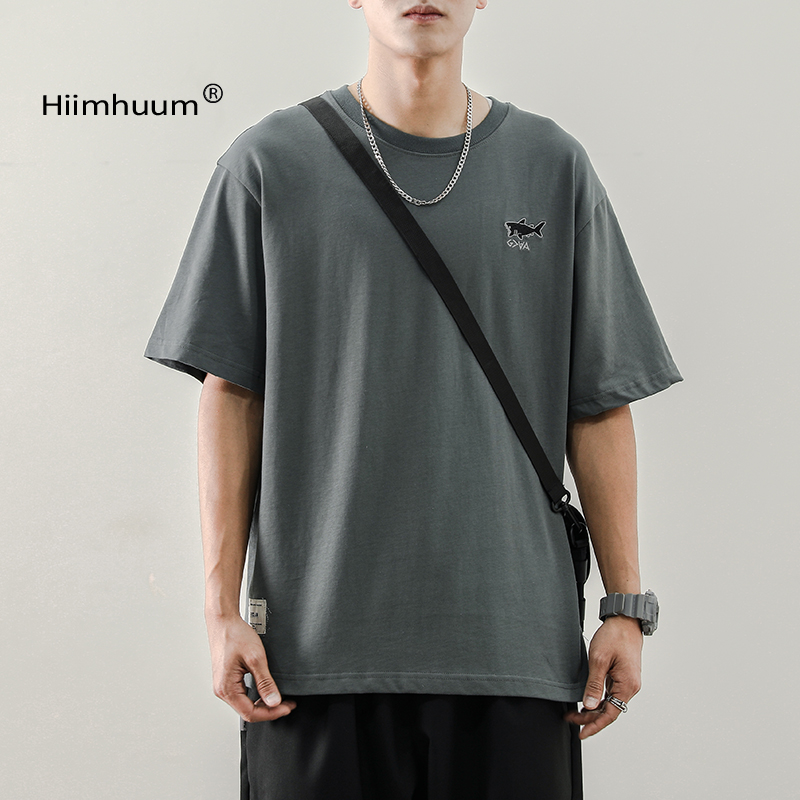 夏季日系寬鬆T恤男刺繡圓領潮牌ins短袖T恤男生韓版潮流半袖男潮