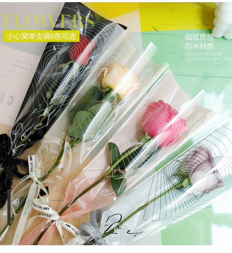 单支花束包装花店花束包装袋opp材料套袋用品鲜花包装纸批发