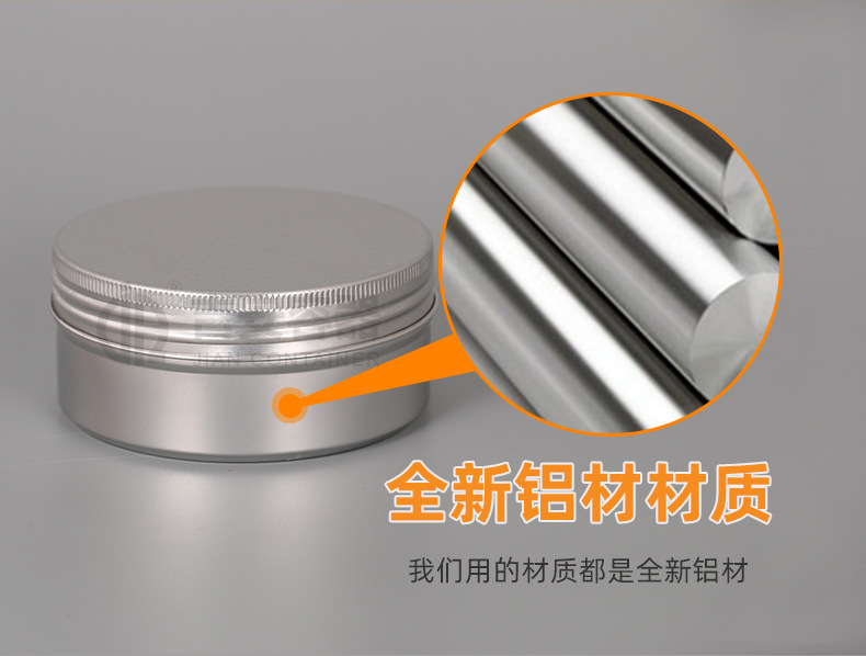 10G~200G铝瓶铝盒 发蜡化妆品鱼线鞋油膏霜盒圆形牙口螺纹金属罐