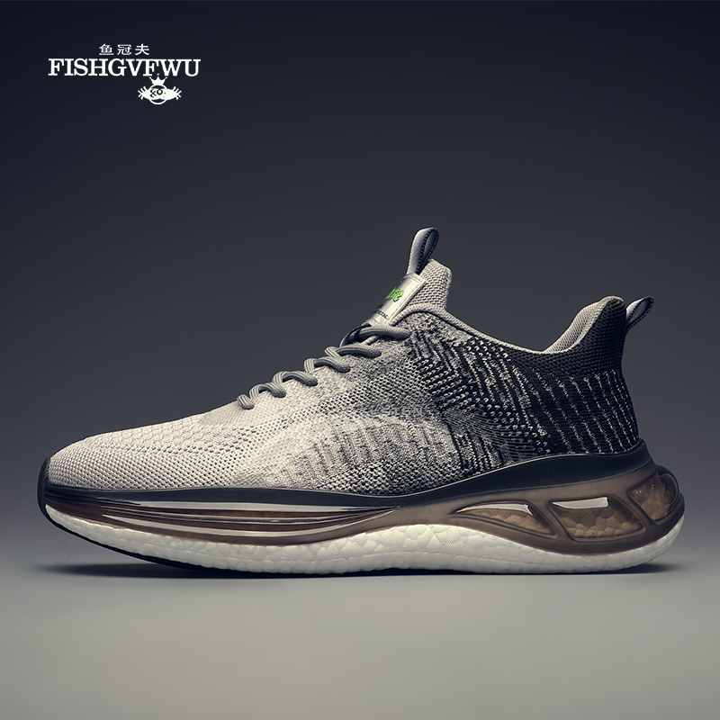 【魚冠夫】男鞋夏季透氣2023新款鞋子男潮鞋跑步休閒鞋網面運動鞋
