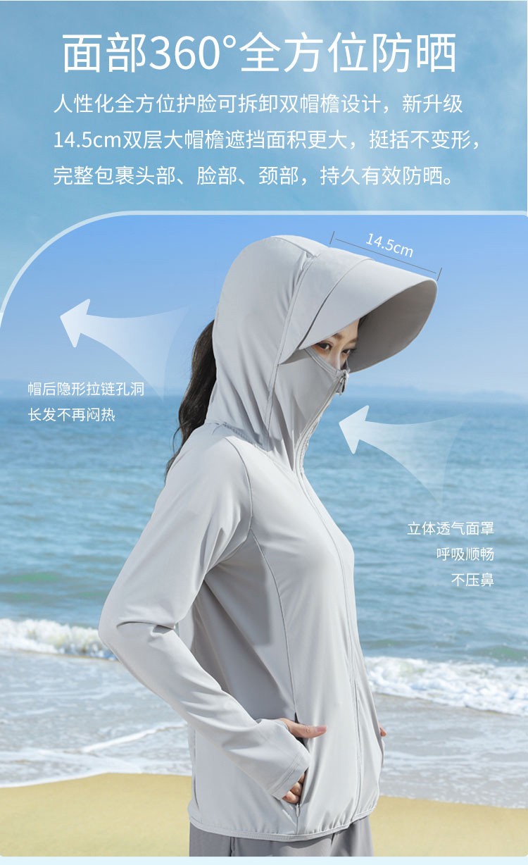 冰絲防曬衣女款2023年新款夏季抗UV薄款透氣防曬服戶外大帽簷